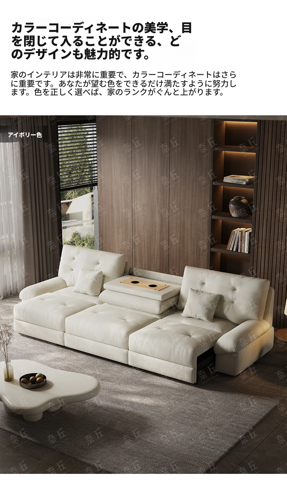 2.6mトリプル電動ソファ【中位翻蓋テーブル】-キャットタワー生地+羽毛クッション 2.6mトリプル電動ソファ【中位翻蓋テーブル】-キャットタワー生地+羽毛クッション