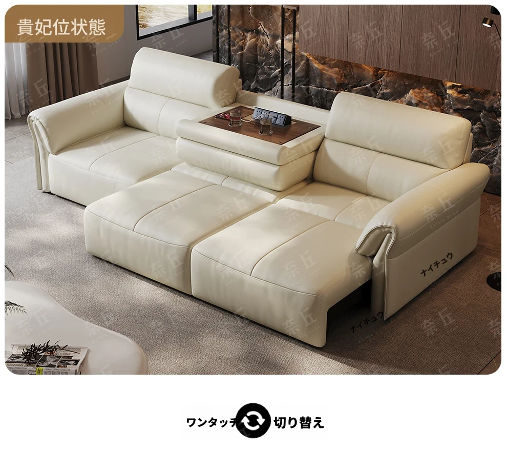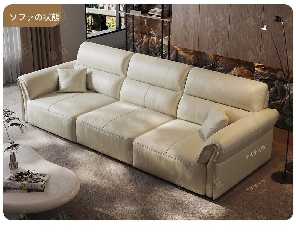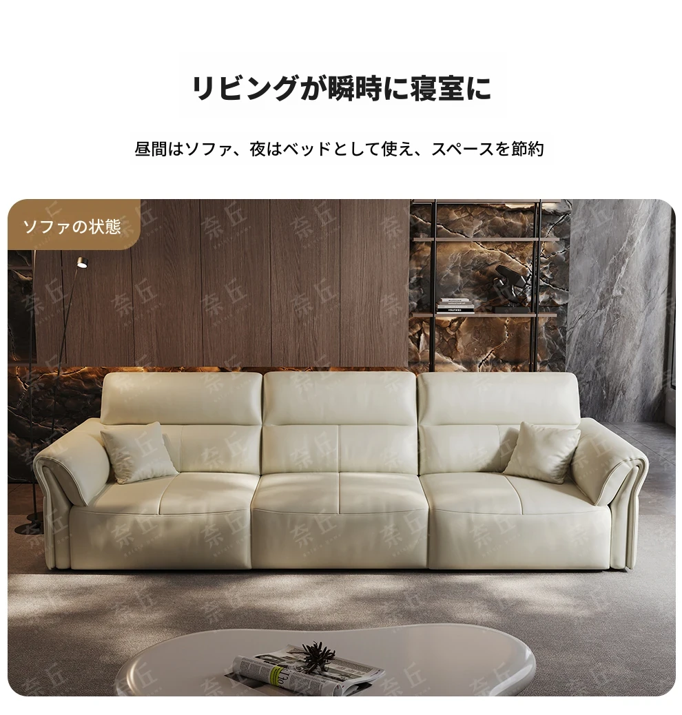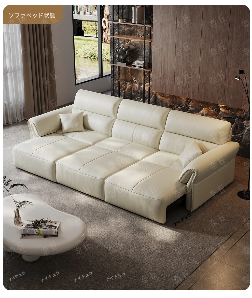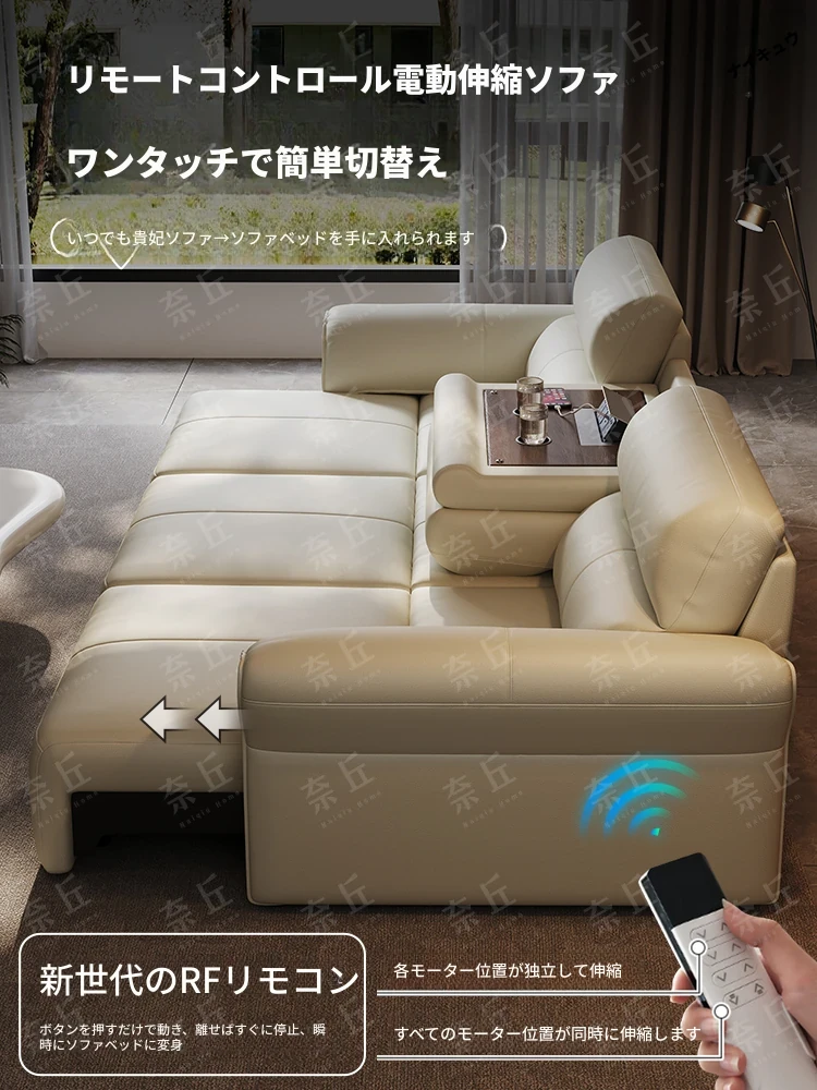 2024年新作!奈丘電動多機能本革ソファ - イタリアン・ミニマリズムデザイン、リモコンで自動伸縮、快適なリビングルームと便利なソファベッド!