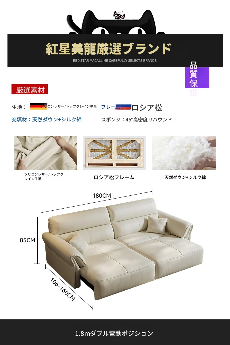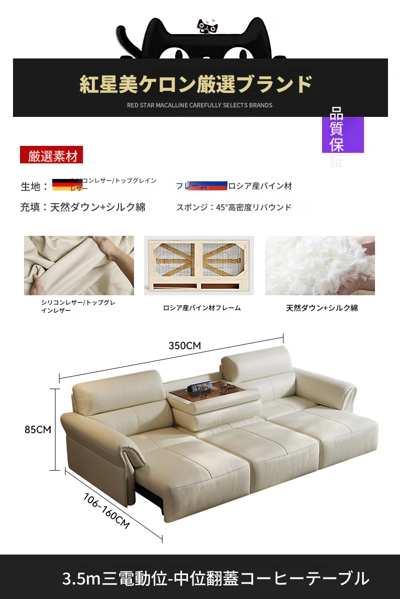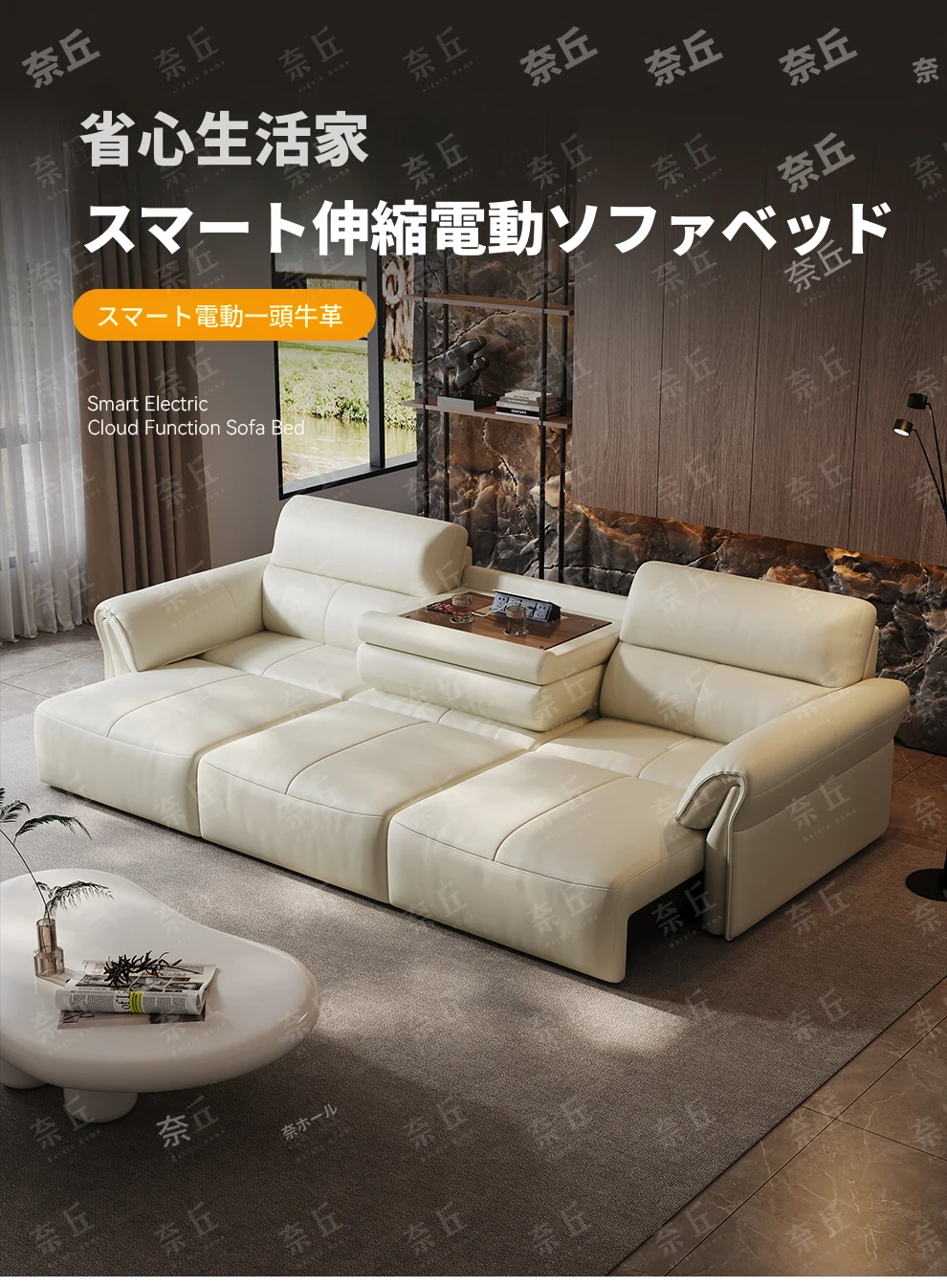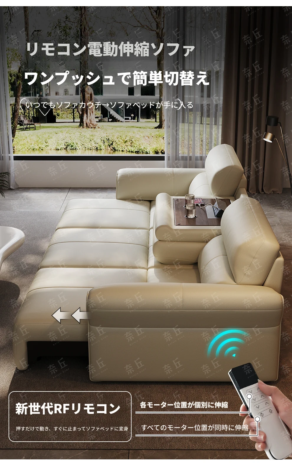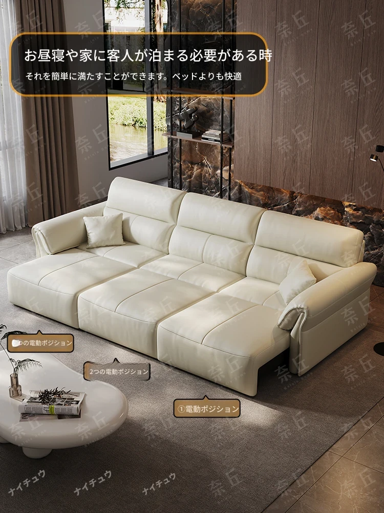 2024年新作!奈丘電動多機能本革ソファ - イタリアン・ミニマリズムデザイン、リモコンで自動伸縮、快適なリビングルームと便利なソファベッド!