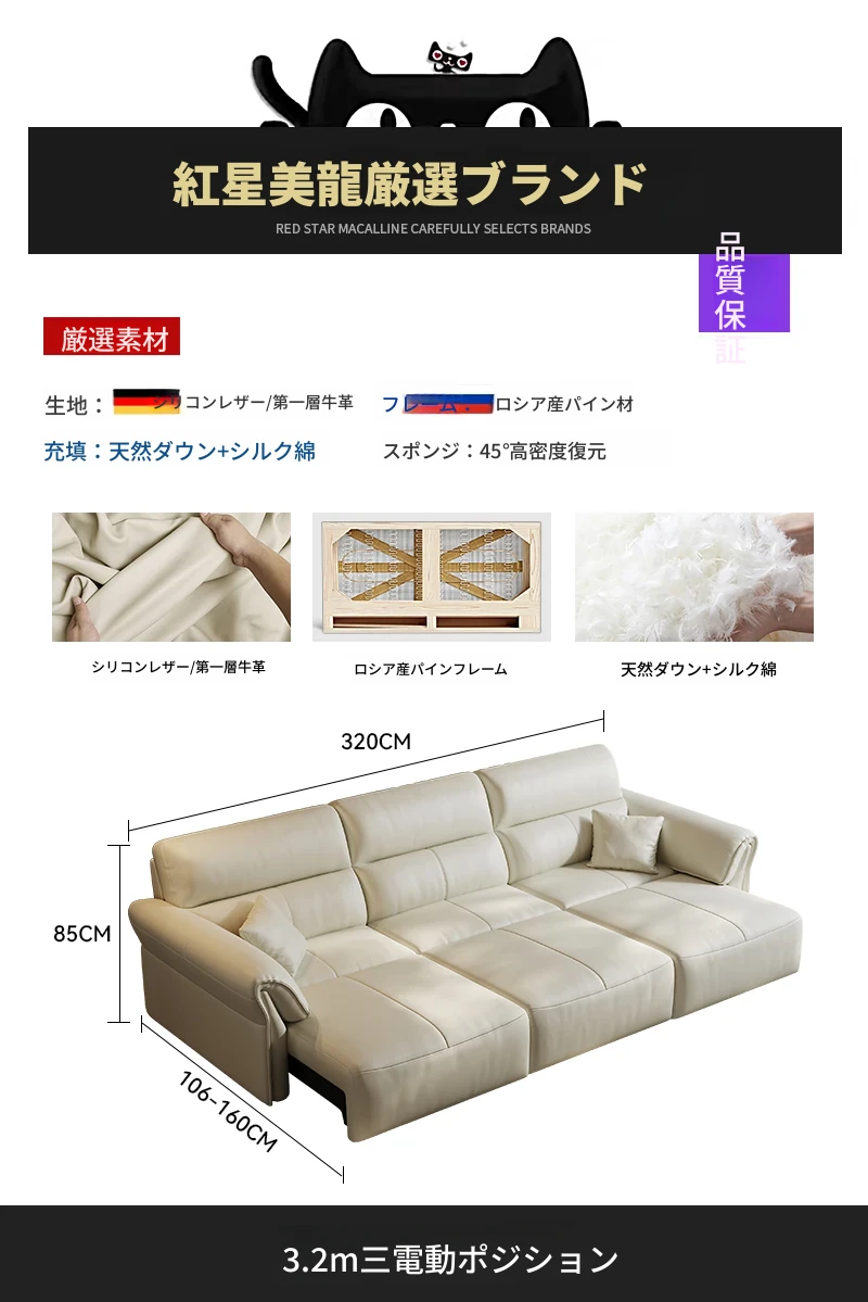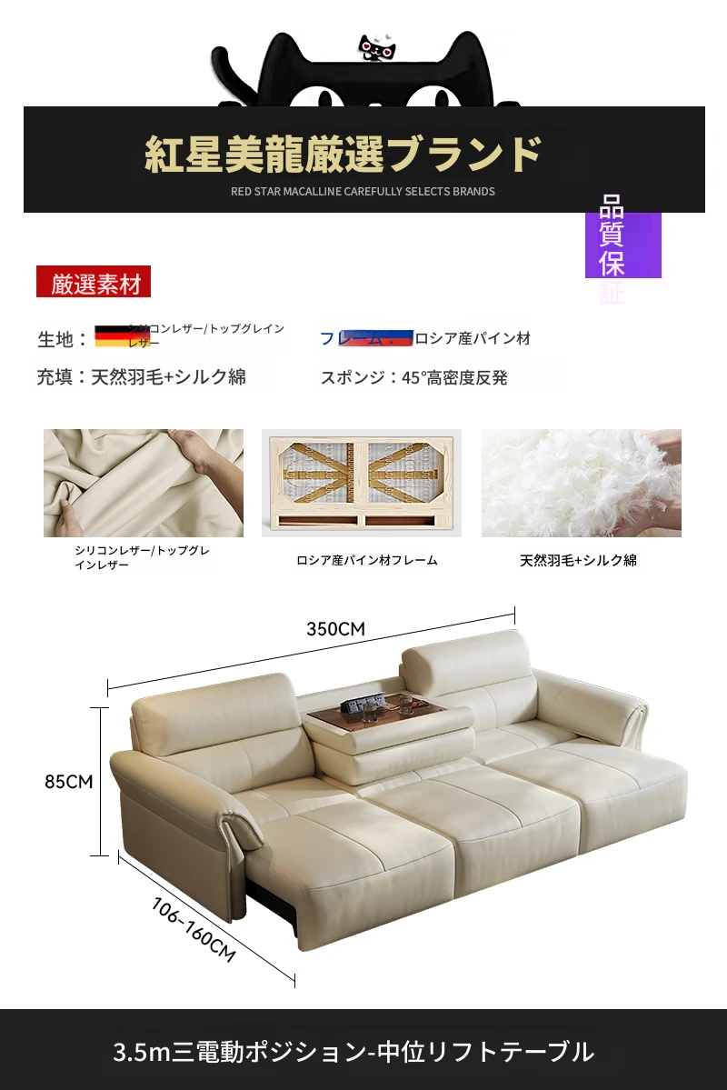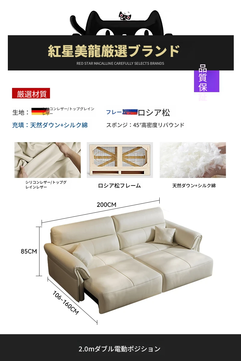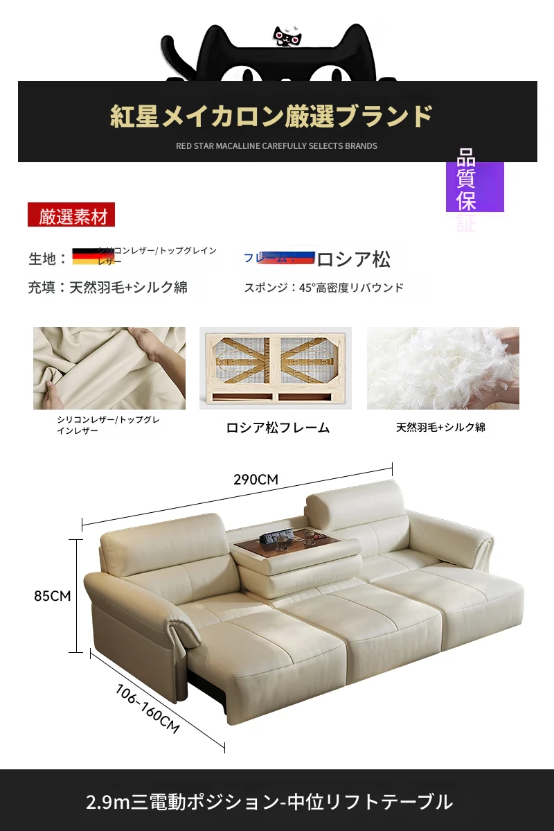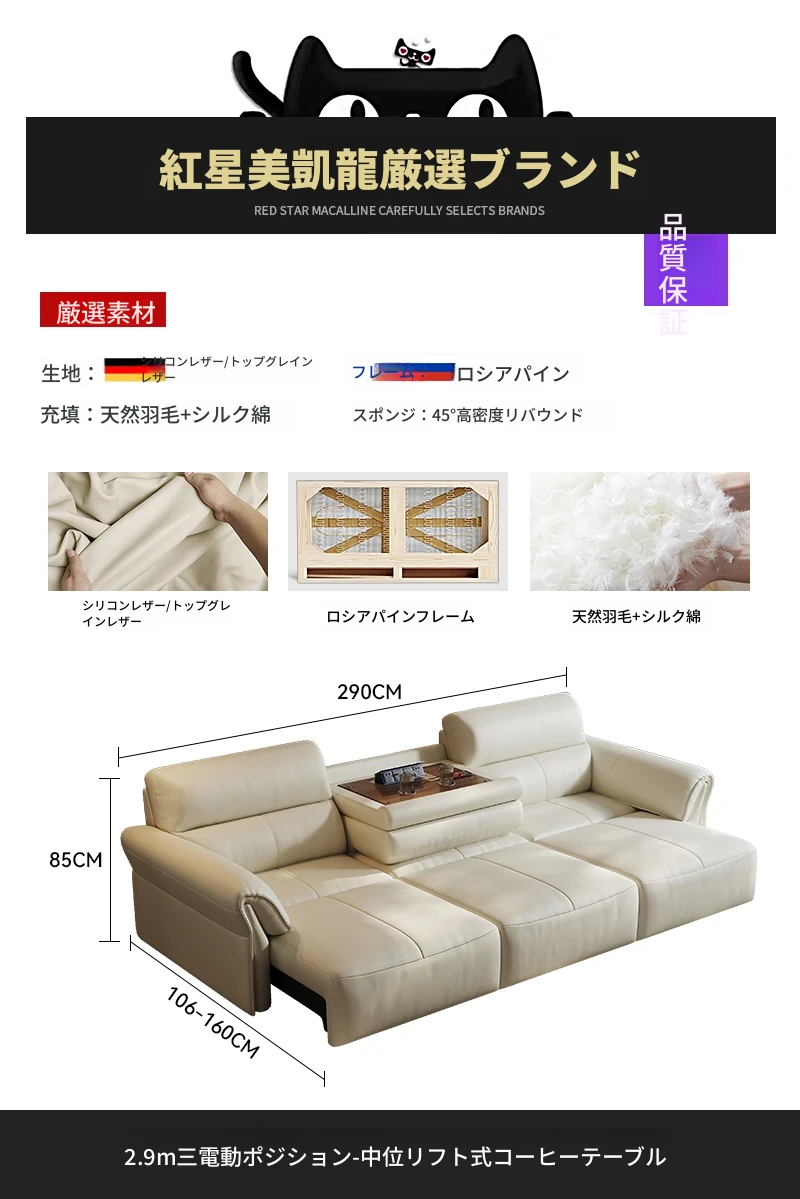 2024年新作!奈丘電動多機能本革ソファ - イタリアン・ミニマリズムデザイン、リモコンで自動伸縮、快適なリビングルームと便利なソファベッド!