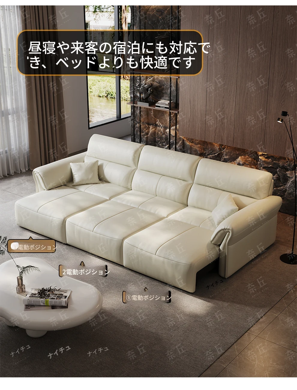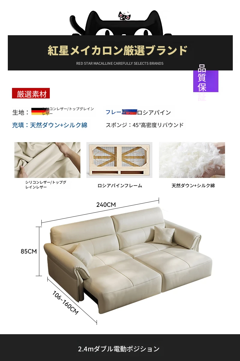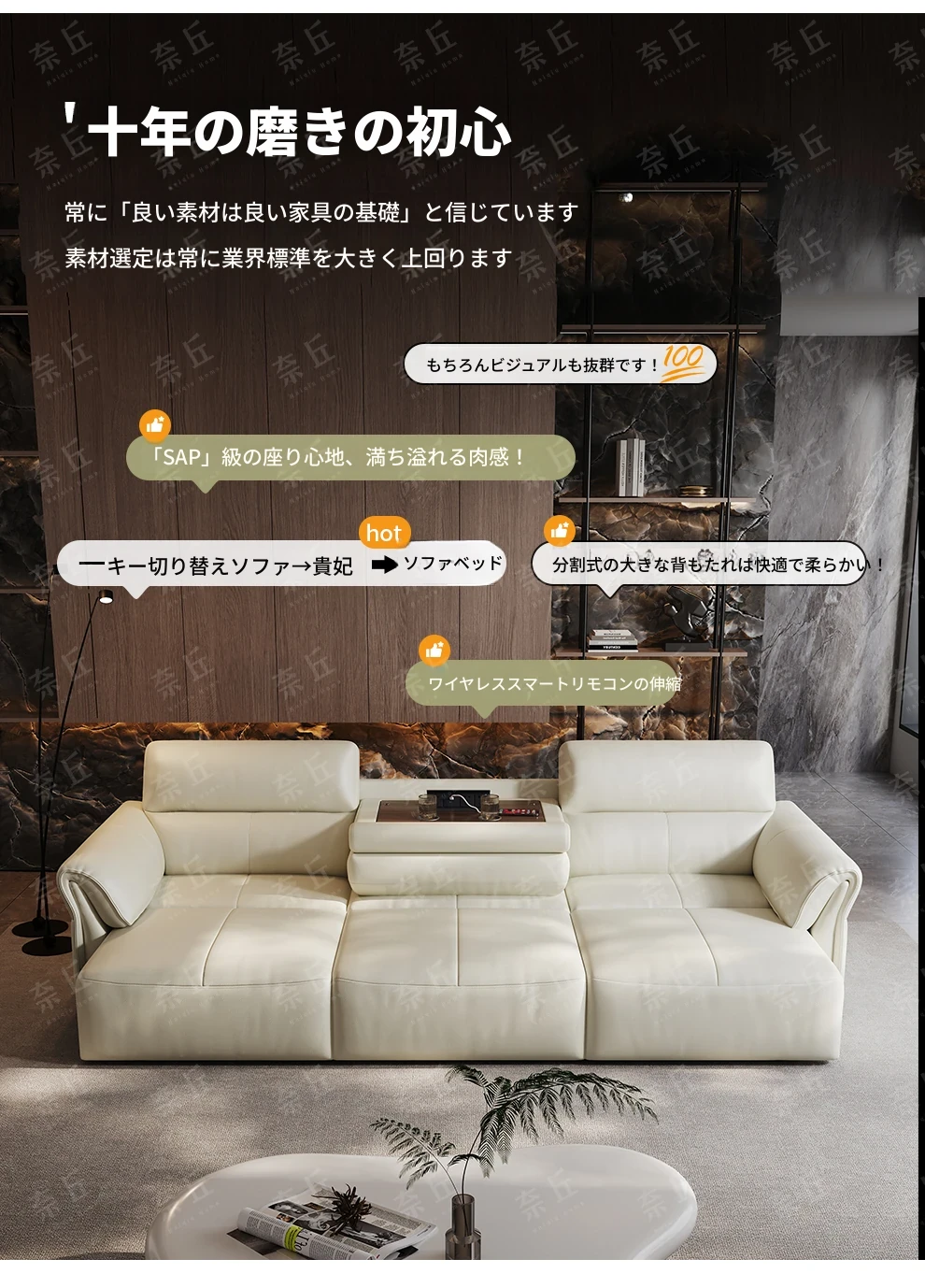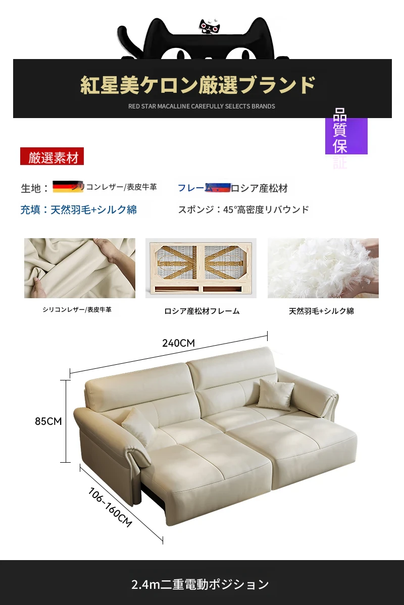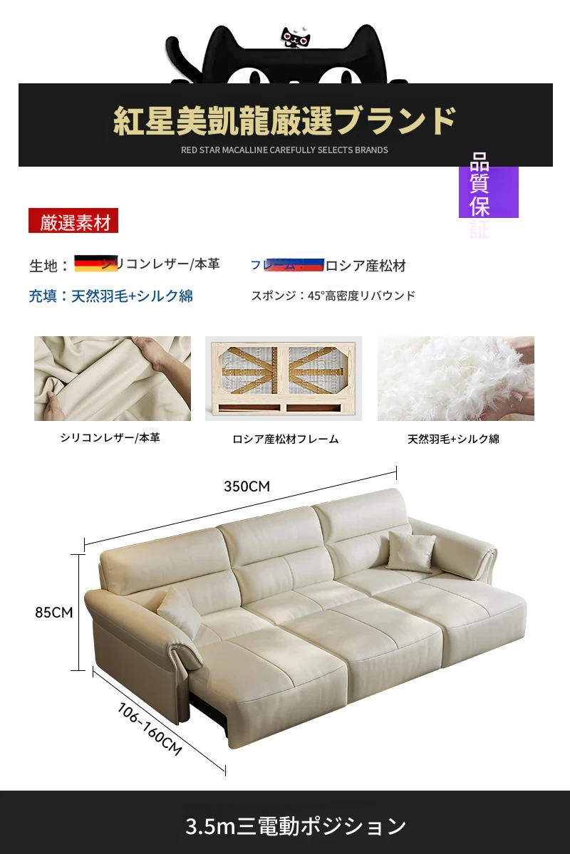 2024年新作!奈丘電動多機能本革ソファ - イタリアン・ミニマリズムデザイン、リモコンで自動伸縮、快適なリビングルームと便利なソファベッド!