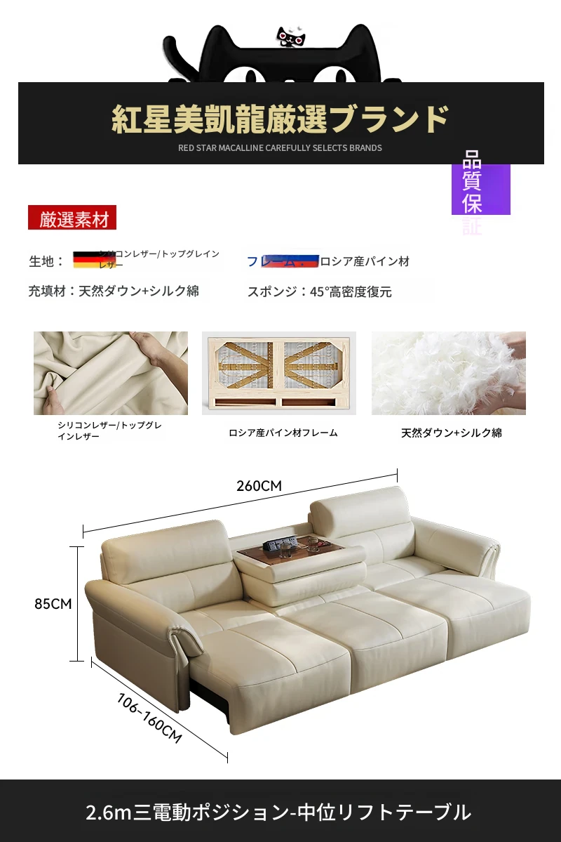 2.6mトリプル電動位【中央開閉コーヒーテーブル|猫の爪防止シリコン皮】 2.6mトリプル電動位【中央開閉コーヒーテーブル|猫の爪防止シリコン皮】