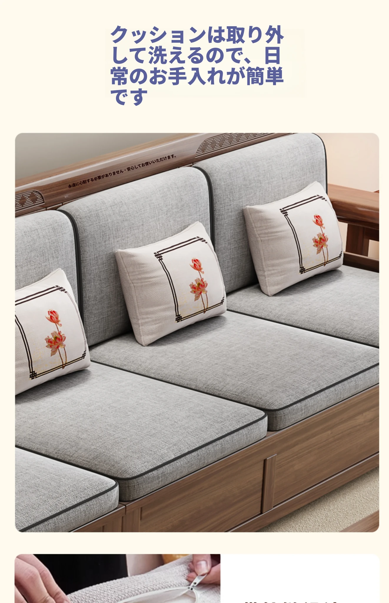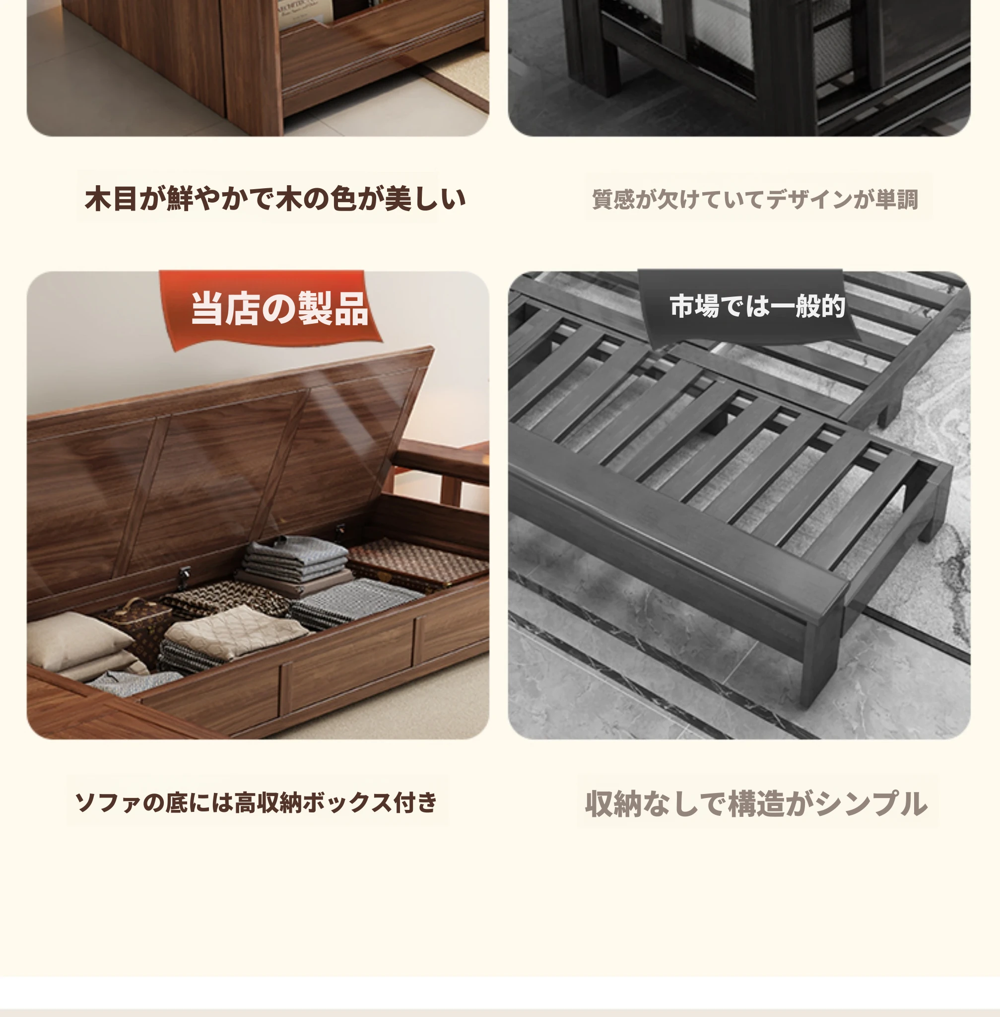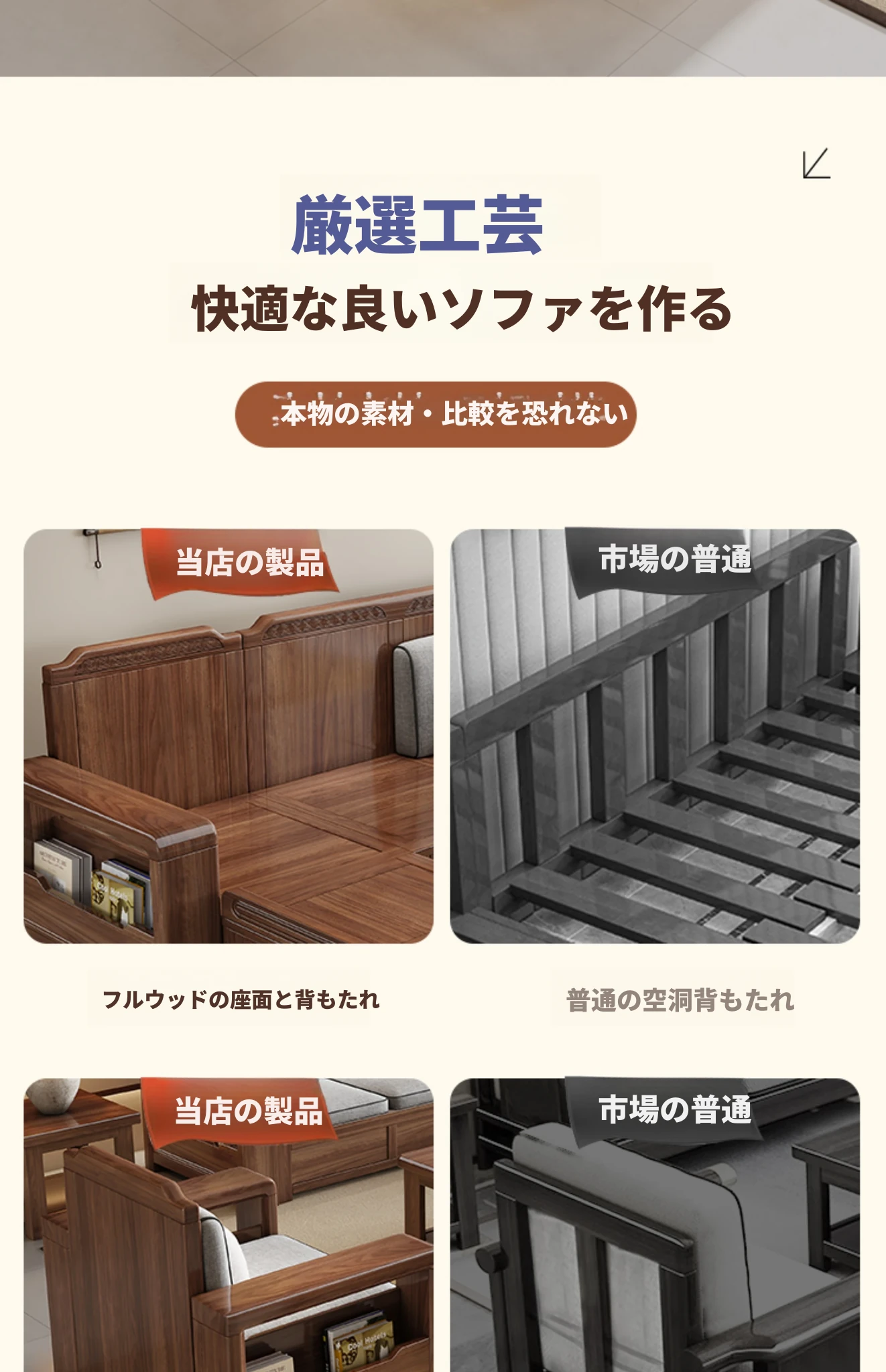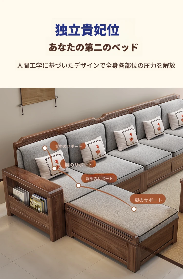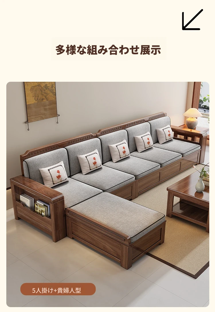 新中式ブラックウォールナット無垢材ソファ|リビングにぴったり!冬夏兼用のストレージ付きデザイン|工場直販でお得に手に入れるチャンス!