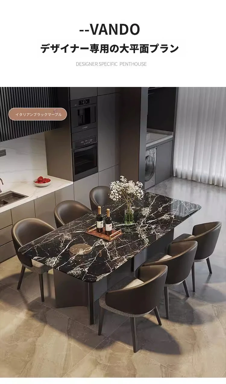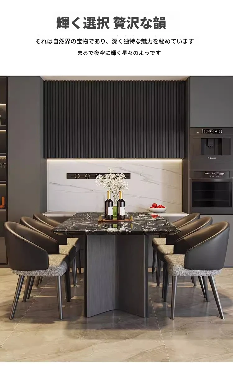 【1.8*0.9m】輸入バルガリ黒天然ラグジュアリー石製ダイニングテーブル【1.8*0.9m】輸入バルガリ黒天然ラグジュアリー石製ダイニングテーブル