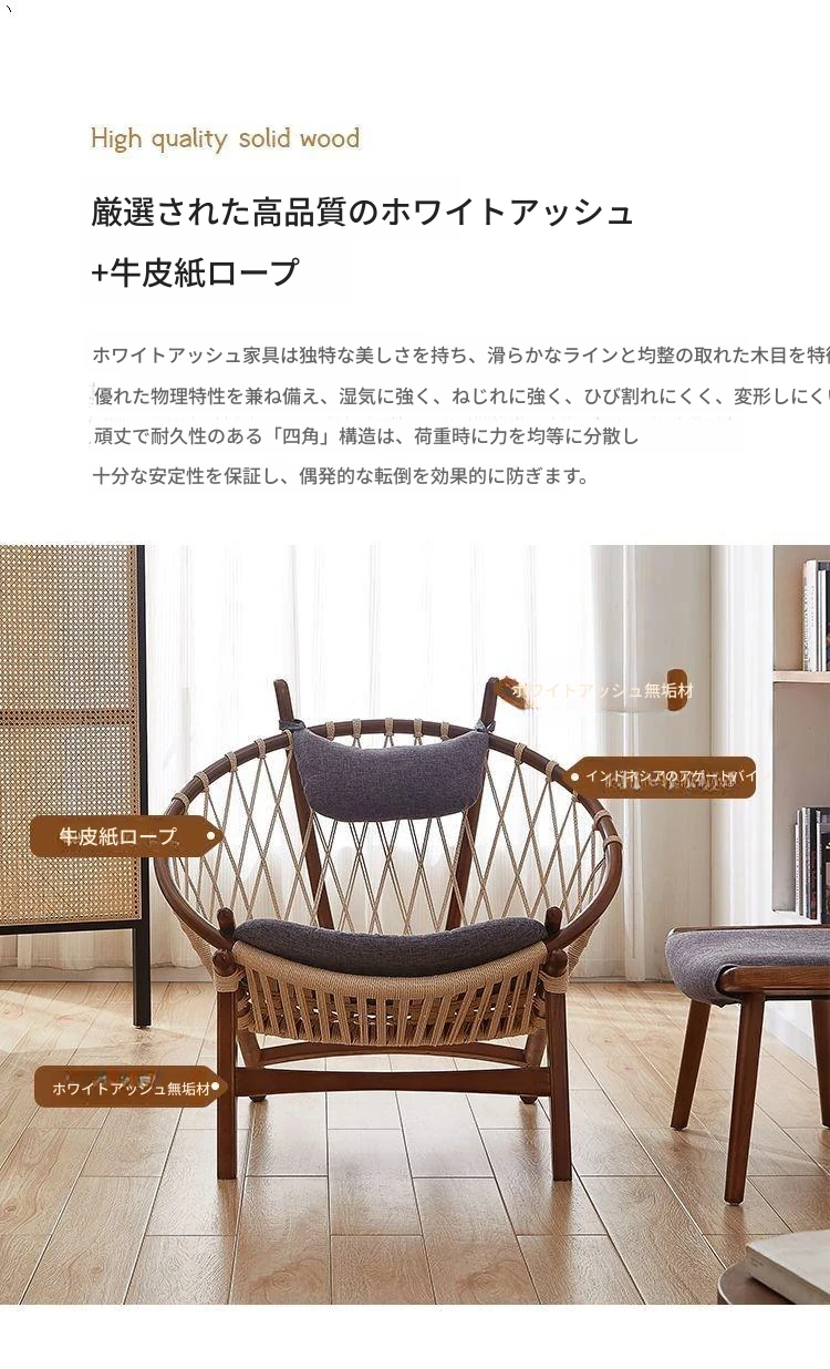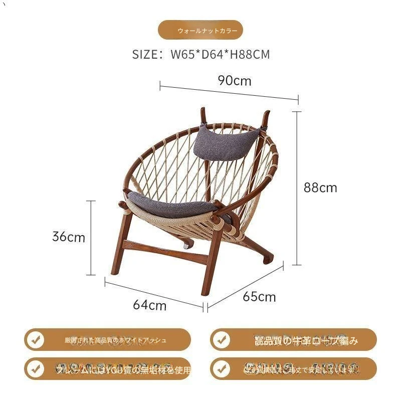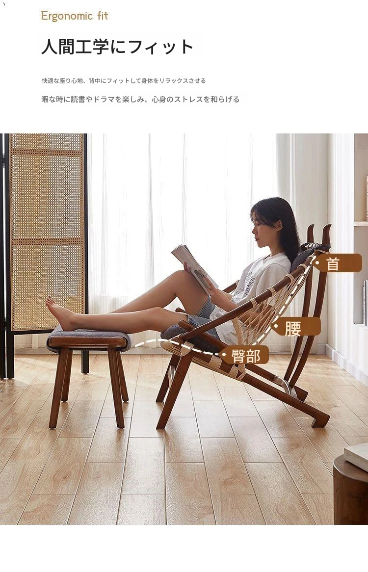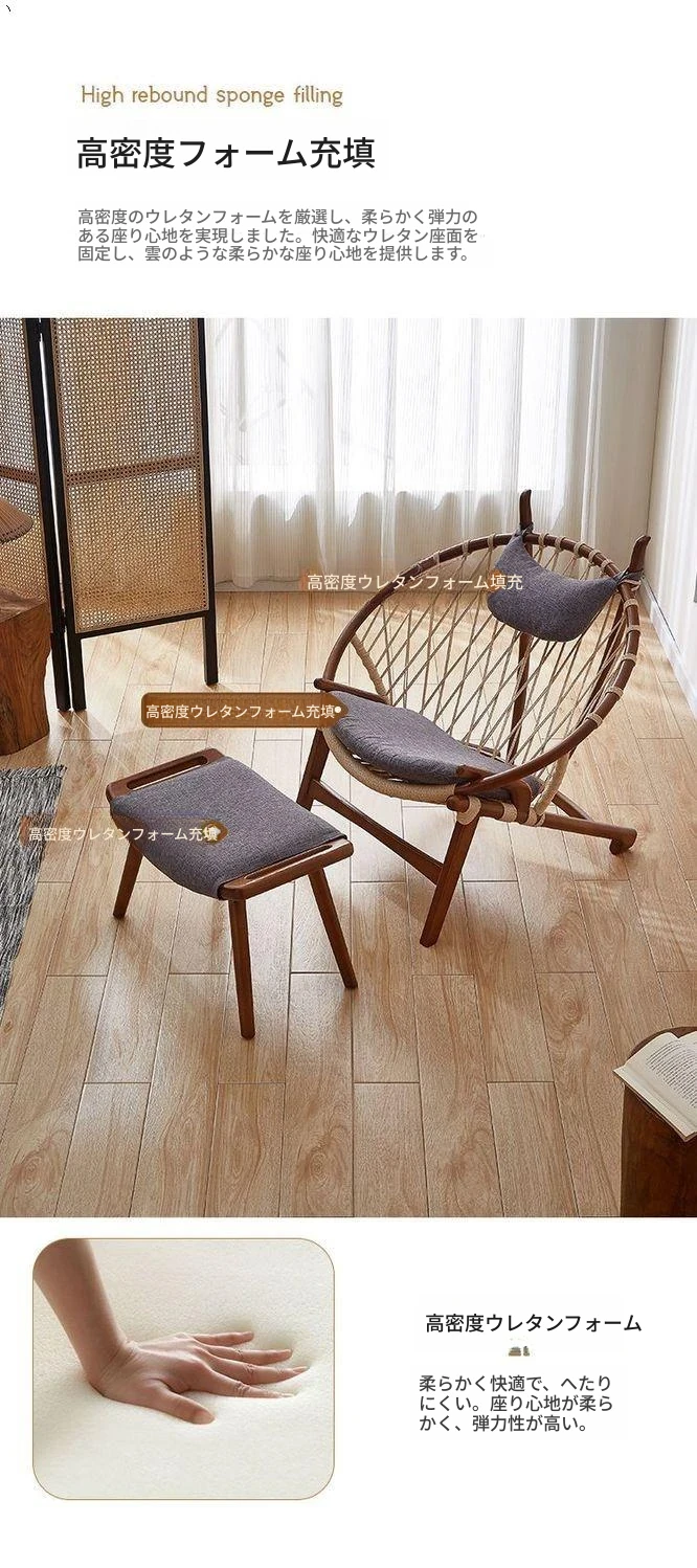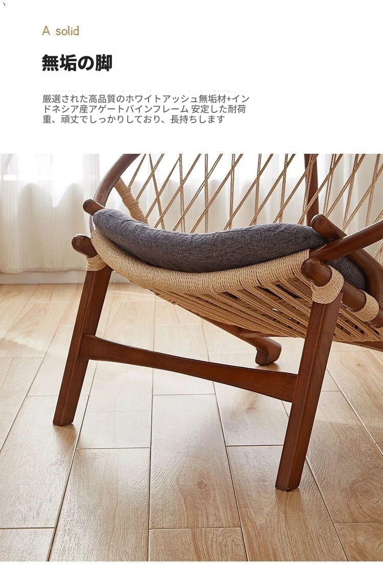 北欧風インスパイア実木編み込みリラックスチェア|シングルソファ|リビング・バルコニーに最適|デザイナーのクリエイティブなデザインで、快適なひとときを演出!あなたの空間をおしゃれに彩ります。