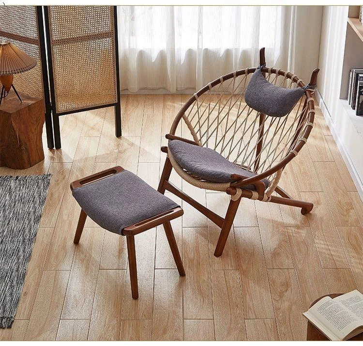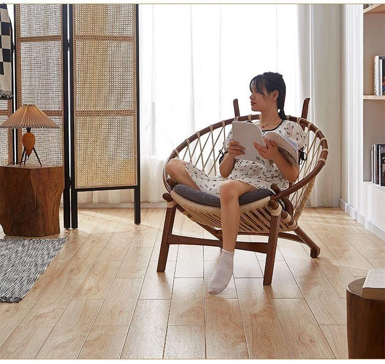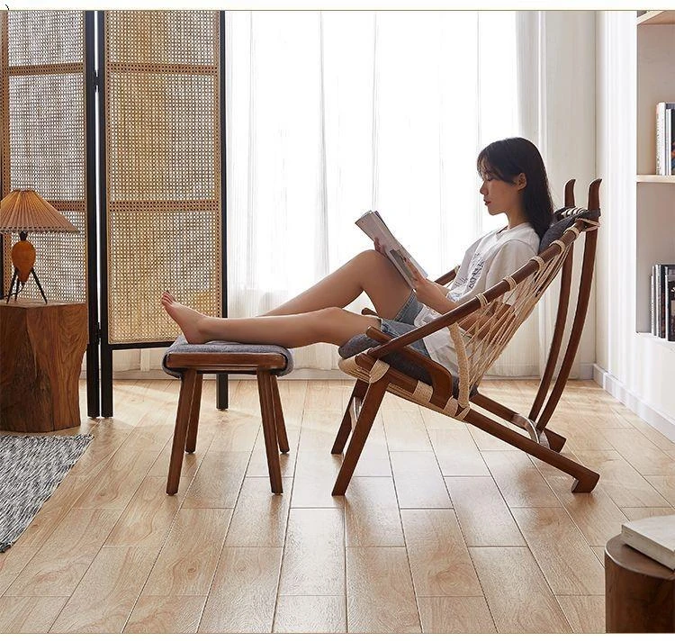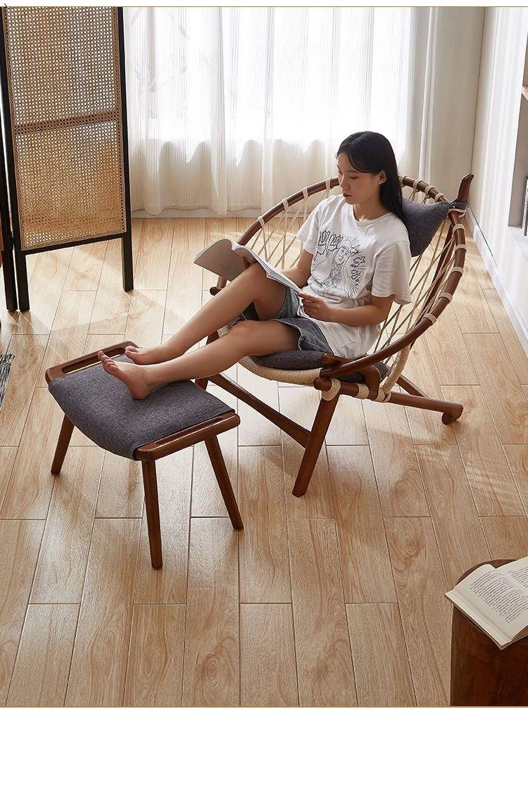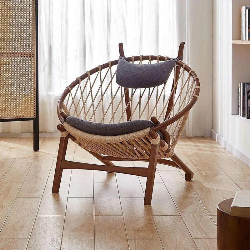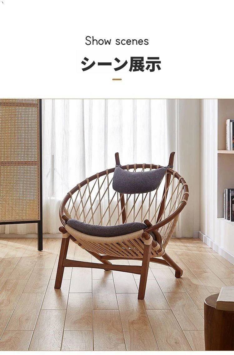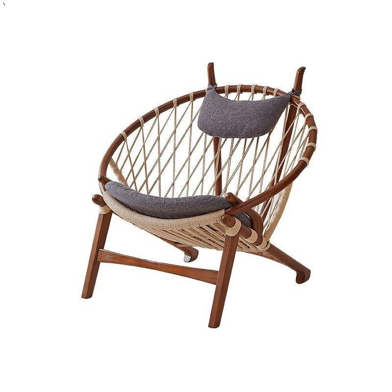 北欧風インスパイア実木編み込みリラックスチェア|シングルソファ|リビング・バルコニーに最適|デザイナーのクリエイティブなデザインで、快適なひとときを演出!あなたの空間をおしゃれに彩ります。