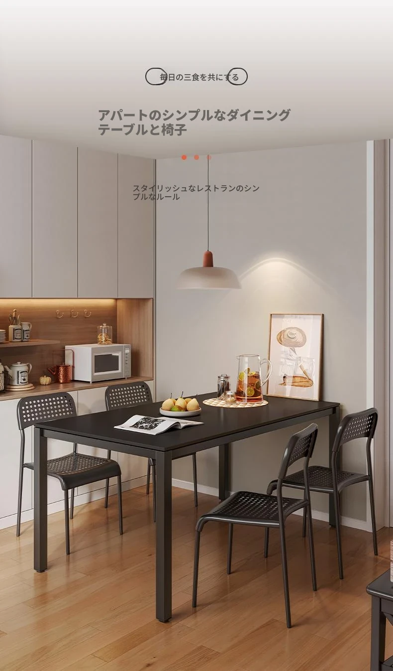 北欧風ミニマリストデザインのダイニングテーブルセット - 小さなアパートに最適な長方形テーブルと椅子のコンビネーションで、居心地の良い食事空間を演出します!