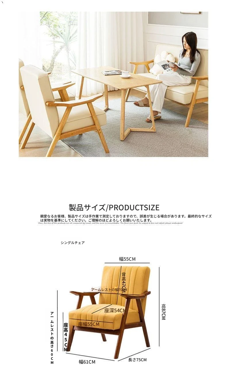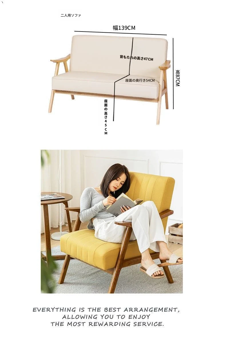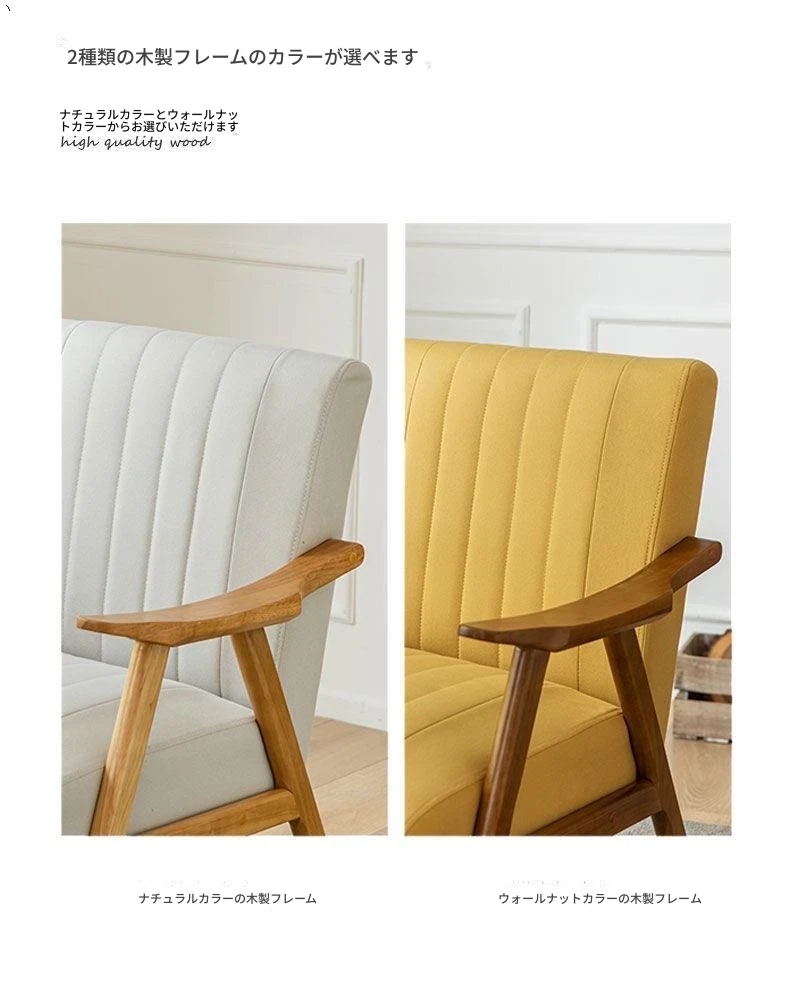 北欧モダンデザインのリラックスチェア|天然木製でシンプルな一人掛け&二人掛け|小さなスペースに最適な快適なテクノロジー生地使用|おしゃれで機能的なライフスタイルを演出!