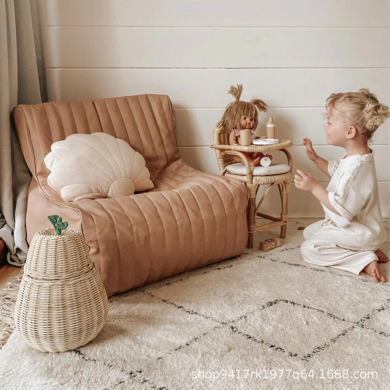 北欧インス風 超細繊維レザー製 キルティング子供用ビーズソファ リラックスできる読書ソファ おしゃれで快適な空間を演出!