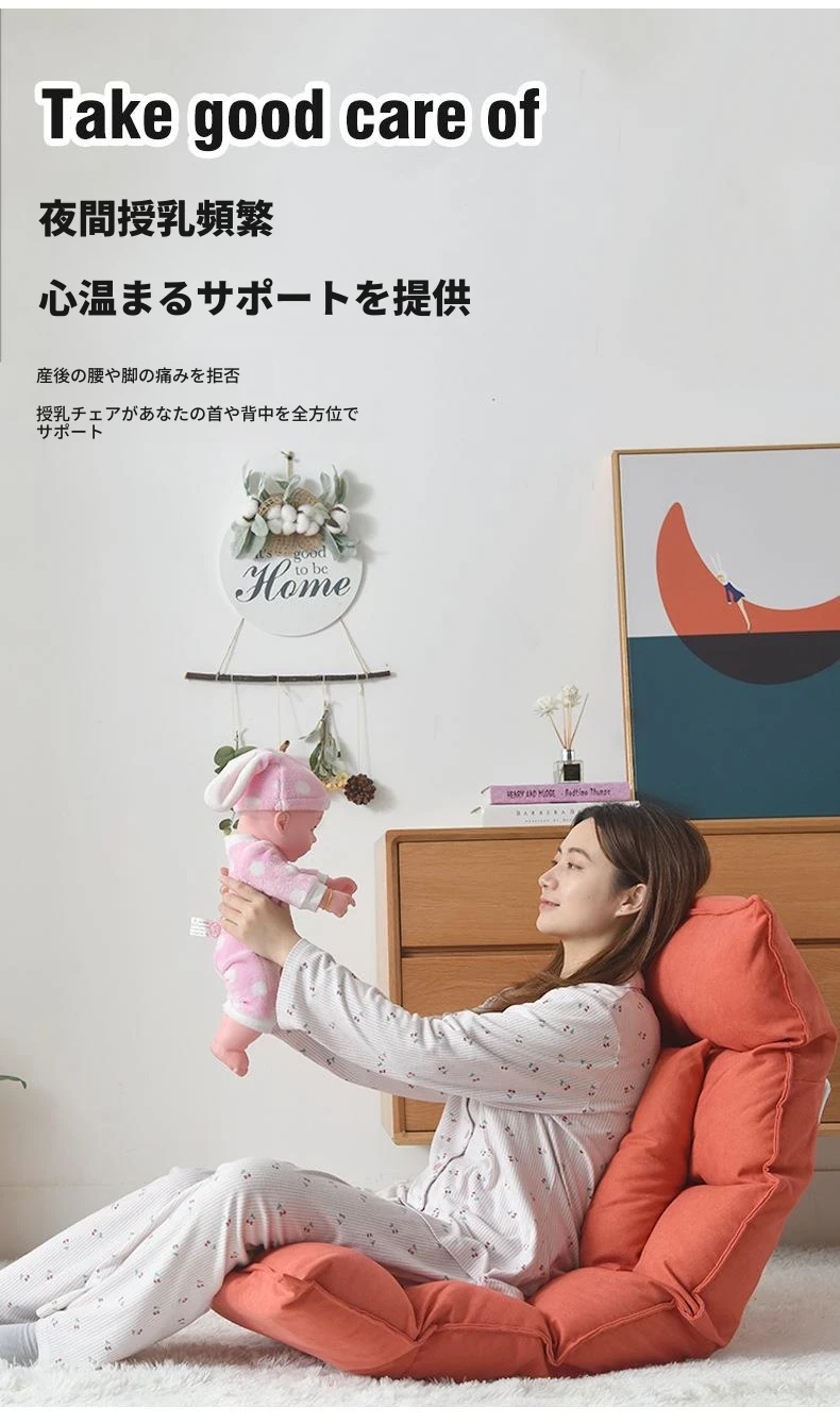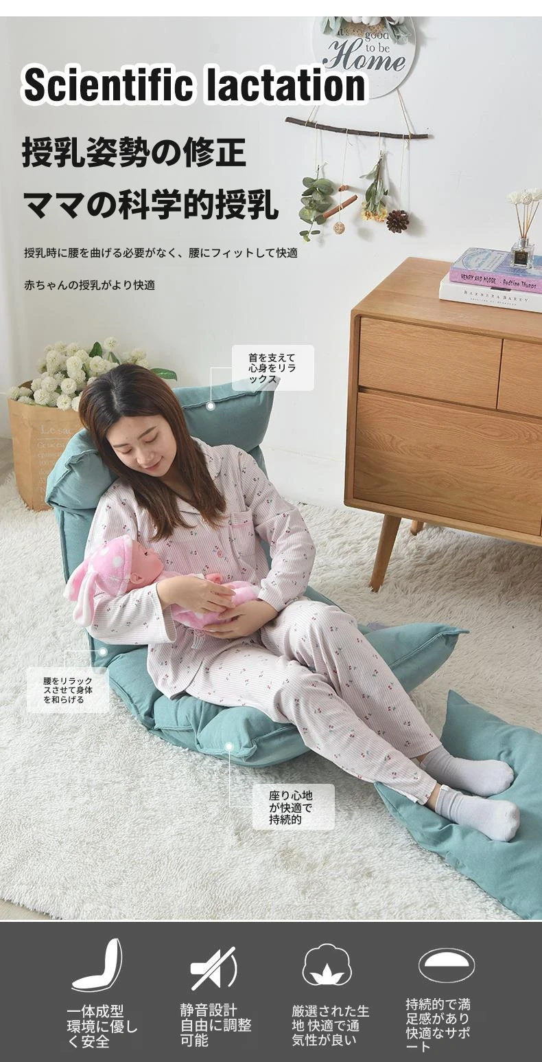 授乳専用チェア - おしゃれで快適、ママと赤ちゃんのための腰サポート付き!ベッドや畳、窓際にも最適なデザイン。育児をもっと楽に、心地よくする魔法のような椅子です。
