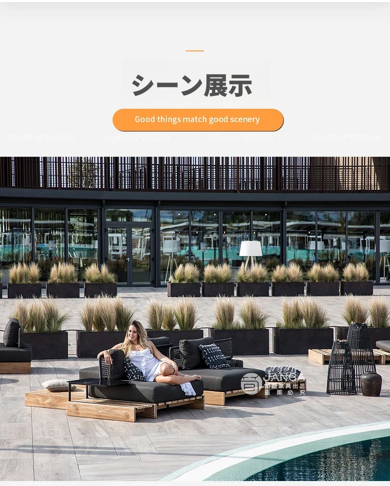 アウトドアソファ・パティオ用日差し対策水草編み家具、リラックスできる防水ラウンジチェア - コンパクトなバルコニーにも最適!おしゃれで快適な空間を演出します。