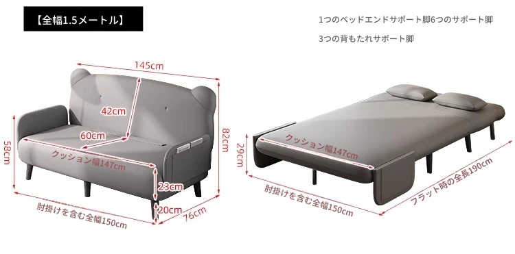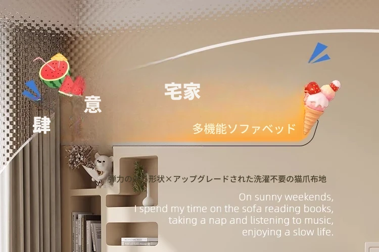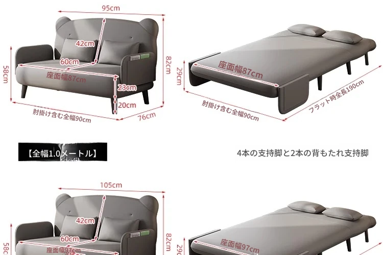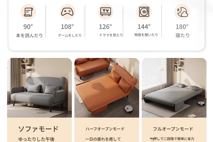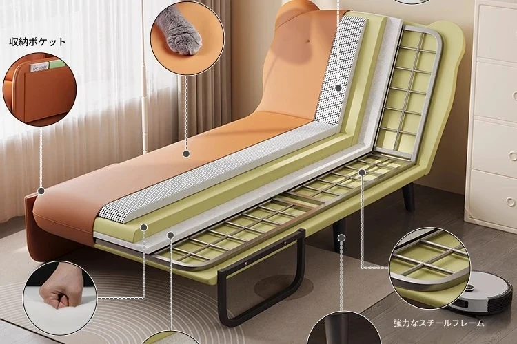 オーヤイ家のダブルソファベッド!折りたたみ式で小スペースに最適な多機能ベッド。リビングやバルコニー、子供部屋にもぴったり!快適な睡眠とおしゃれなインテリアを両立させるアイテムです。