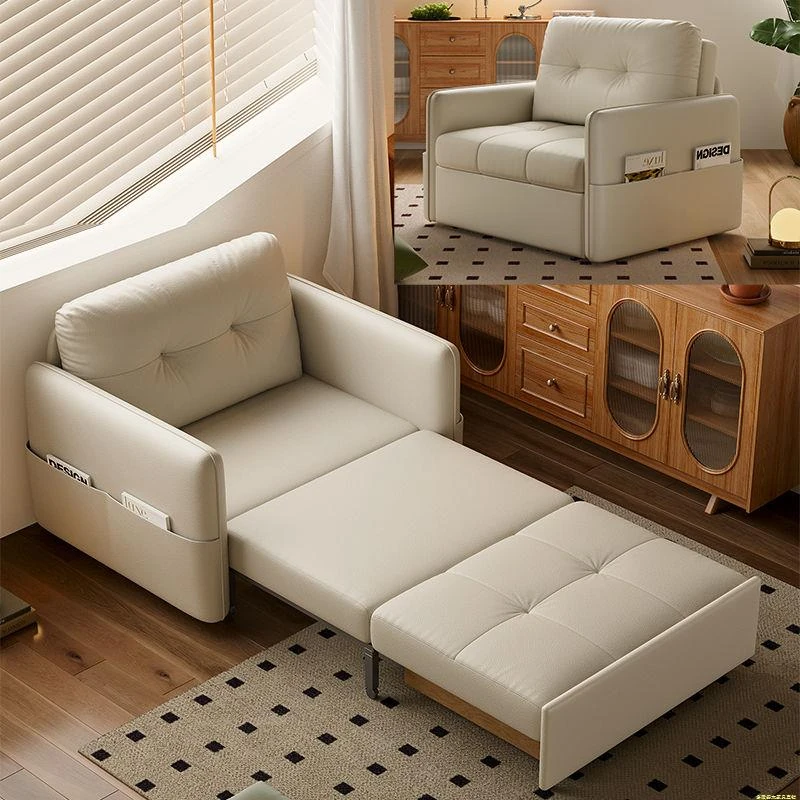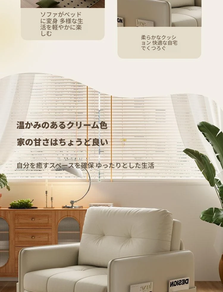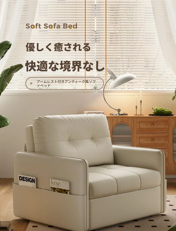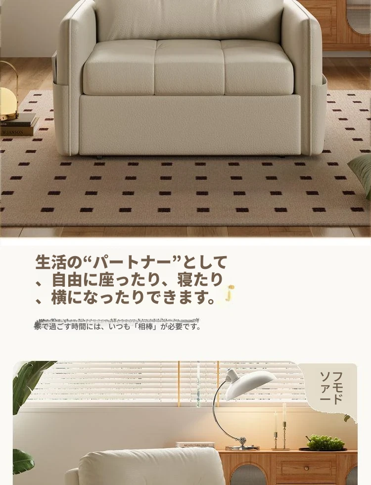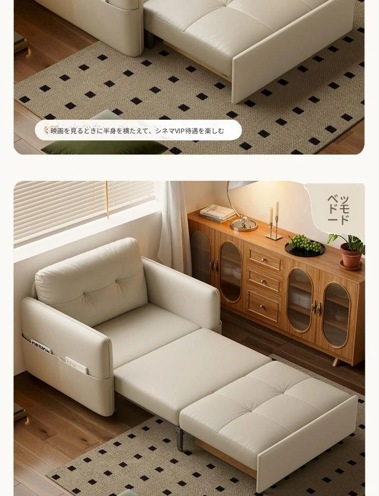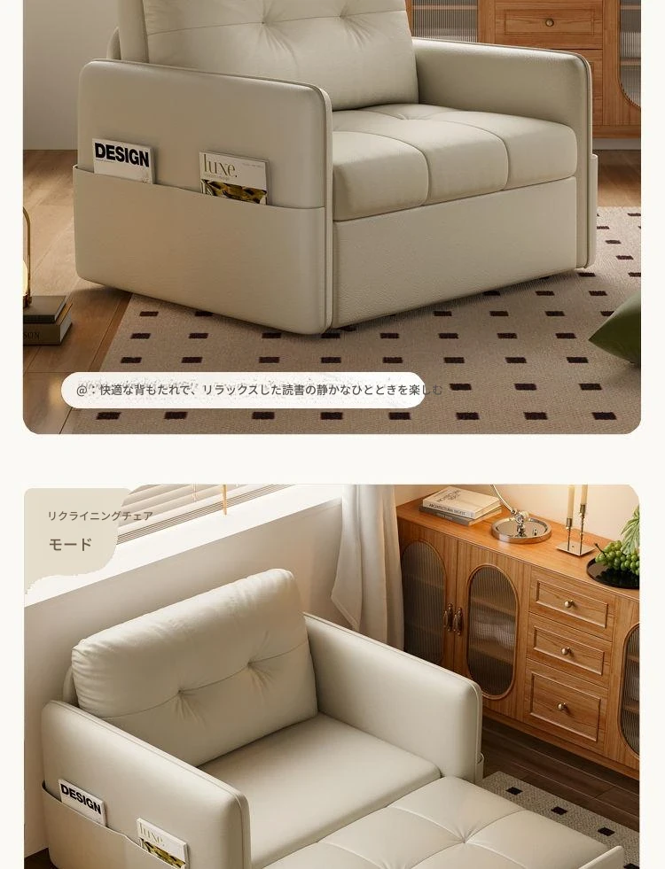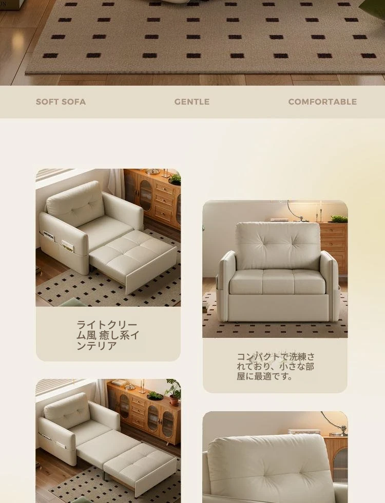 2025年新作!折りたたみ式・伸縮可能なソファベッド - 一人用・多機能デザインで小型住宅や書斎に最適!レトロなミルクカラーでおしゃれな空間を演出!