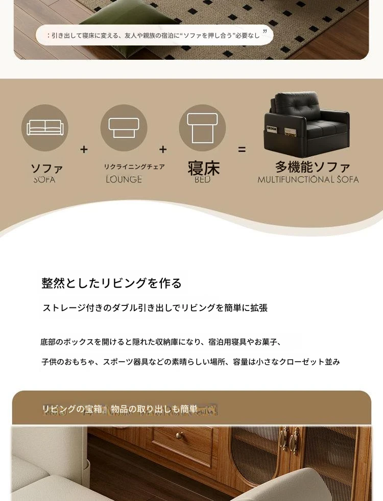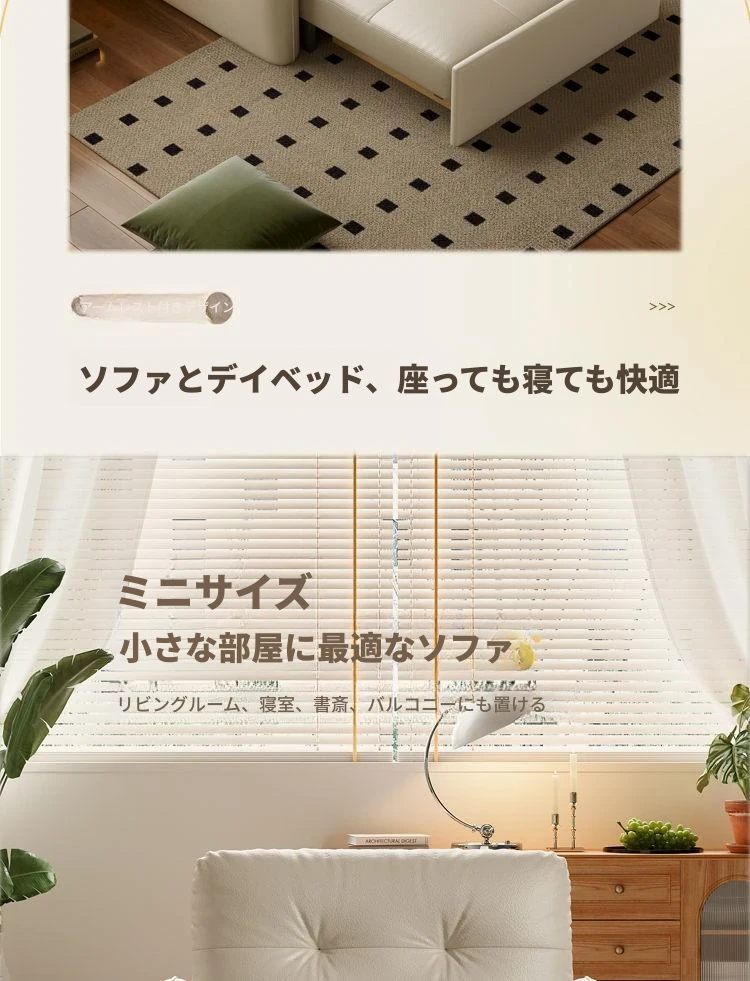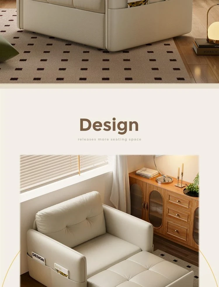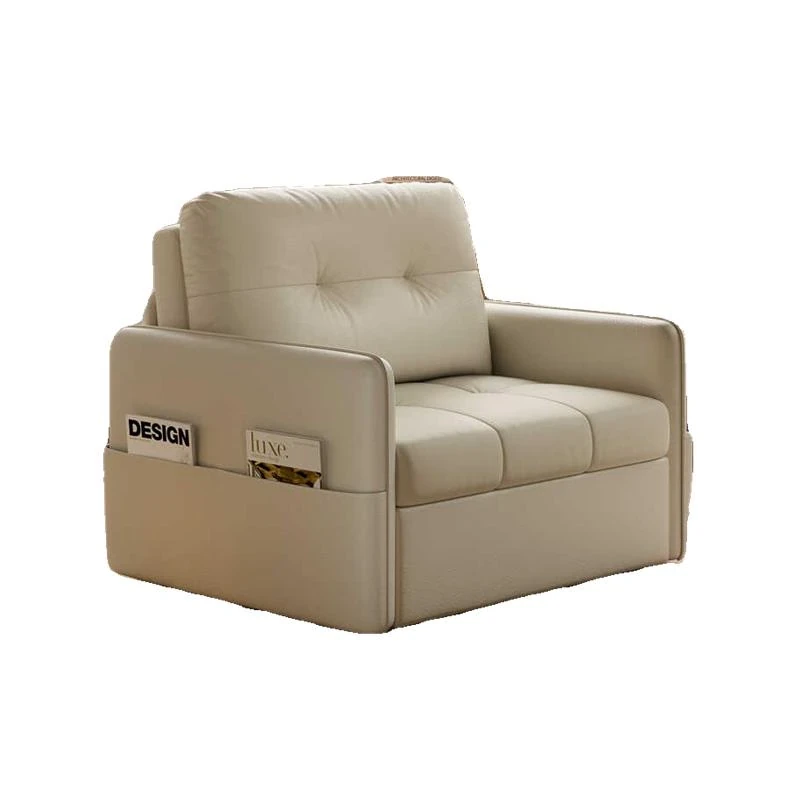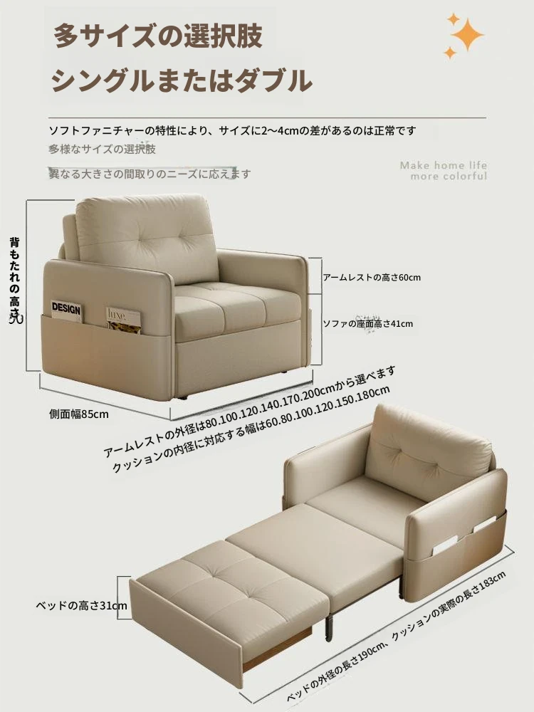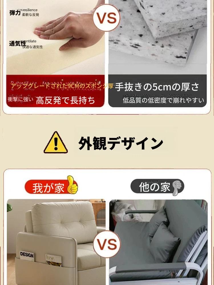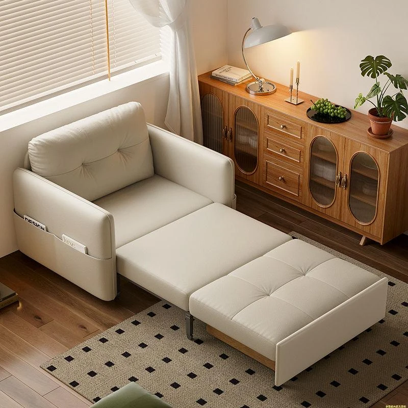 2025年新作!折りたたみ式・伸縮可能なソファベッド - 一人用・多機能デザインで小型住宅や書斎に最適!レトロなミルクカラーでおしゃれな空間を演出!
