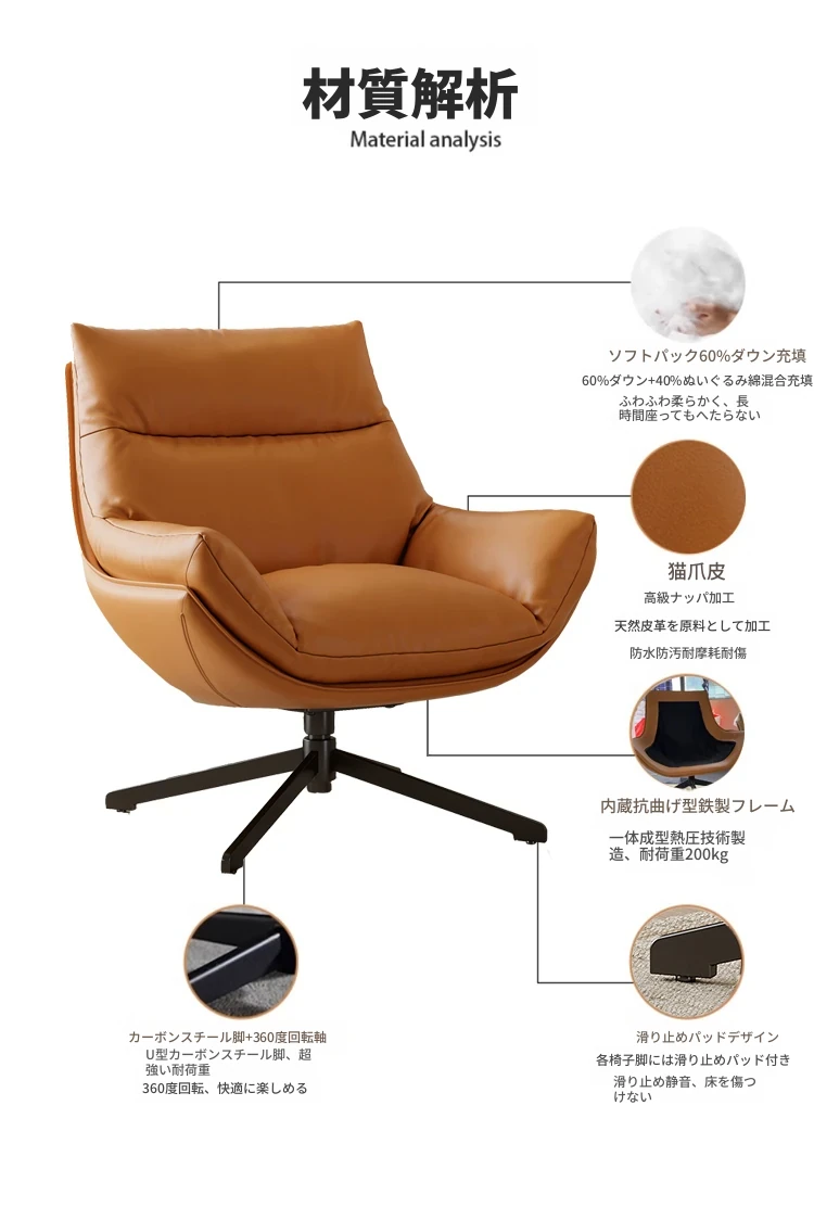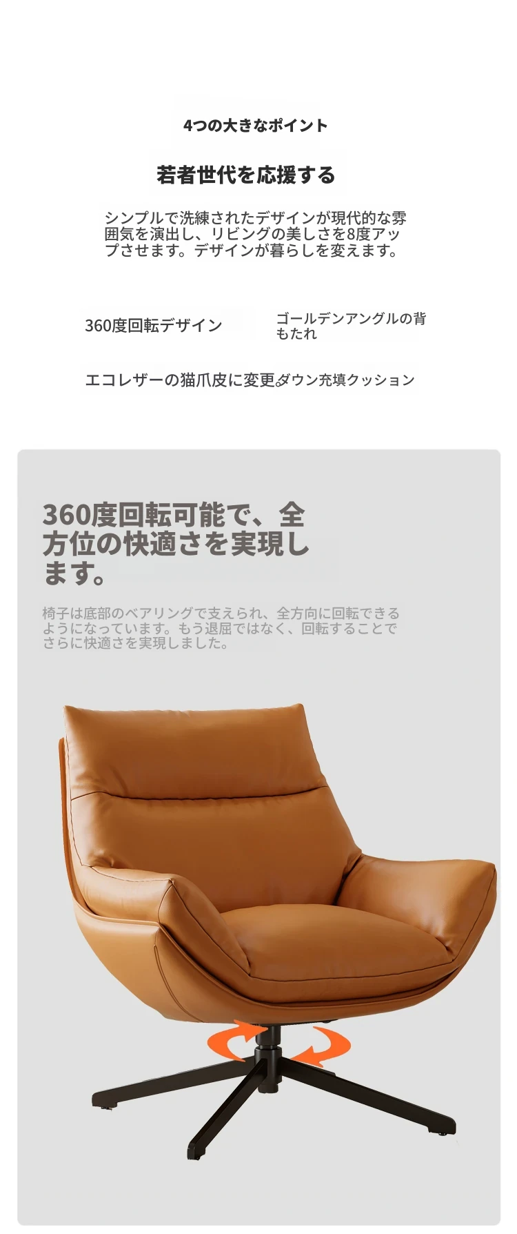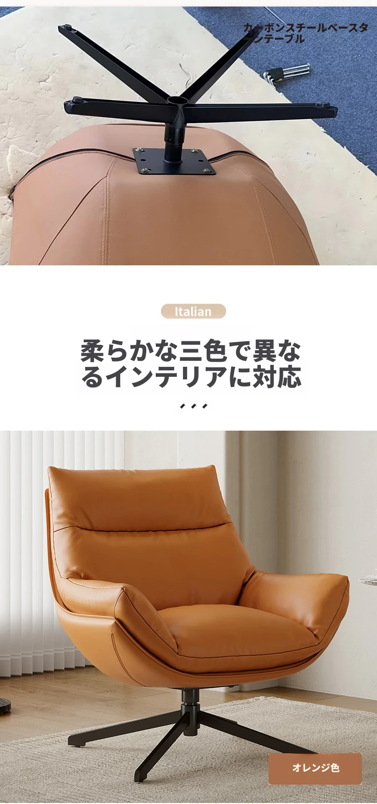 シャゼダイ イタリアンスタイル シングルソファー 段落のないリビングに最適なレザーチェア!バルコニーのリラックスソファーとしても、オフィスでの快適さを提供。シンプルでスタイリッシュなデザインが、あなたの空間を格上げします。