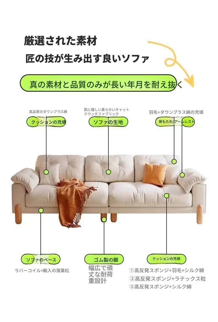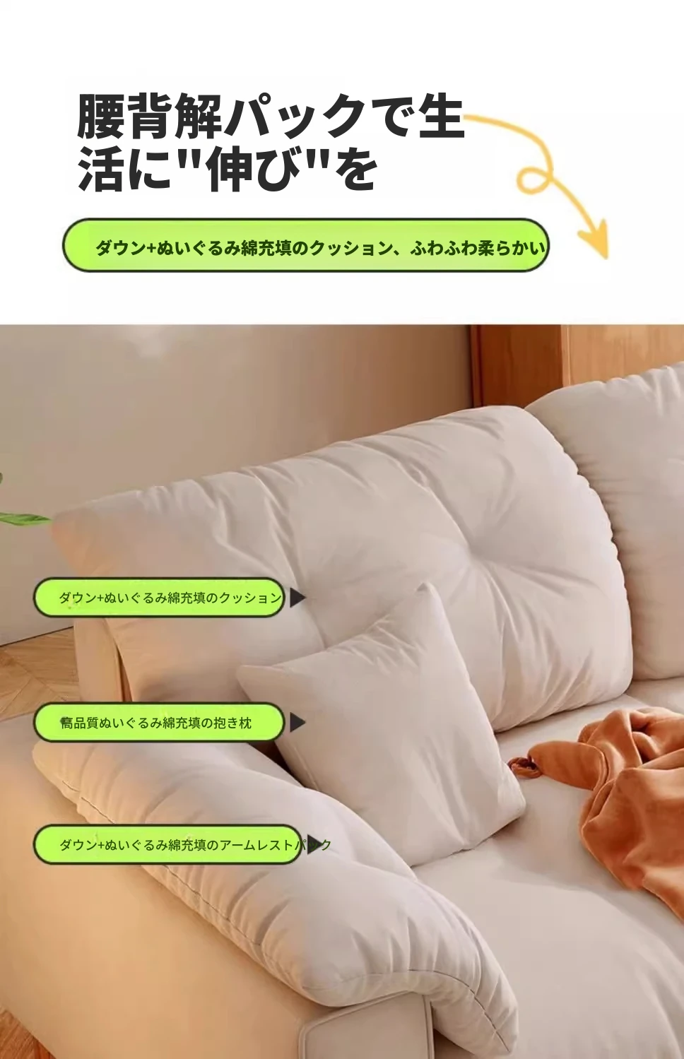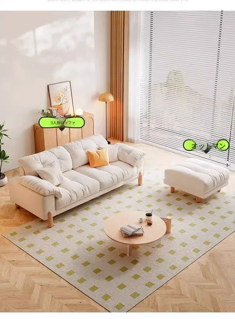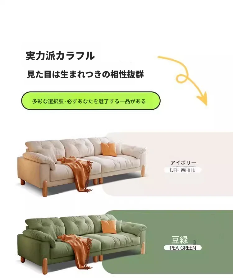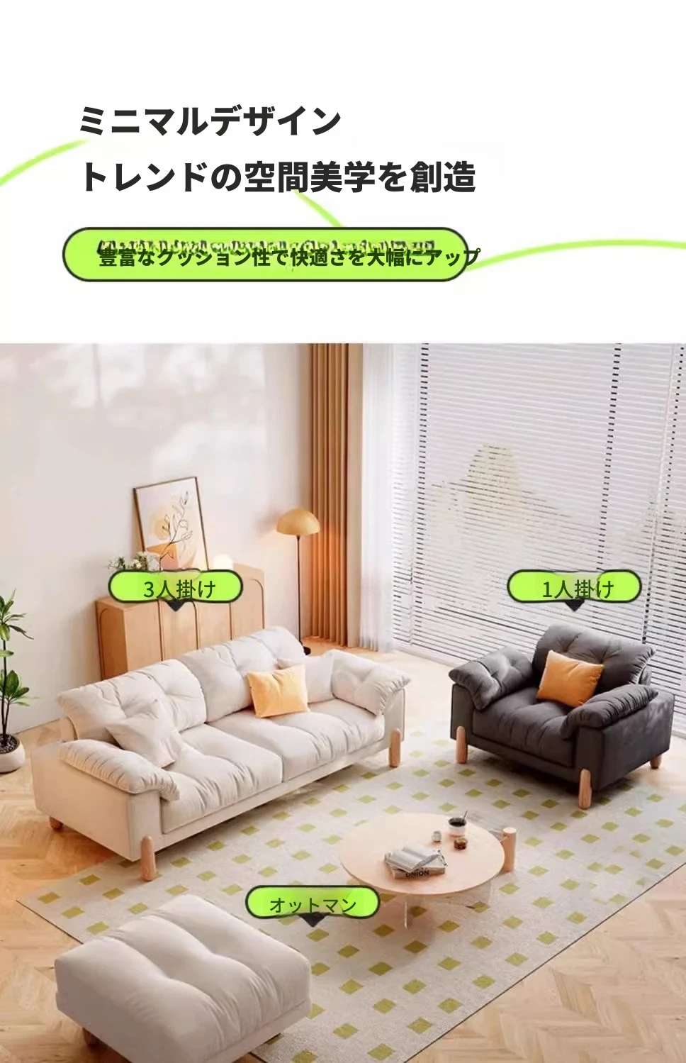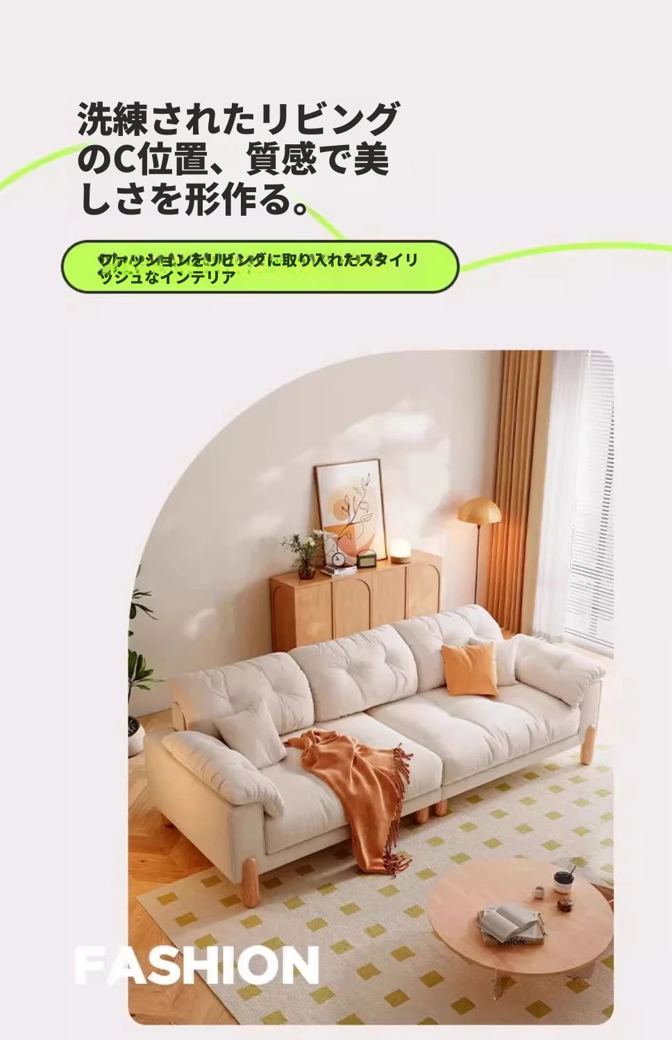 シャゼダイ原木クリーム風ソファー|リビングにぴったりなストレートパイルコーデュロイ生地のモダンでシンプルな3人掛け・4人掛けソファ!居心地の良さとスタイルを両立した理想の空間を実現!