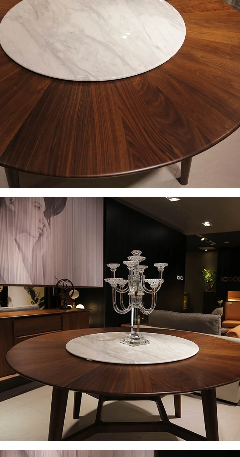 イタリアンスタイルのラグジュアリーなダイニングテーブル&チェアセット|モダンでシンプル、回転式の大理石ラウンドテーブル|小さなお部屋にも最適な食事空間を演出します!