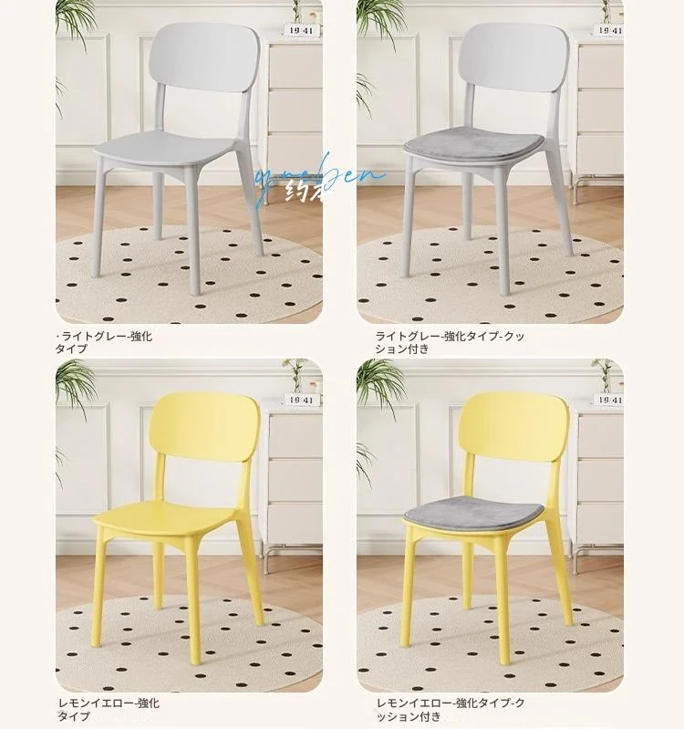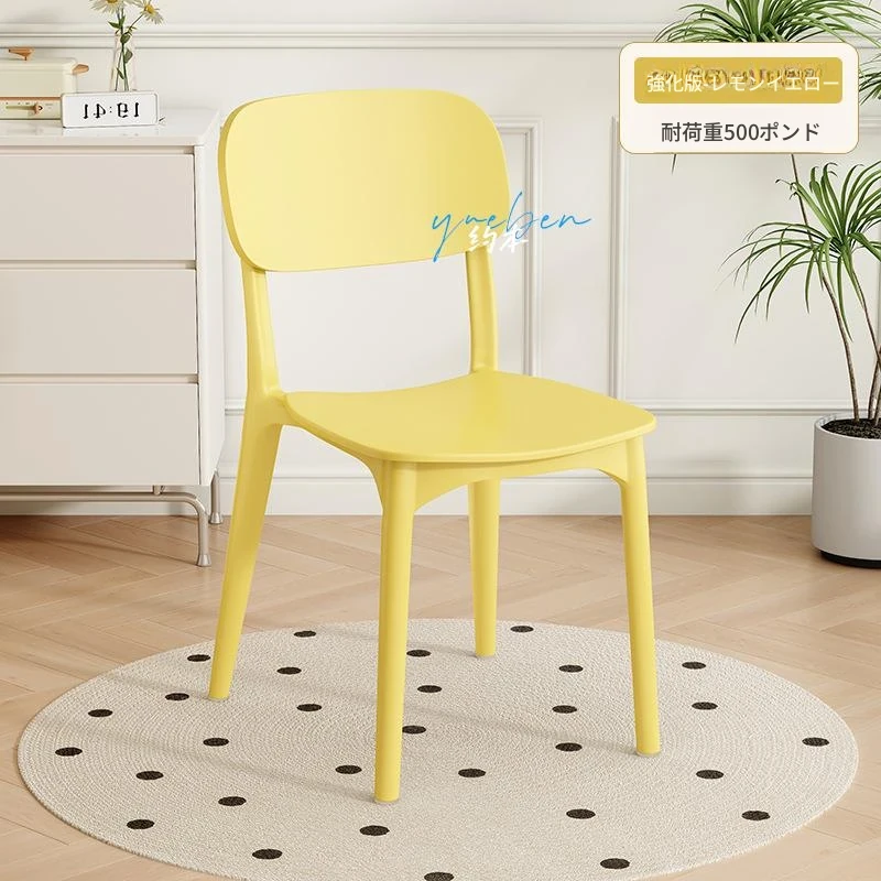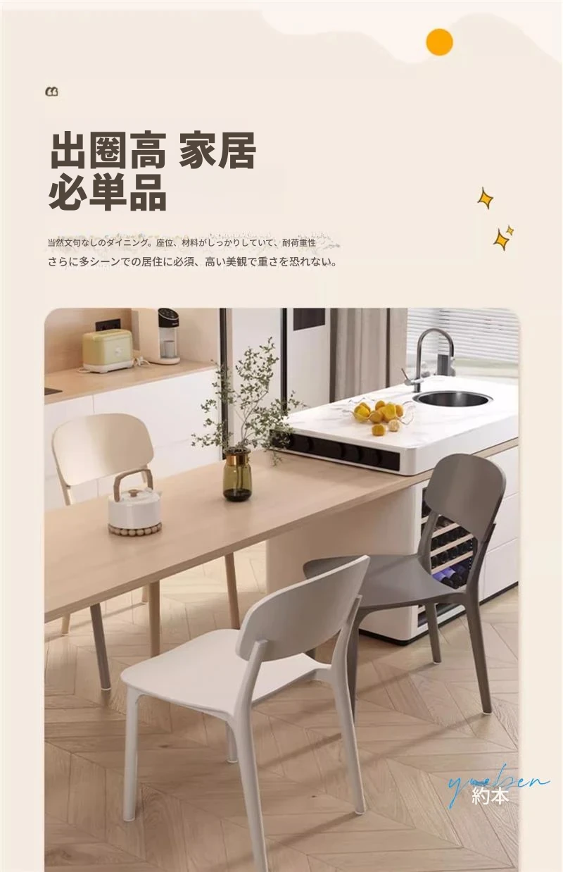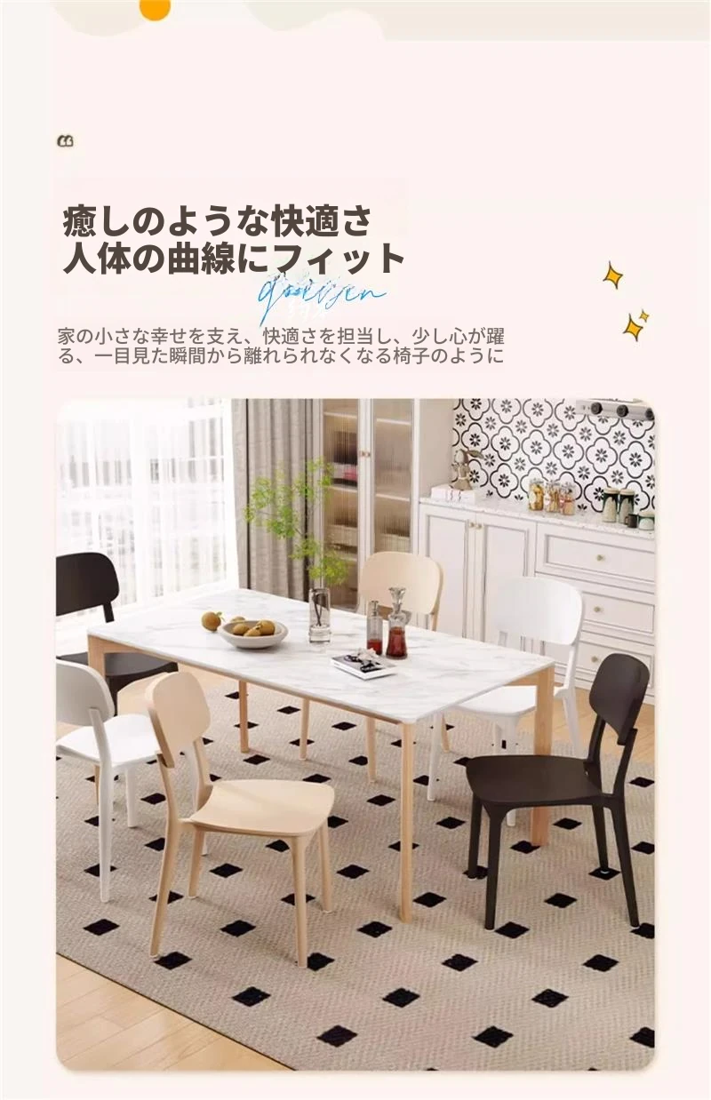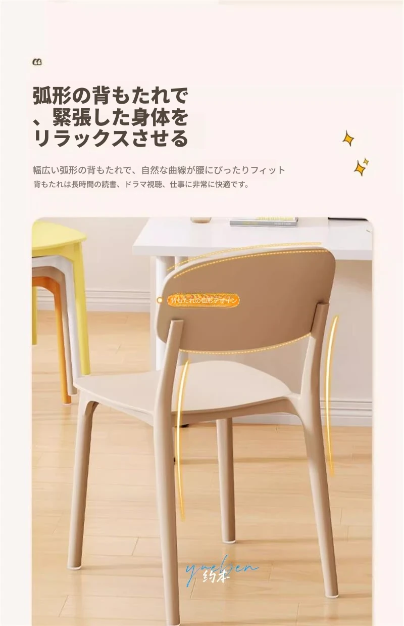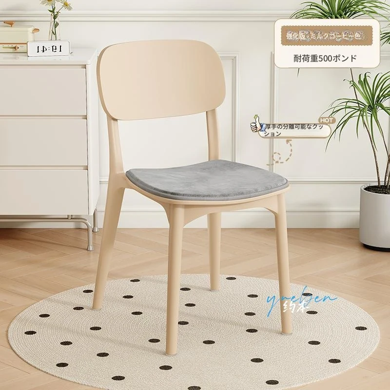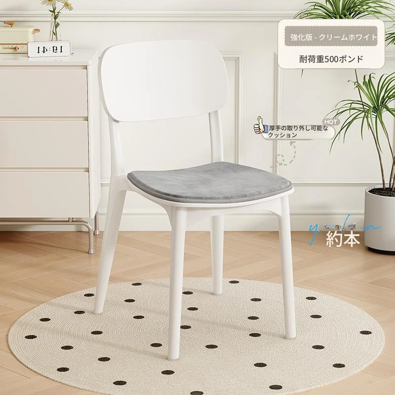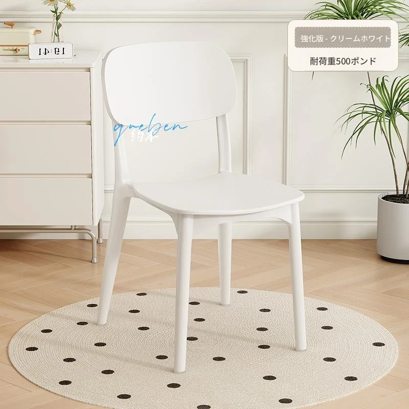 重ねて使える厚手プラスチック製ダイニングチェア - モダンでシンプルなデザイン、快適な背もたれ付き!家庭用に最適、クリーミーな色合いでおしゃれな食卓を演出します。