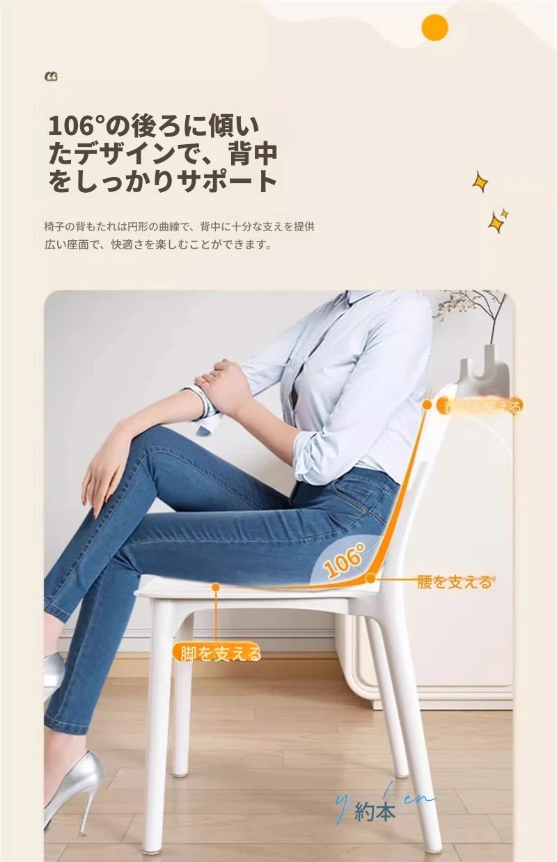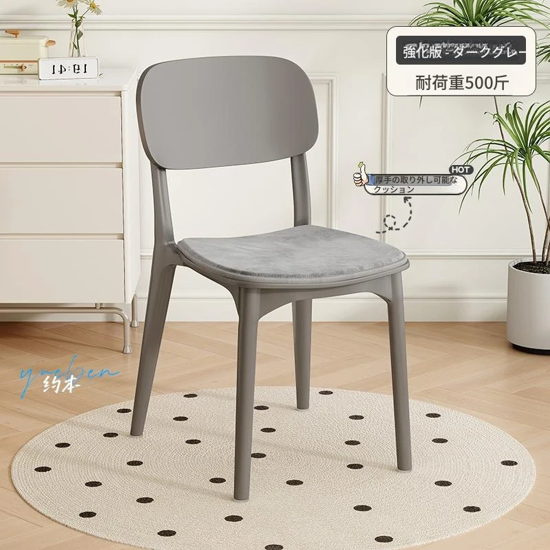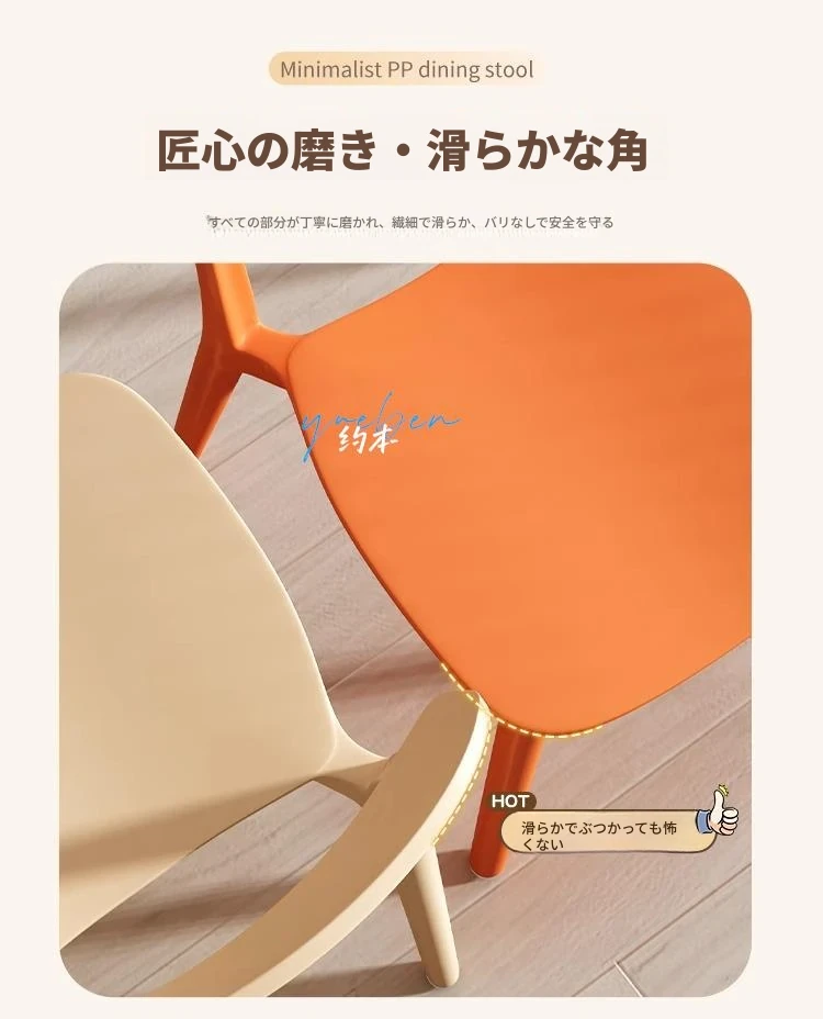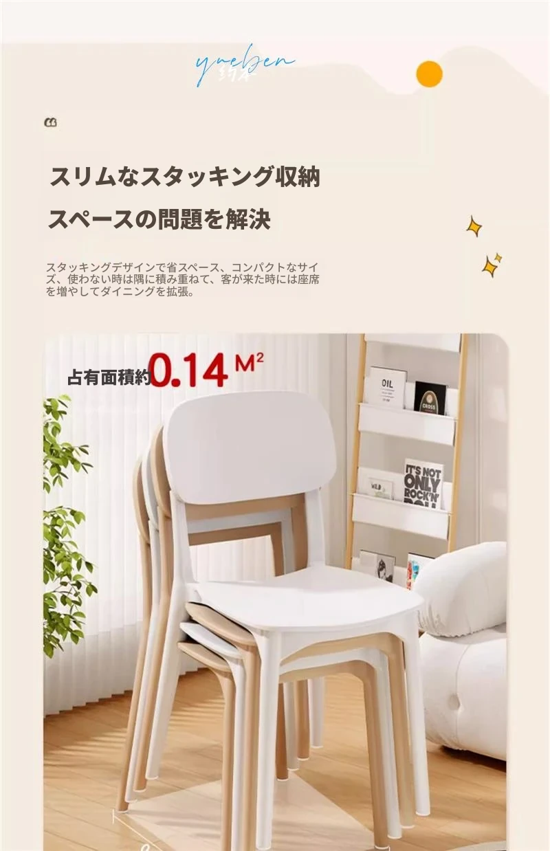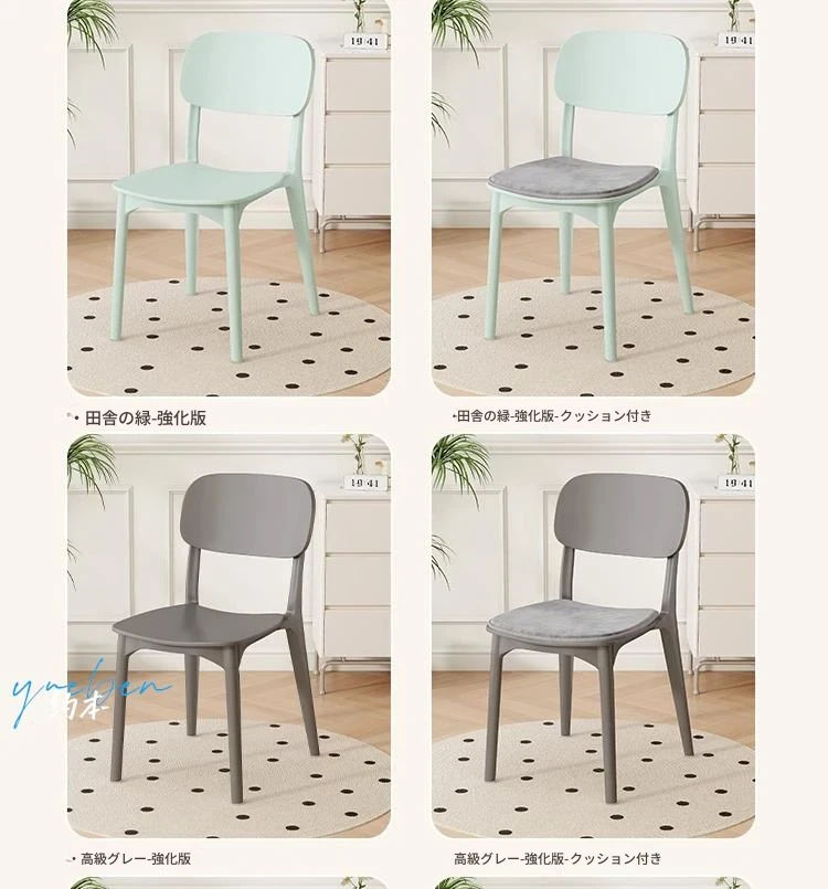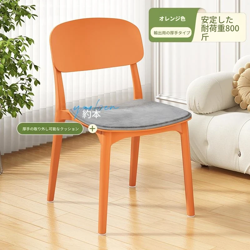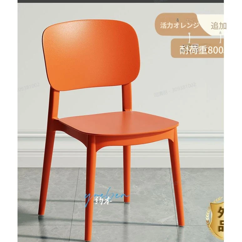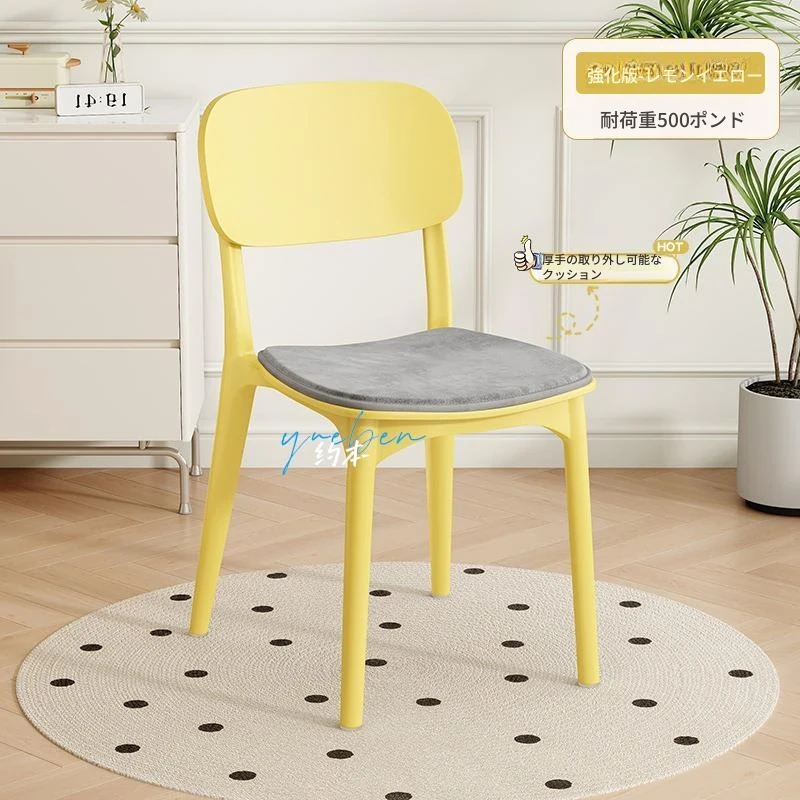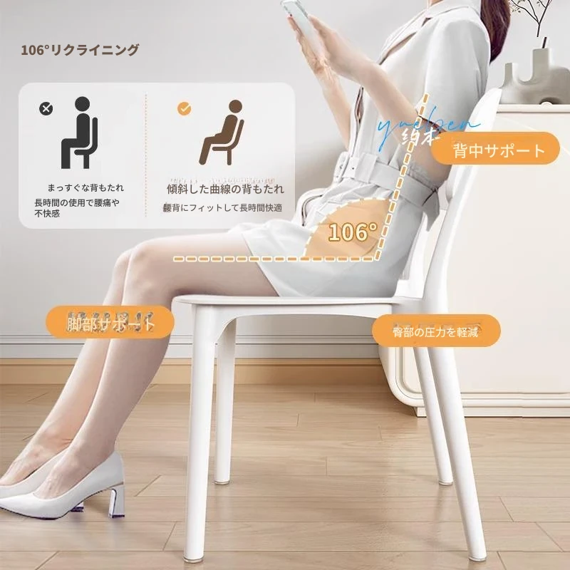 重ねて使える厚手プラスチック製ダイニングチェア - モダンでシンプルなデザイン、快適な背もたれ付き!家庭用に最適、クリーミーな色合いでおしゃれな食卓を演出します。