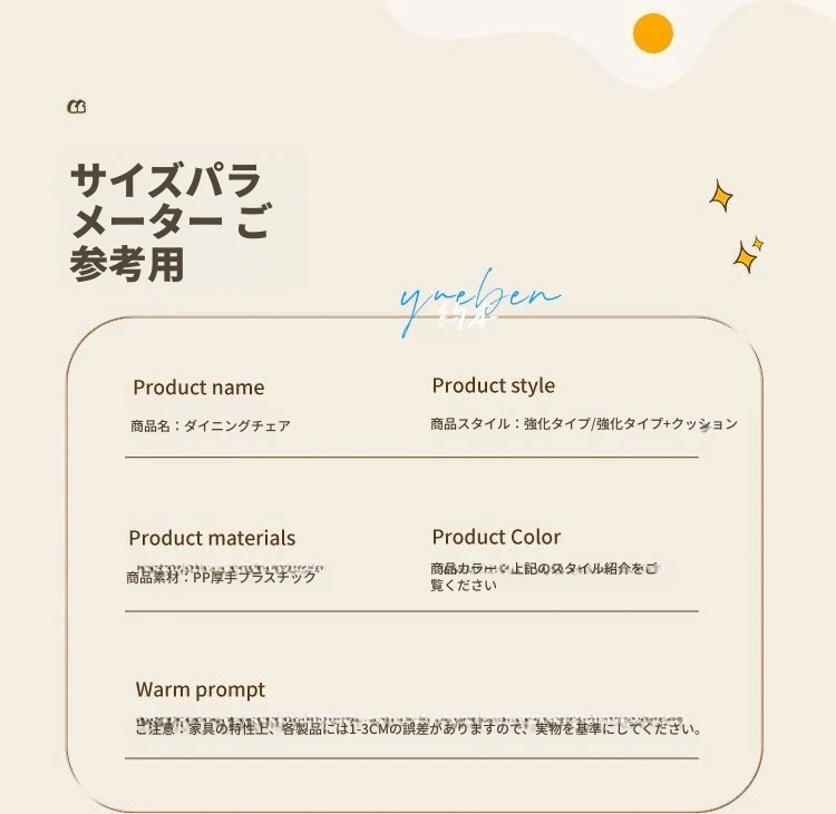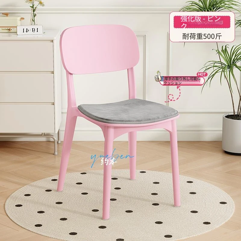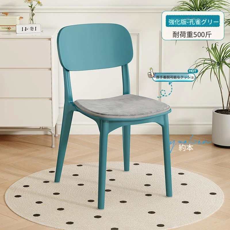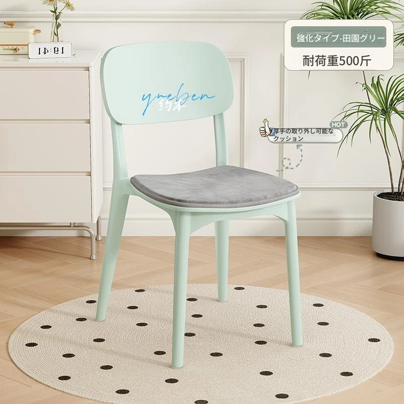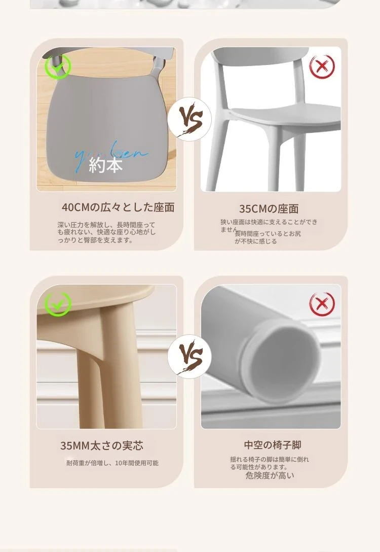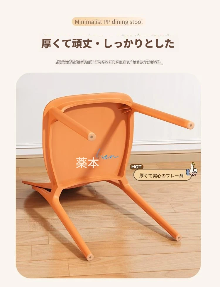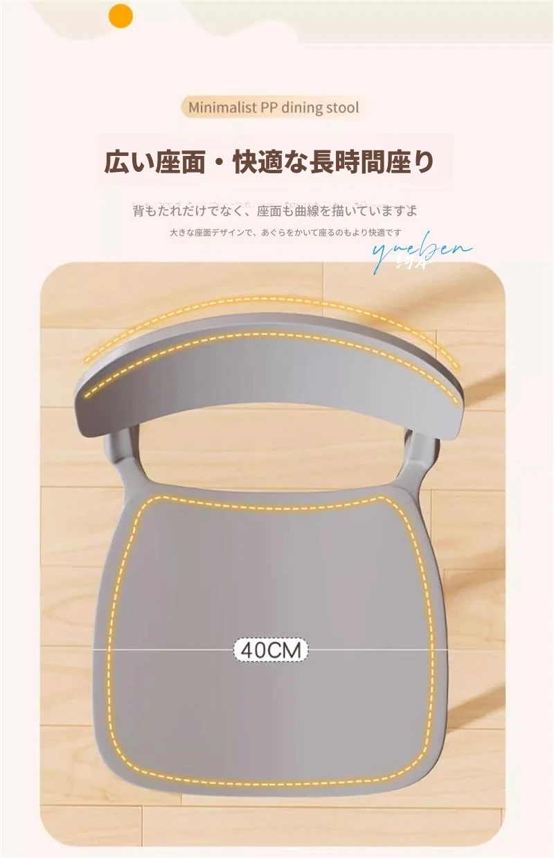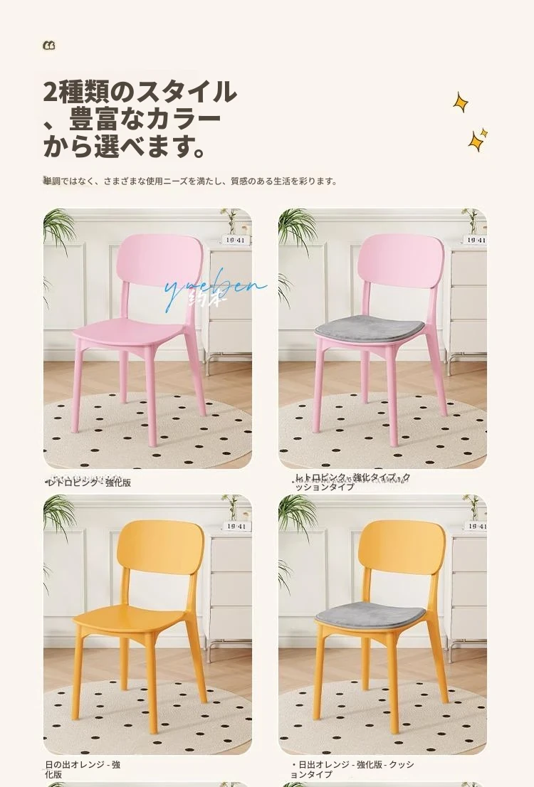 重ねて使える厚手プラスチック製ダイニングチェア - モダンでシンプルなデザイン、快適な背もたれ付き!家庭用に最適、クリーミーな色合いでおしゃれな食卓を演出します。