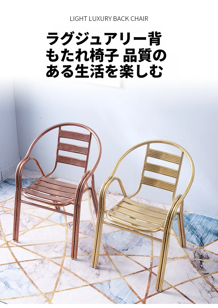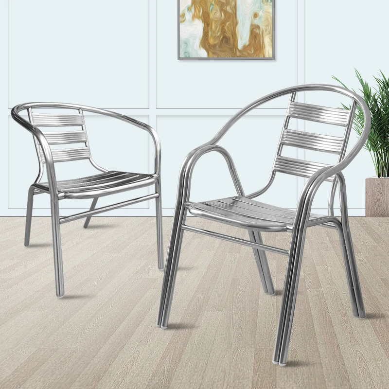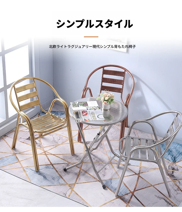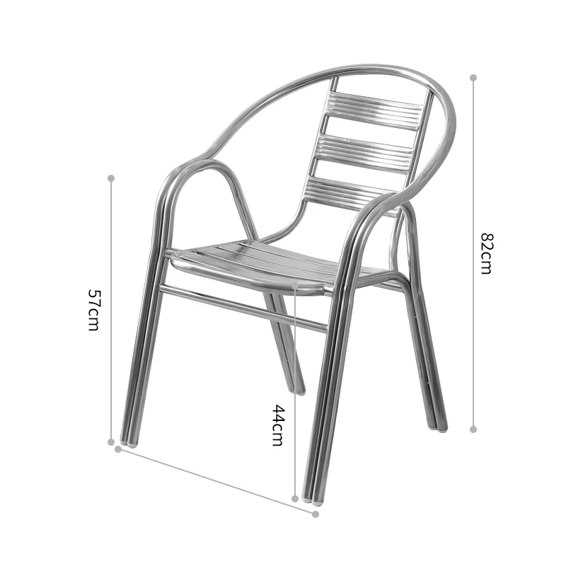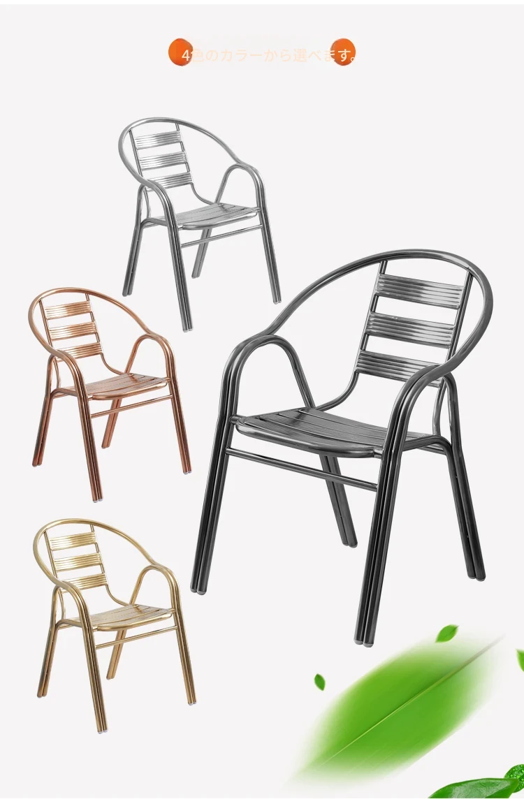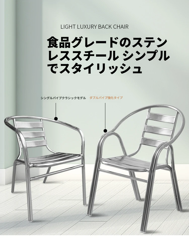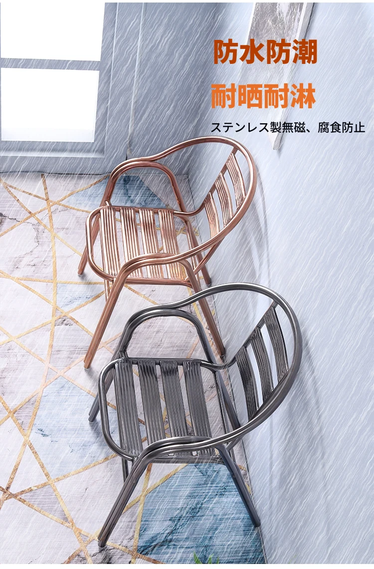 ステンレス製ダイニングチェア 七板アームレスト付き 背もたれ付き 屋外用 家庭用 メタルバルコニーチェア 一人用 組立不要のリラックスチェア【快適な座り心地とスタイリッシュなデザインで、屋外でのひとときを楽しむ】