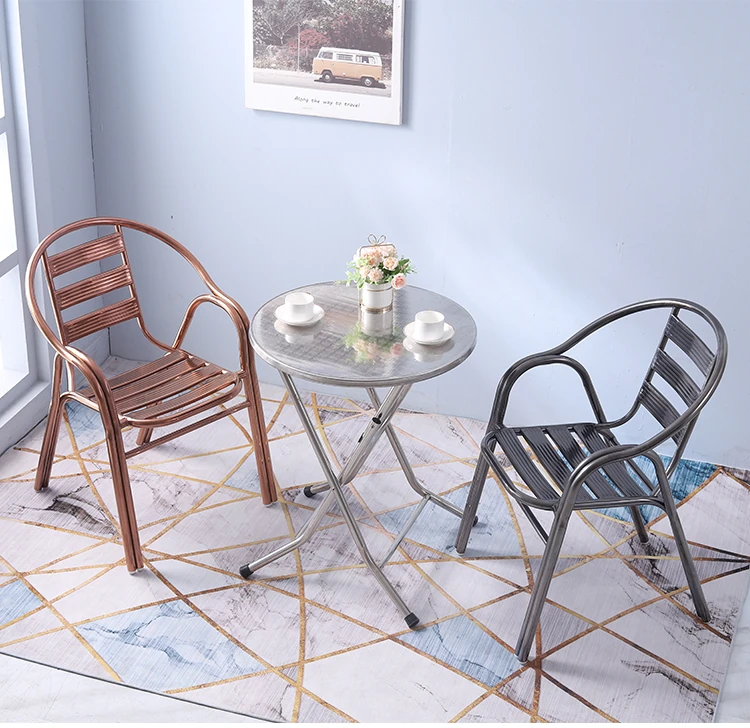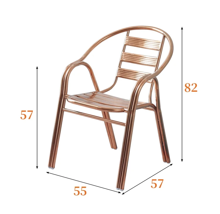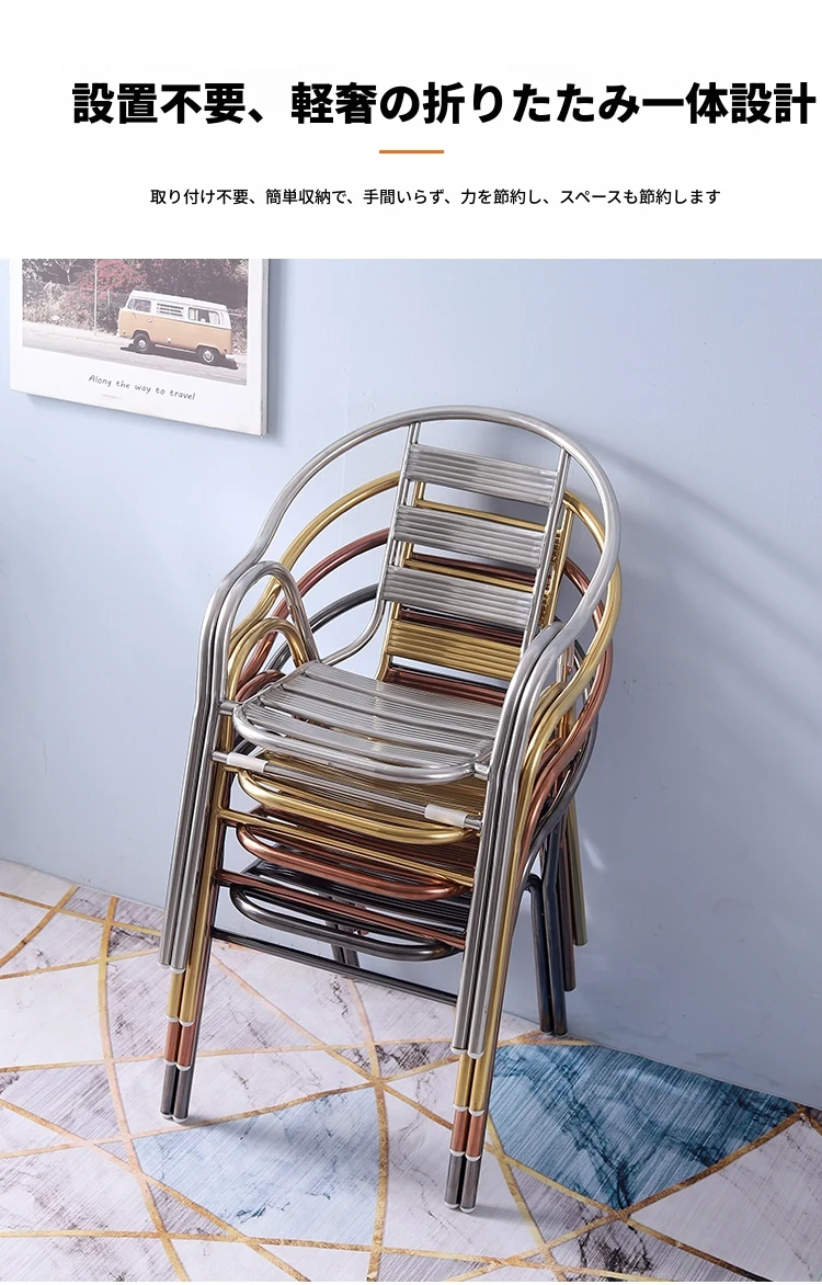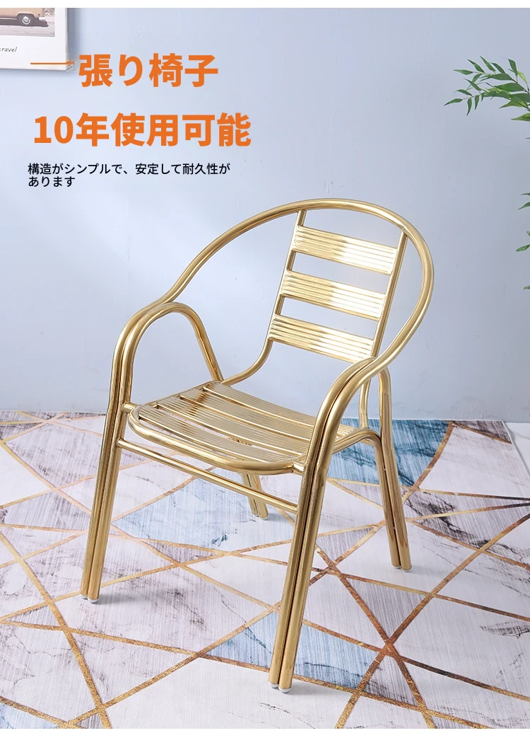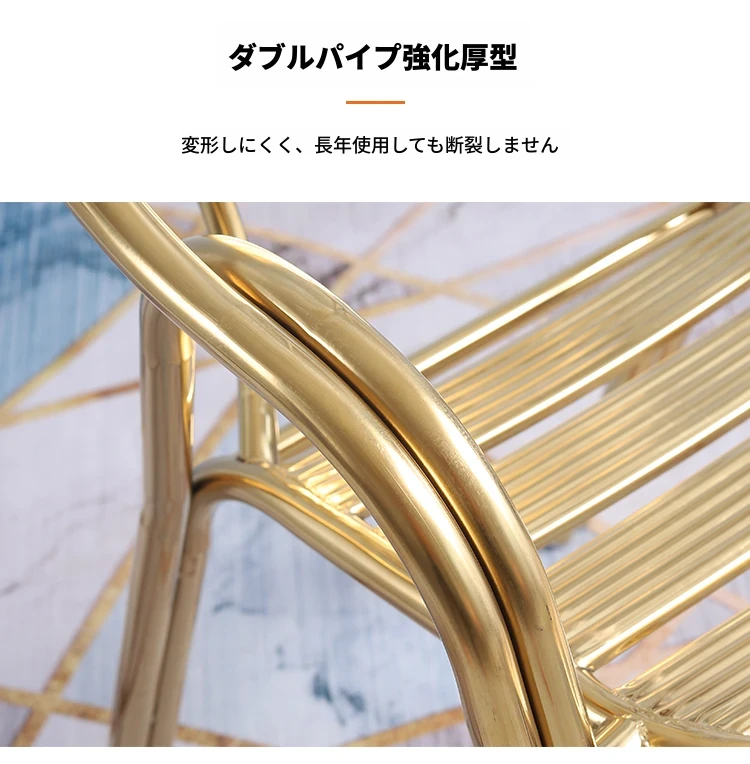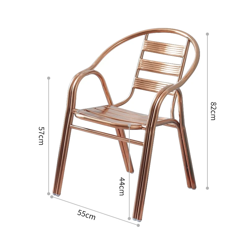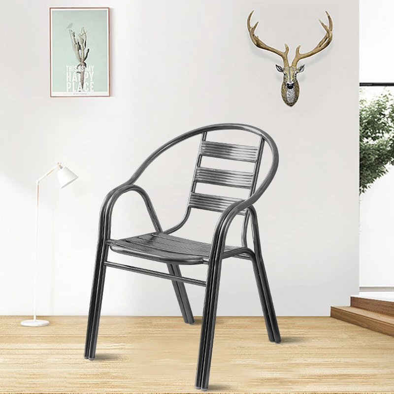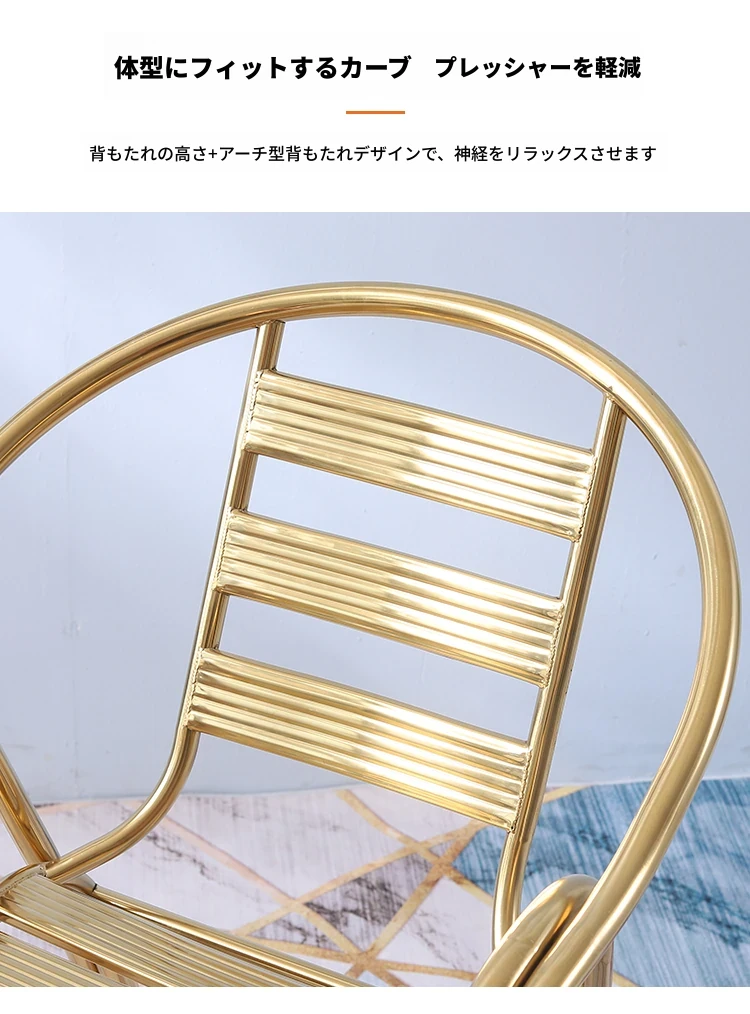 ステンレス製ダイニングチェア 七板アームレスト付き 背もたれ付き 屋外用 家庭用 メタルバルコニーチェア 一人用 組立不要のリラックスチェア【快適な座り心地とスタイリッシュなデザインで、屋外でのひとときを楽しむ】