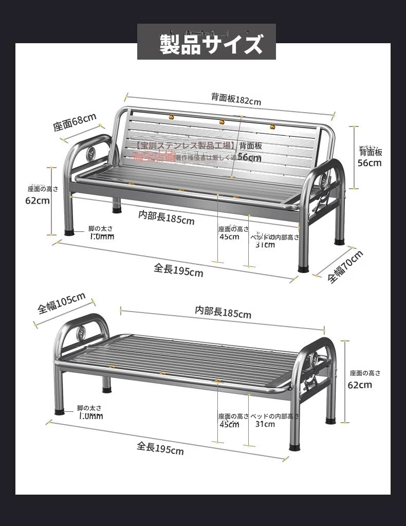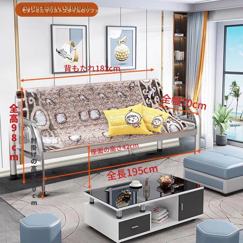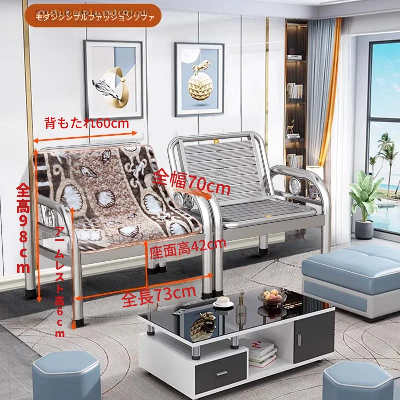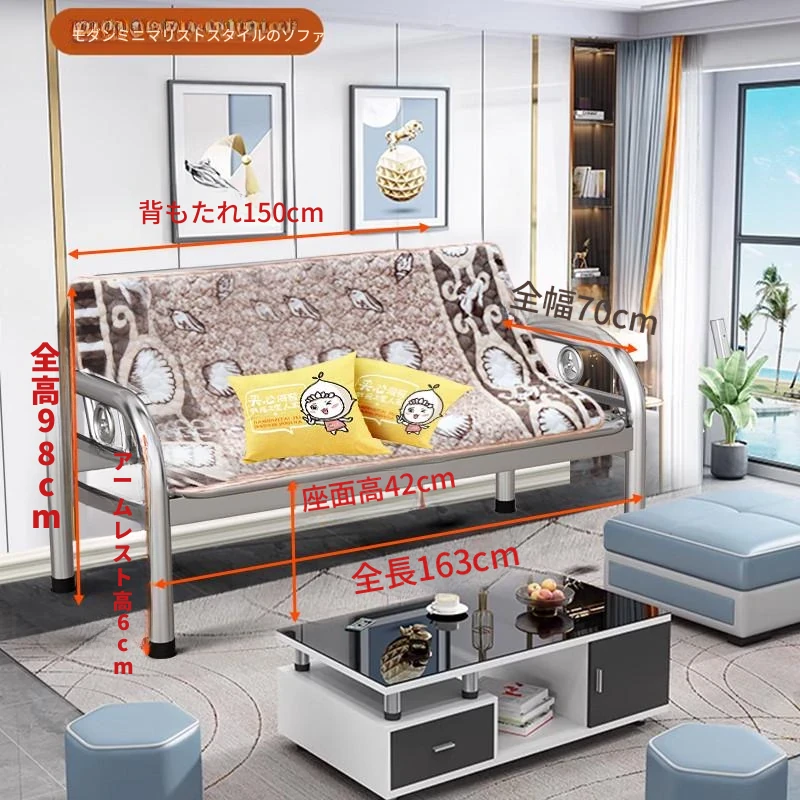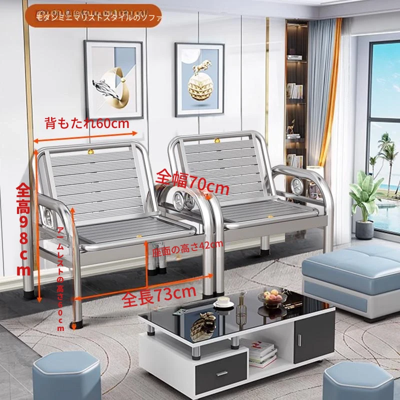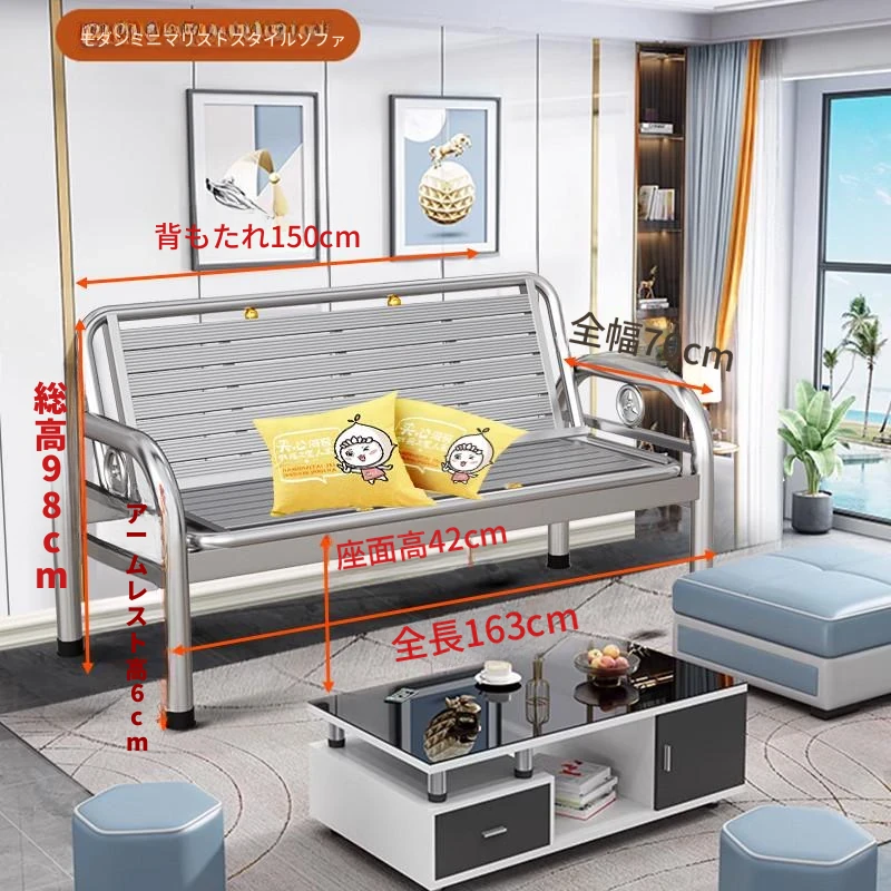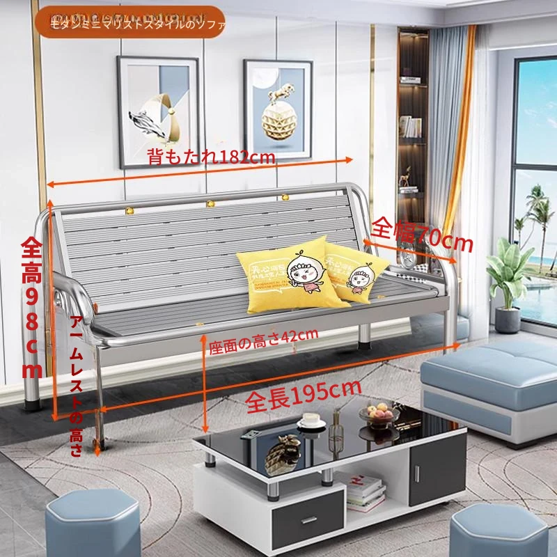 ステンレス製の厚手ソファー、家庭用リビングやオフィスに最適!折りたたみ式で便利なソファベッド、簡単にアウトドア用のアイアン製ロングベンチにも早変わり!快適な空間を演出します。