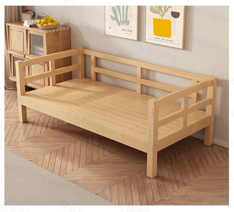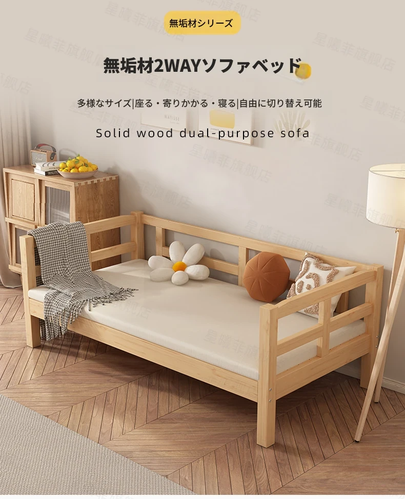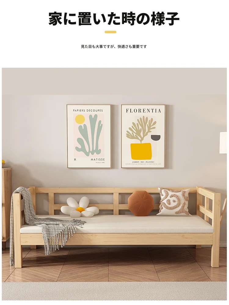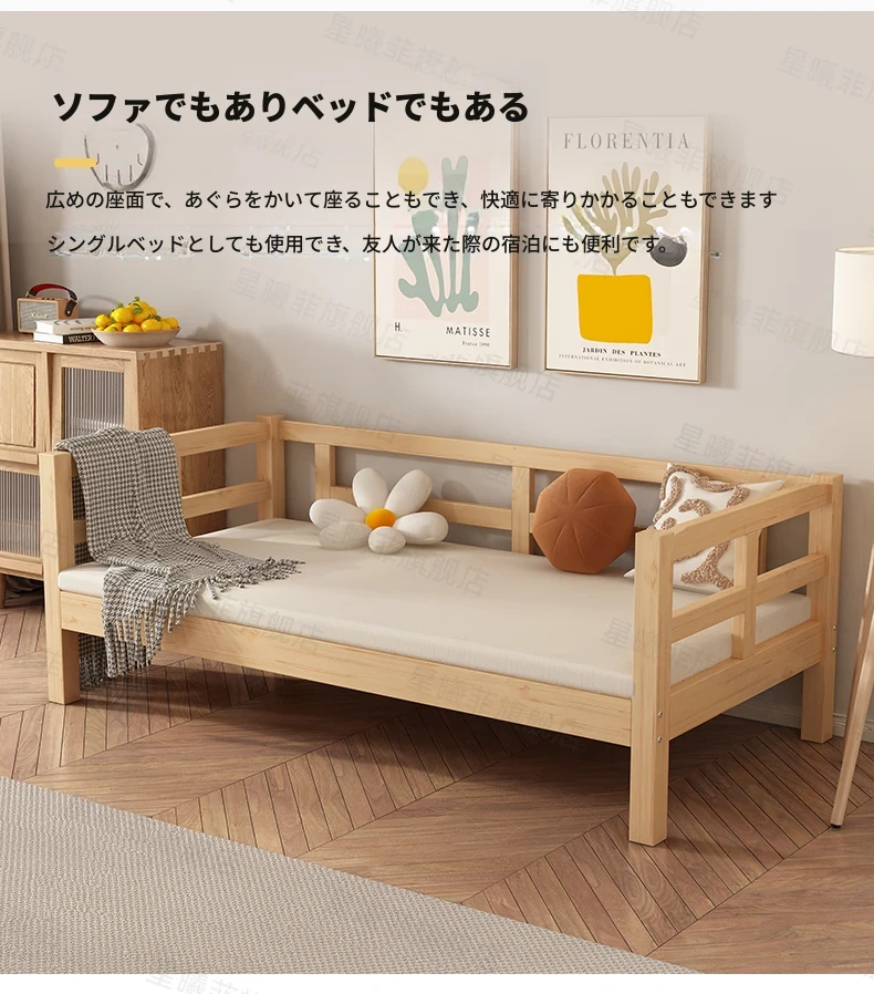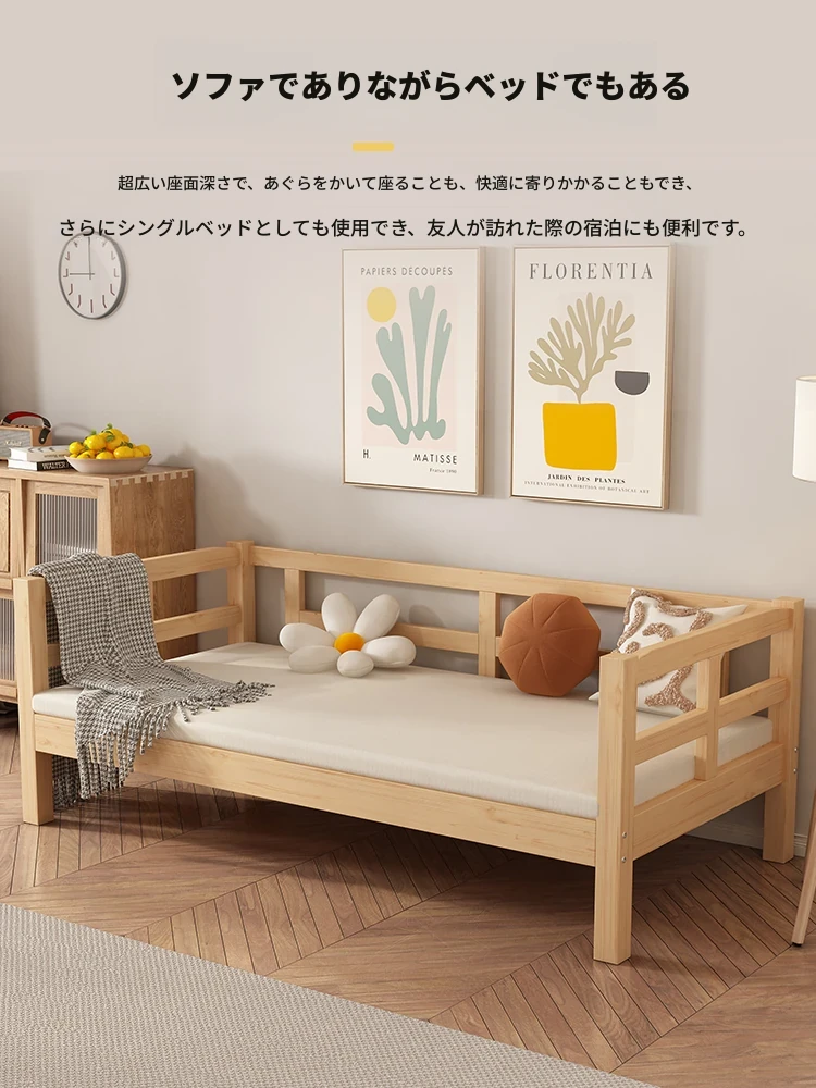 全実木製ソファベッド コンパクトな一人用ベッド シンプルで多機能なリビング用ソファ 座っても寝ても快適なリラックス空間を提供!小さな部屋にも最適なデザインです。