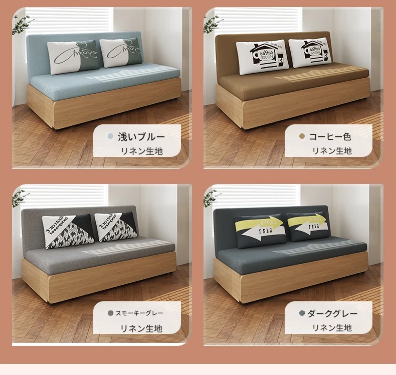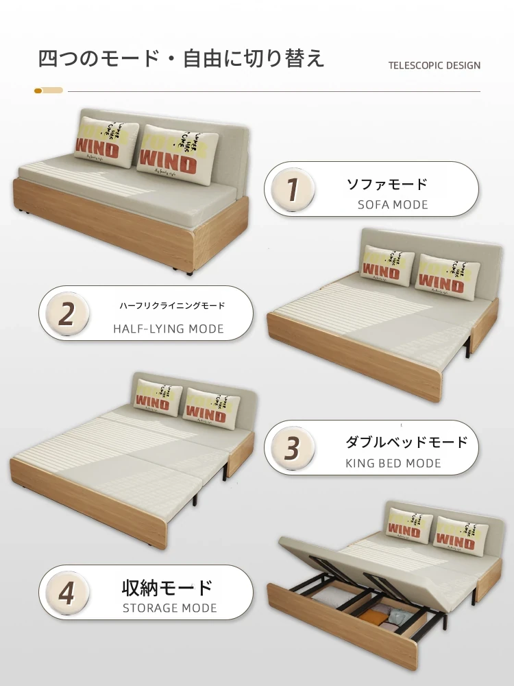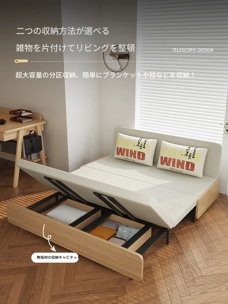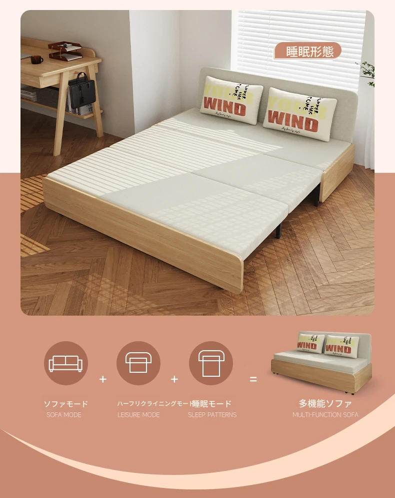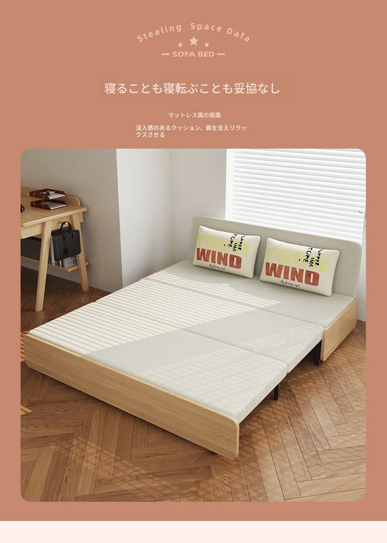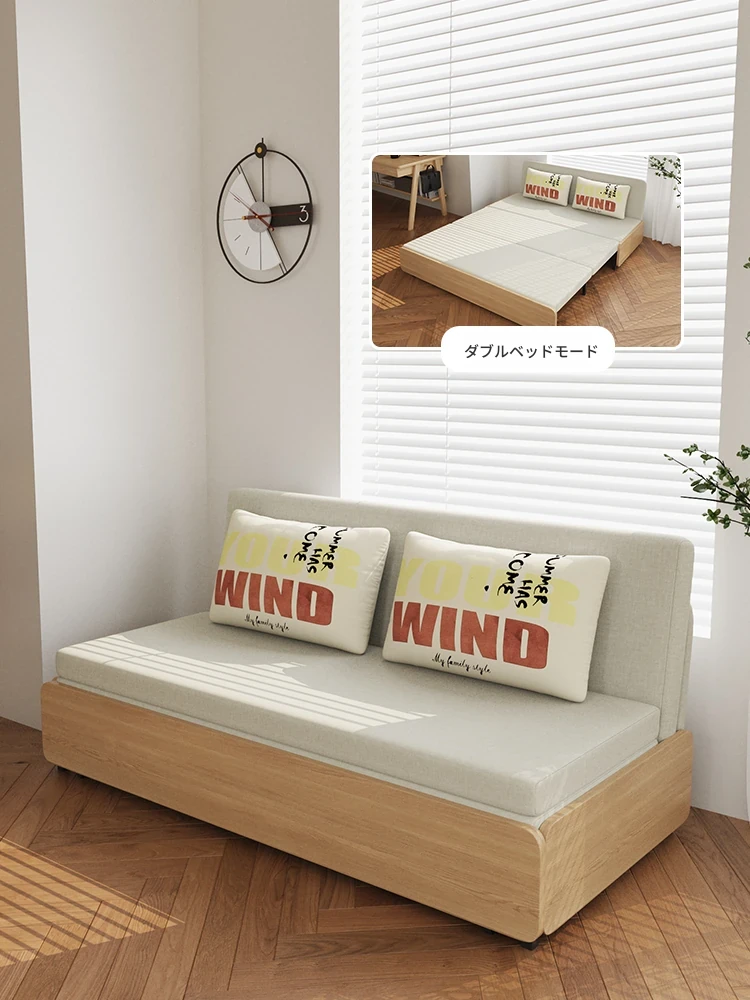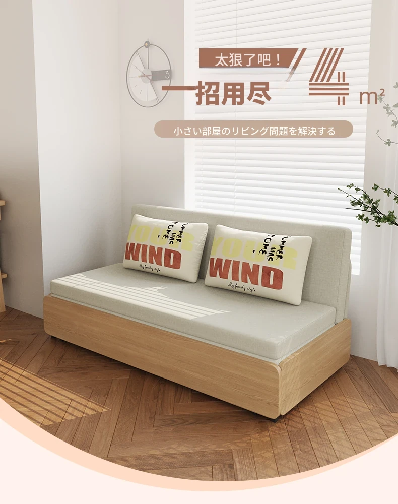 天然木材風の折りたたみ式ソファベッド!小型住宅に最適な1.2mサイズ、二人用・一人用両用!リビングルームにぴったりの多機能収納付きで、おしゃれで使い勝手抜群!