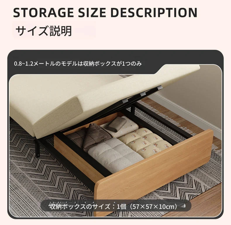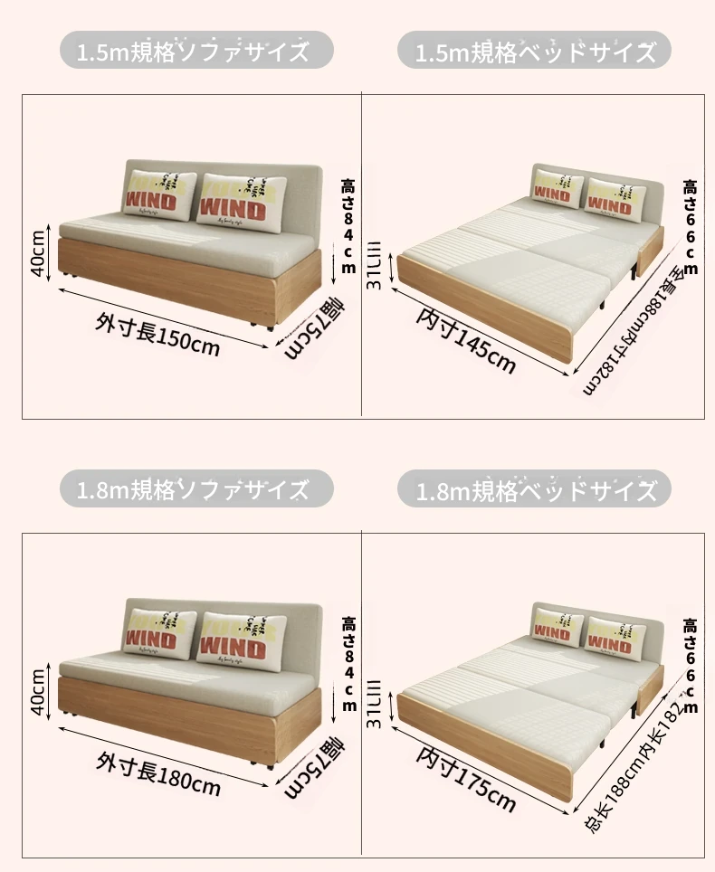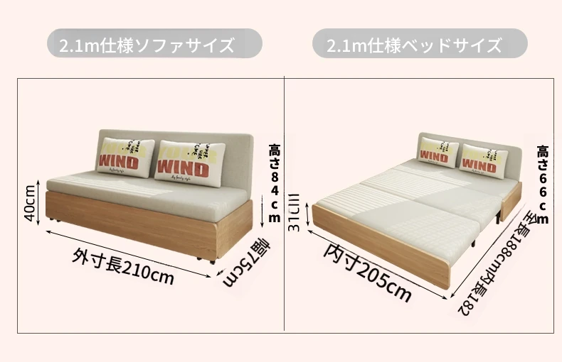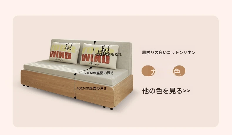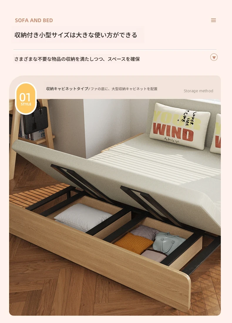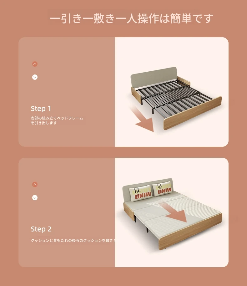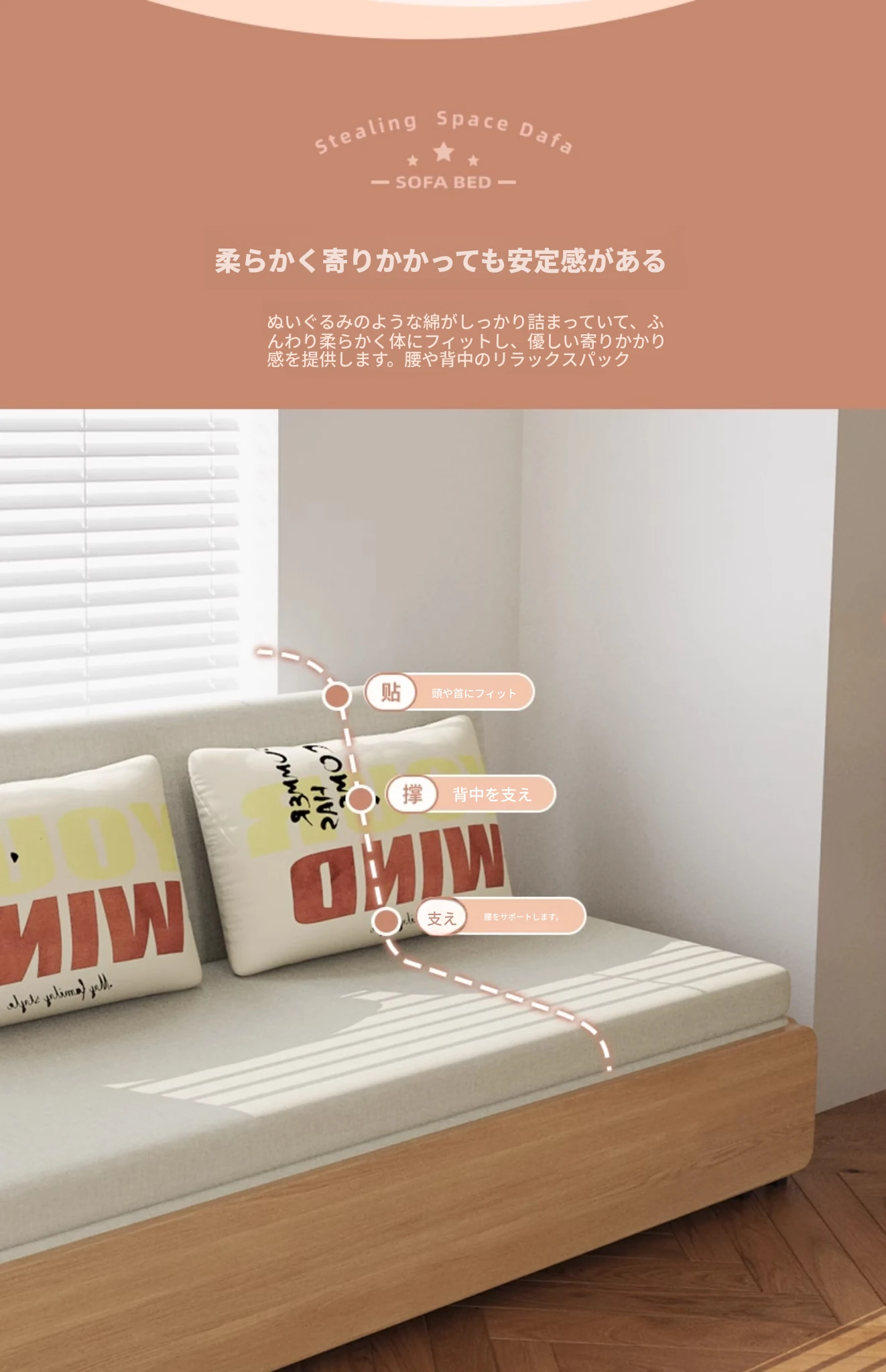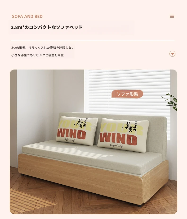 天然木材風の折りたたみ式ソファベッド!小型住宅に最適な1.2mサイズ、二人用・一人用両用!リビングルームにぴったりの多機能収納付きで、おしゃれで使い勝手抜群!