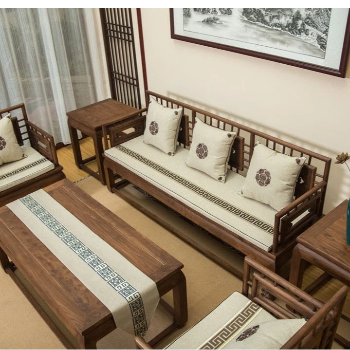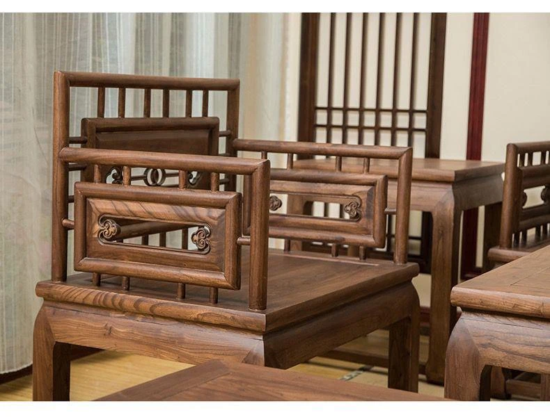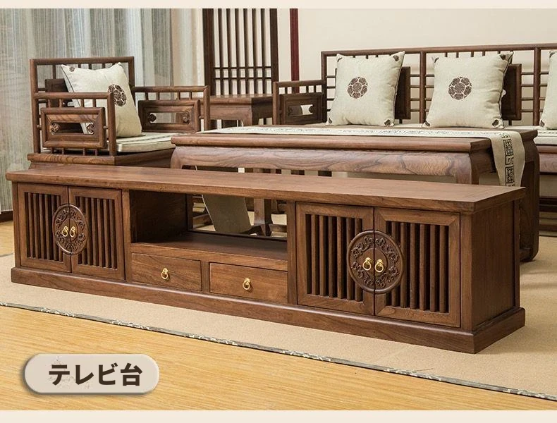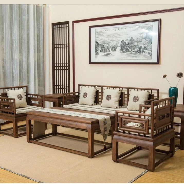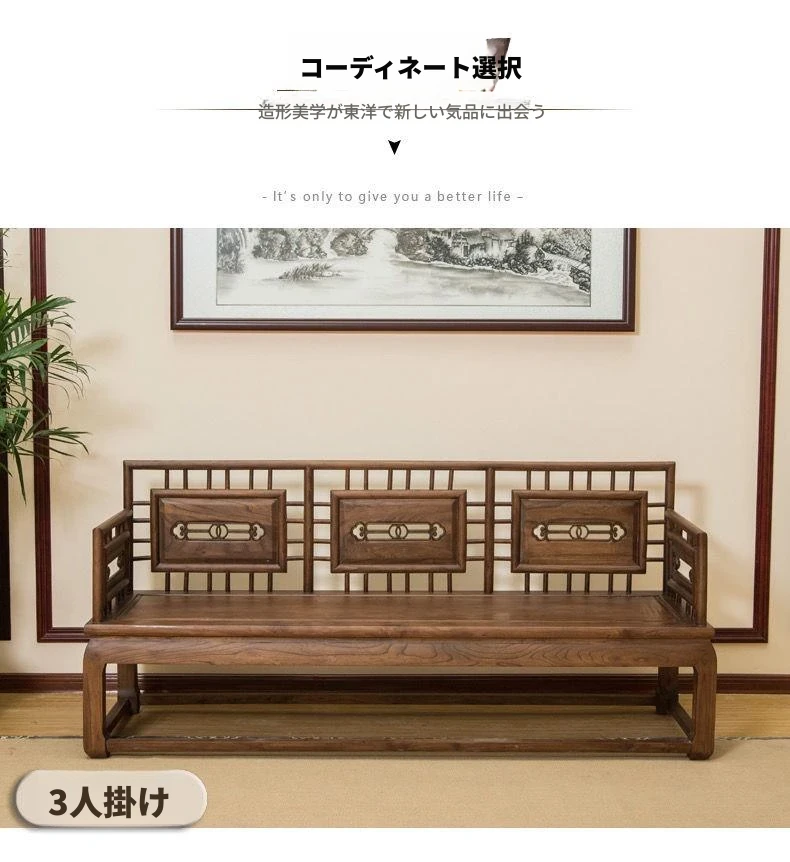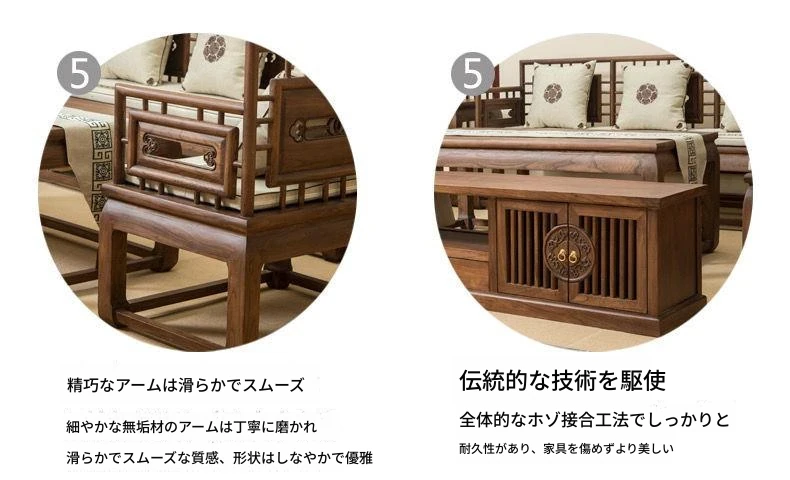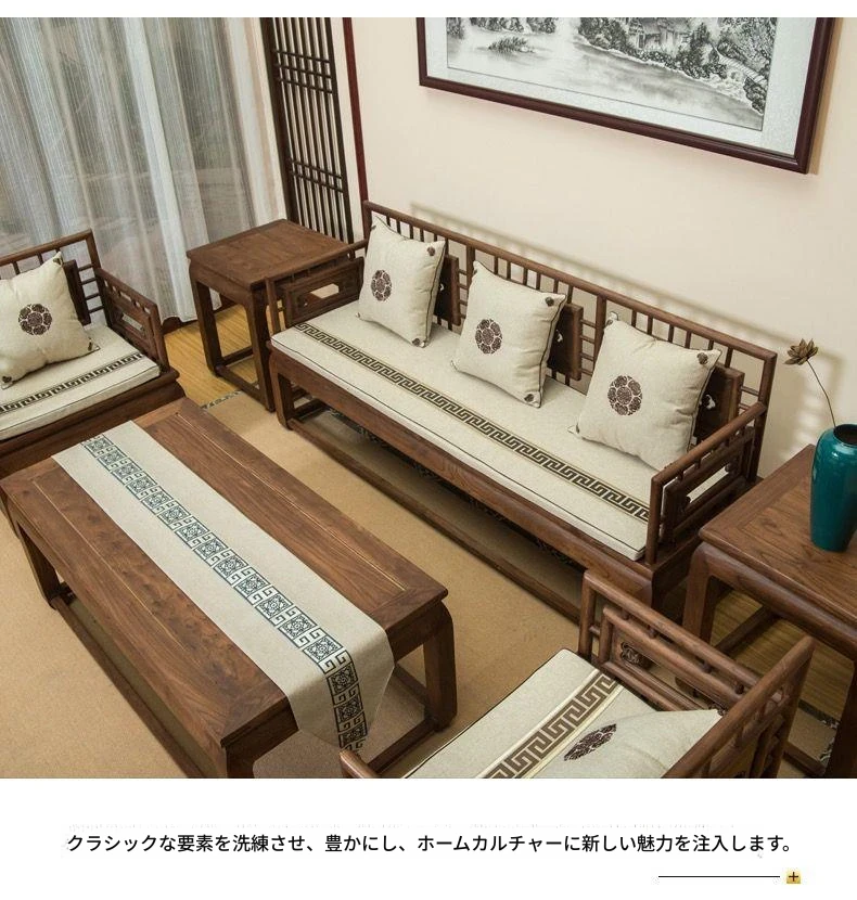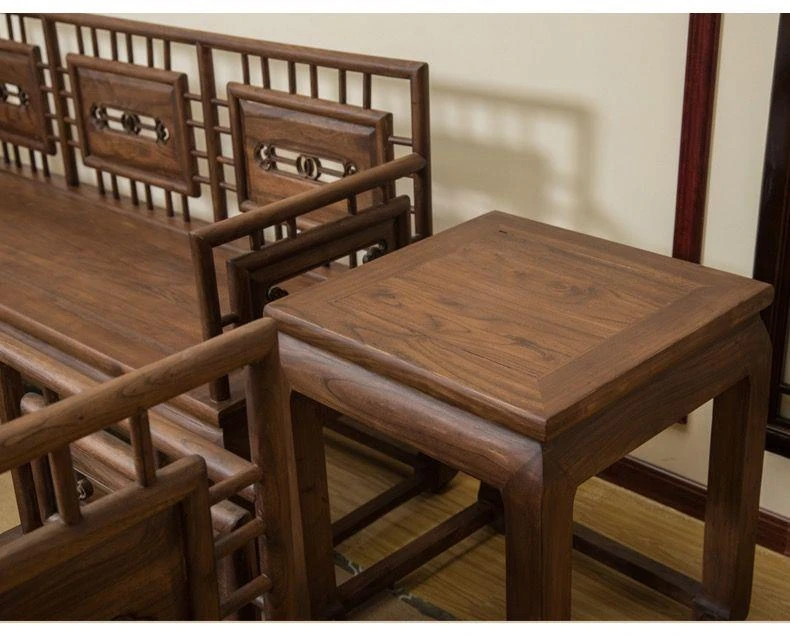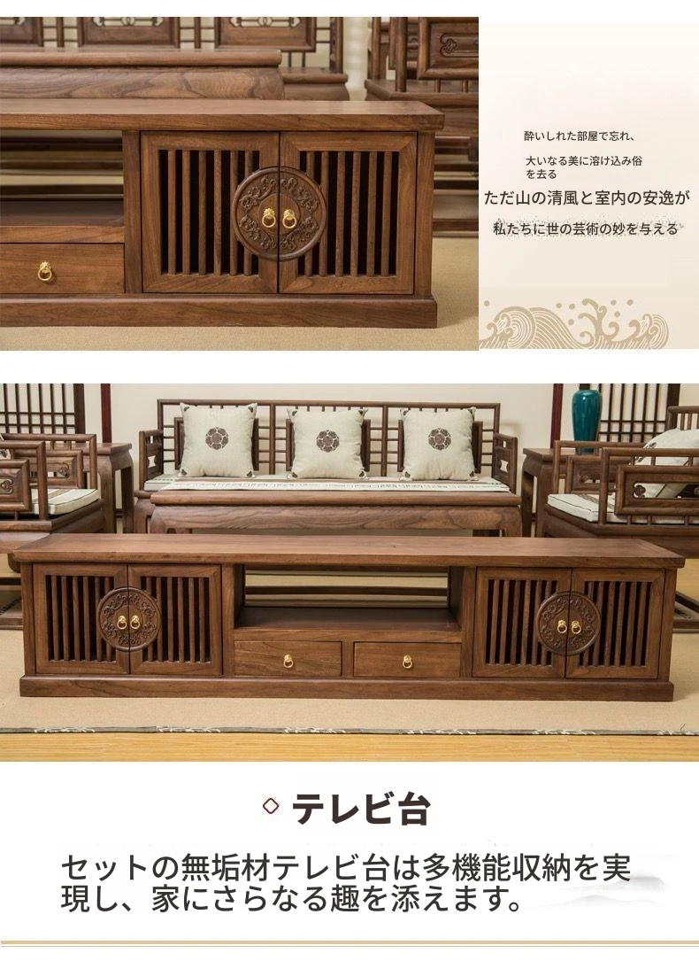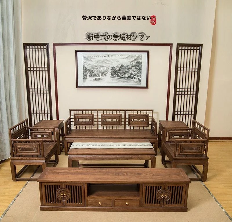 新登場!魅力溢れる新中式実木ソファセット - 老榆木製、家庭にぴったりのスタイリッシュなリビング家具、6人掛けでゆったり快適!おしゃれな空間を演出します。