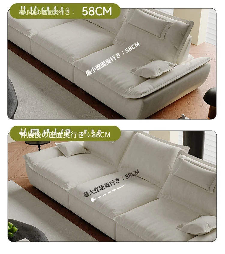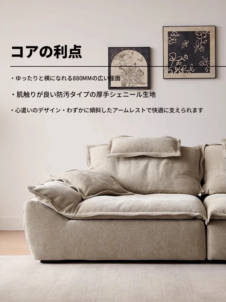 2025年新作!唐朵ラ帆船ソファー - 可動式バックレスト付きの雲のようなシェニールソファ。小型住宅にもぴったりな直排デザインで、居心地抜群!お部屋をおしゃれに彩る一品です。