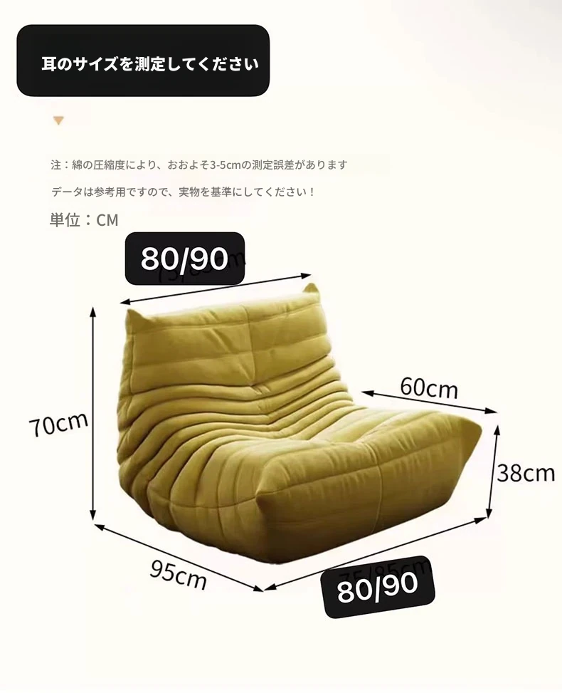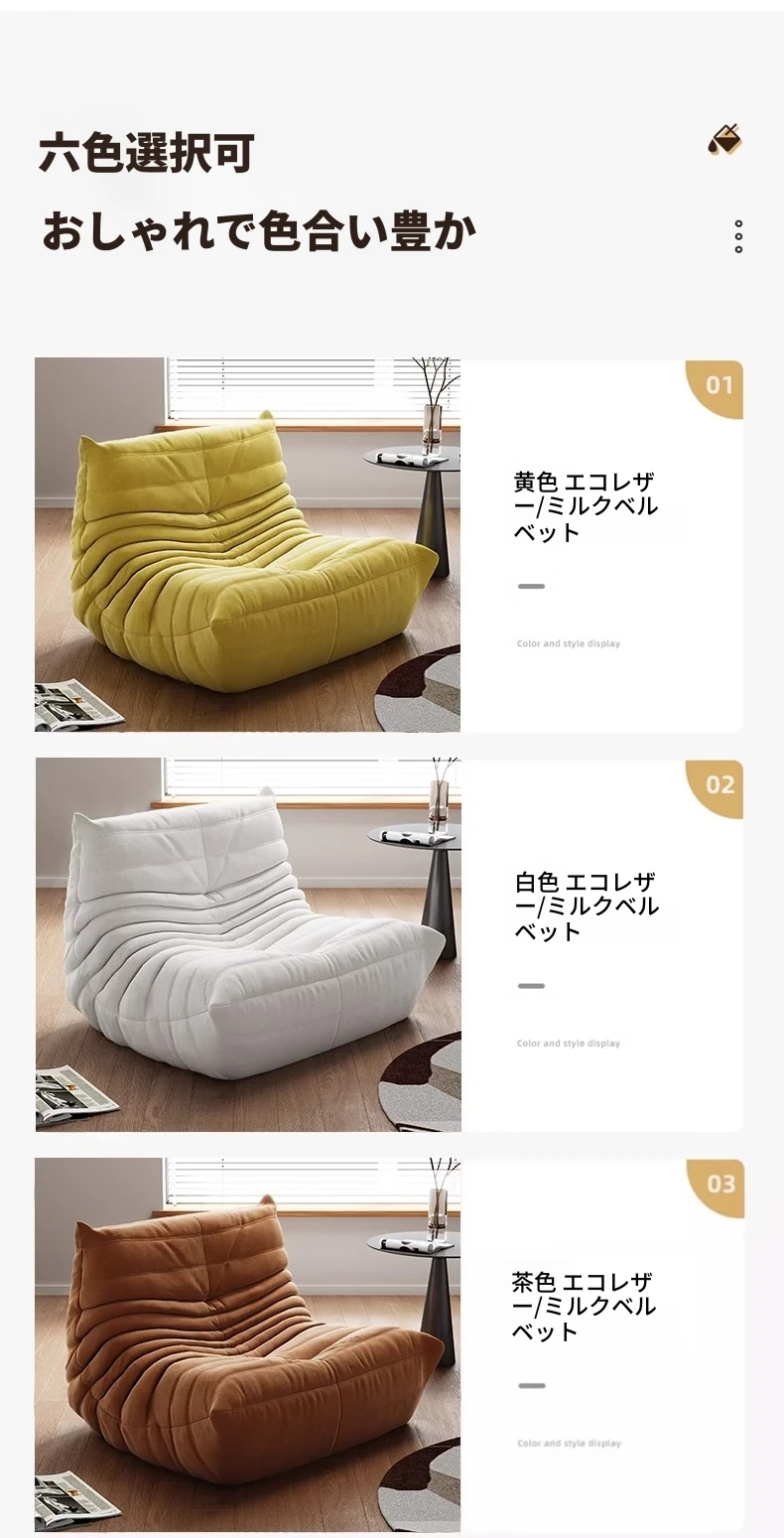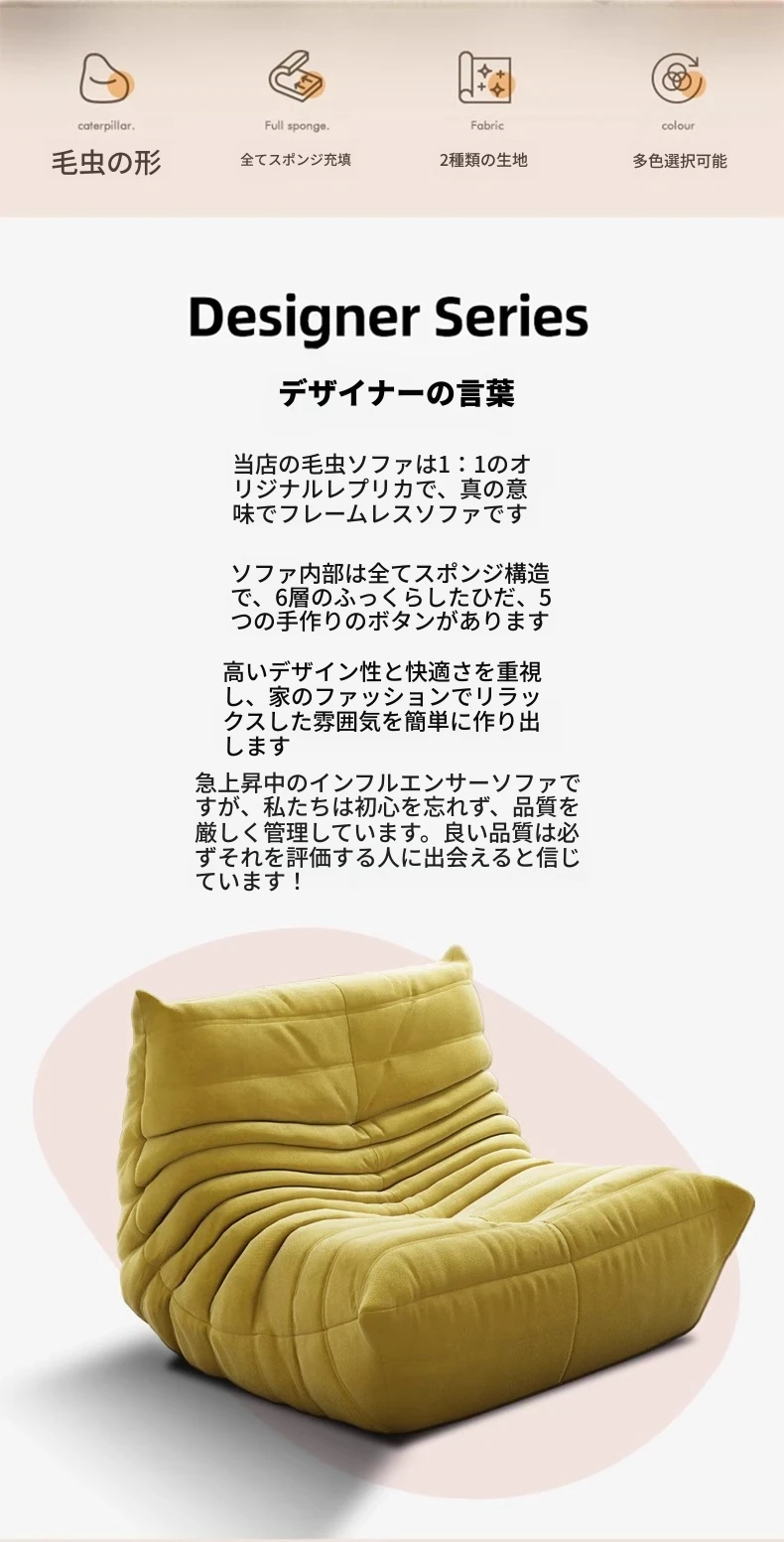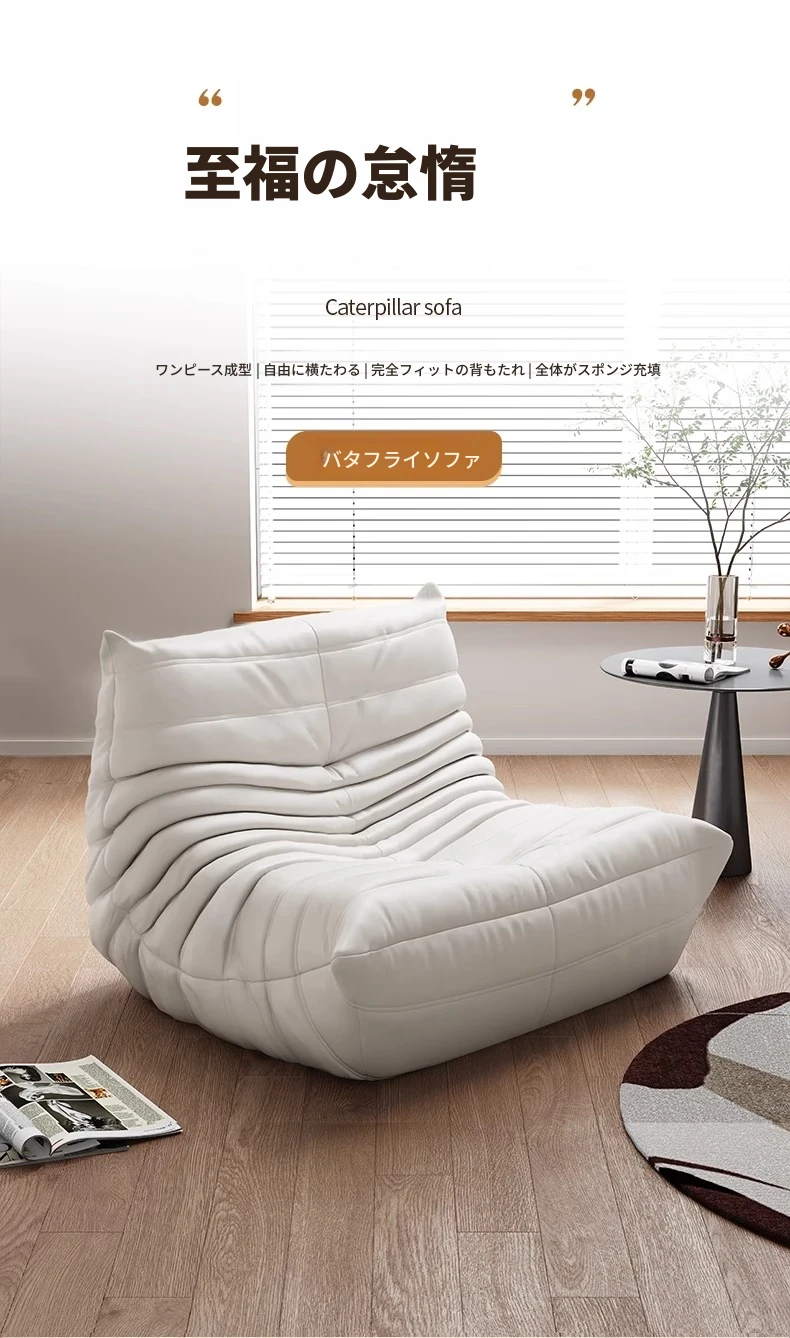 タンドラ毛虫リラックスソファ - 寝転がりもできる快適な大ソファ!バルコニーや畳スペースにぴったりな一人掛け、寝室にも最適な小さなソファです。あなたのくつろぎタイムを演出します!