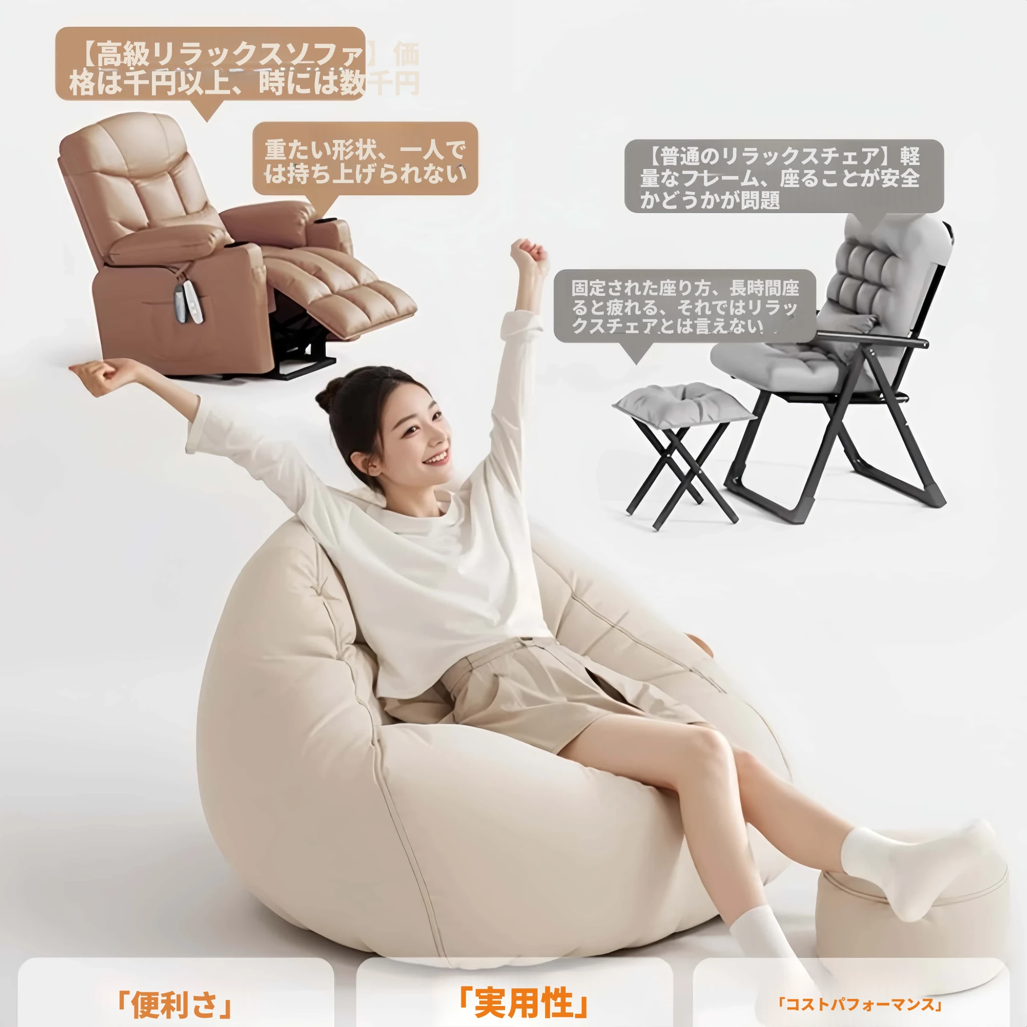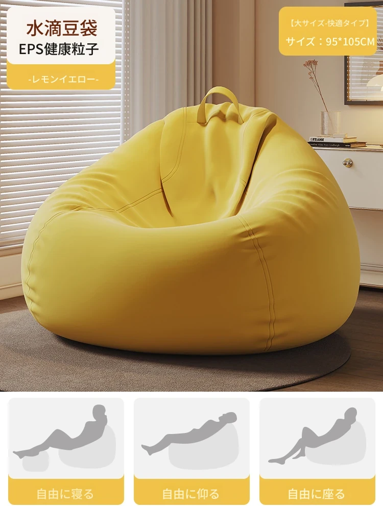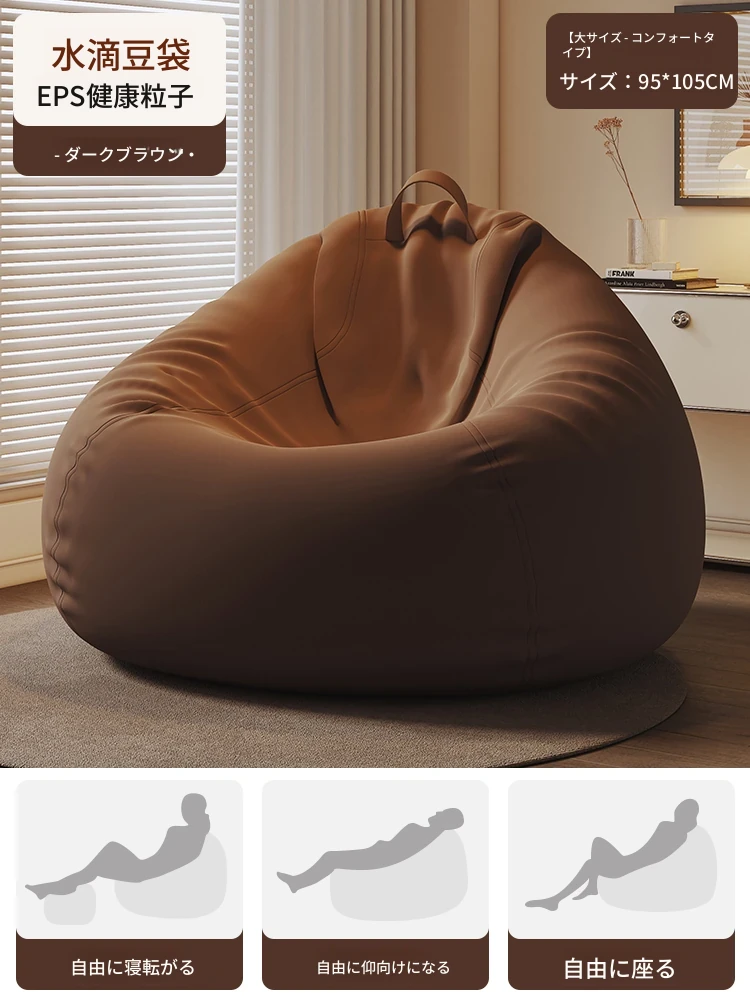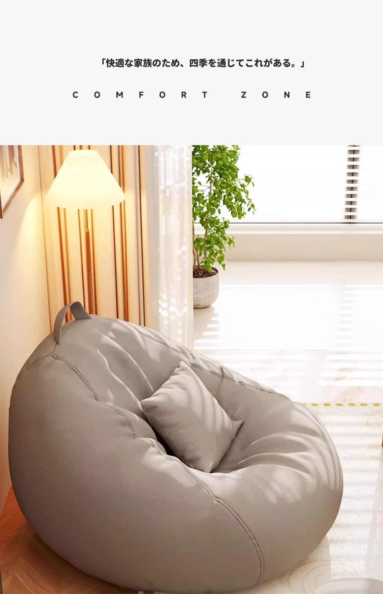 タンドラのリラックスソファ—寝転びも寝るも自由自在!一人用の怠け者椅子は、あなたのための究極の快適空間。人間用の犬小屋としても、畳スタイルの寝室にぴったりの豆袋ソファで、至福のリラックスタイムをお楽しみください!