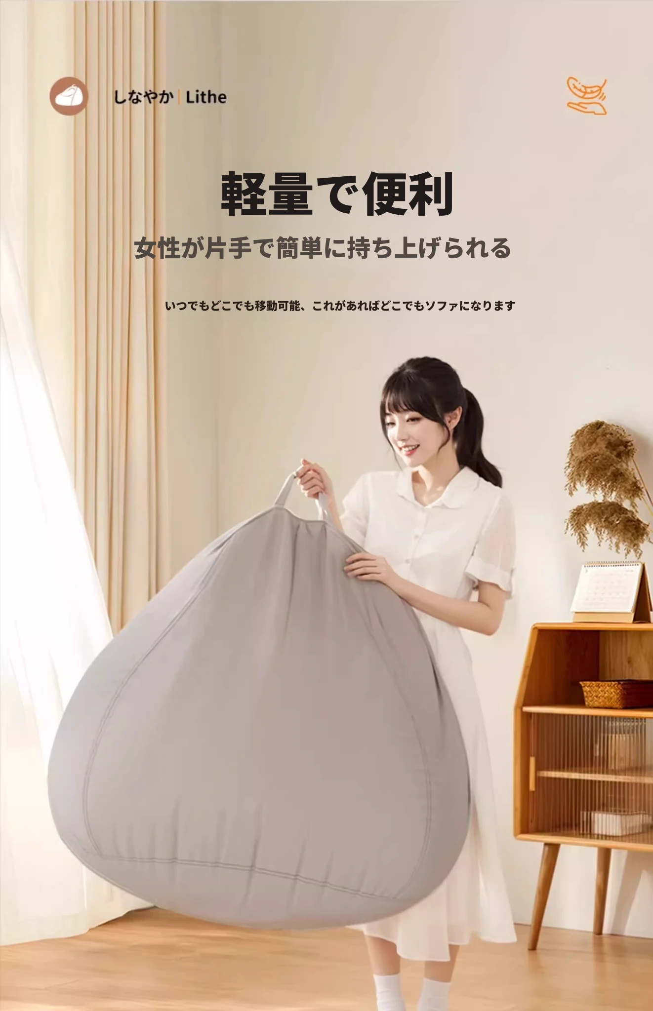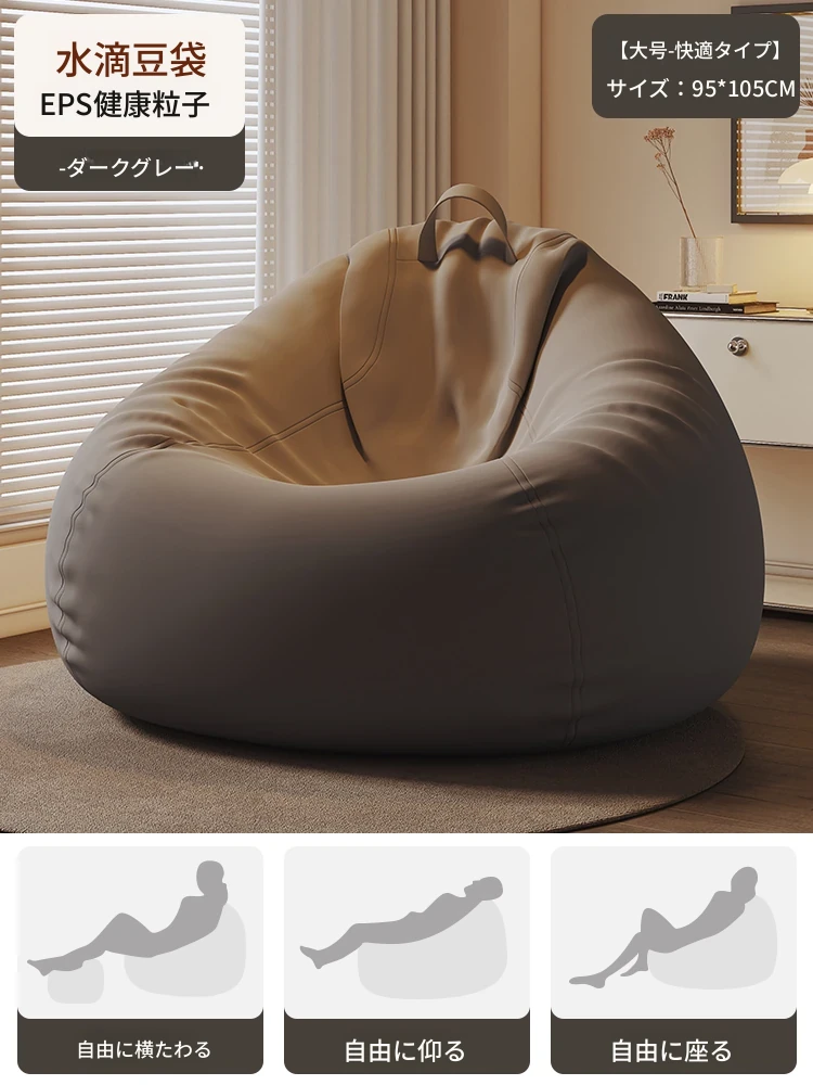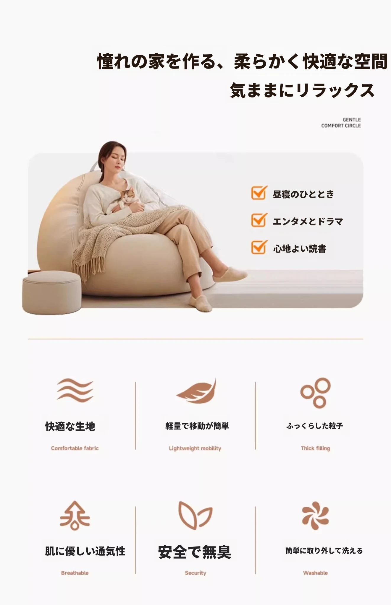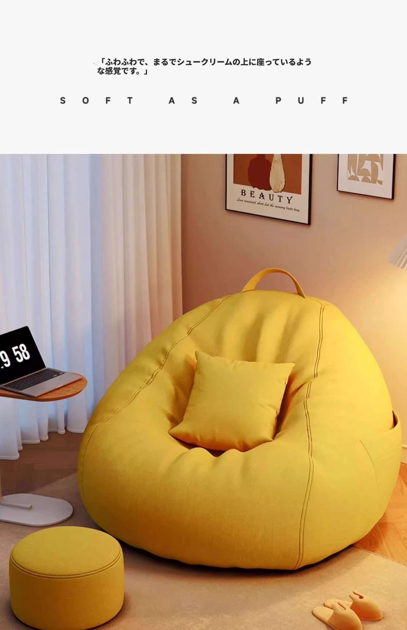 タンドラのリラックスソファ—寝転びも寝るも自由自在!一人用の怠け者椅子は、あなたのための究極の快適空間。人間用の犬小屋としても、畳スタイルの寝室にぴったりの豆袋ソファで、至福のリラックスタイムをお楽しみください!