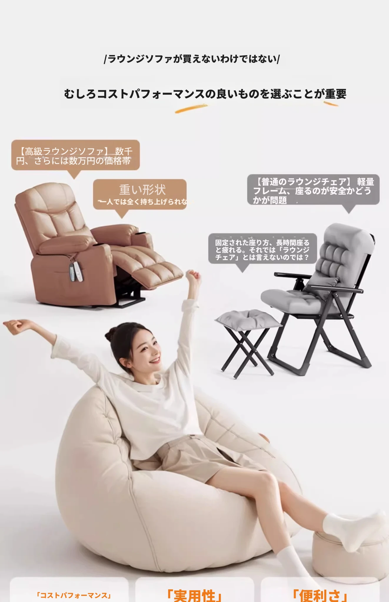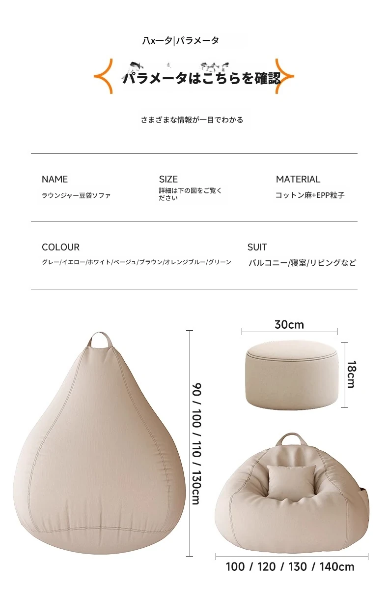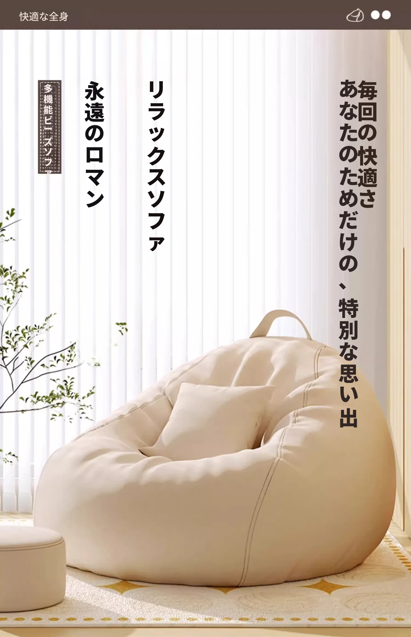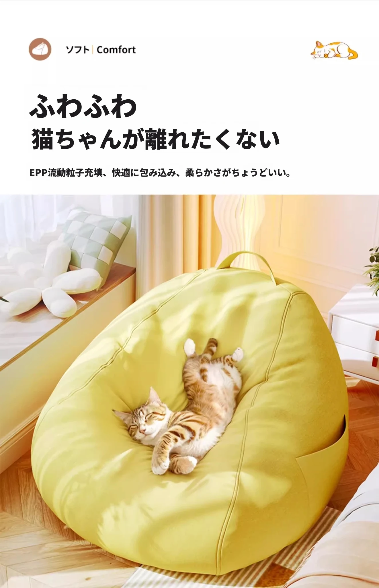 タンドラのリラックスソファ—寝転びも寝るも自由自在!一人用の怠け者椅子は、あなたのための究極の快適空間。人間用の犬小屋としても、畳スタイルの寝室にぴったりの豆袋ソファで、至福のリラックスタイムをお楽しみください!
