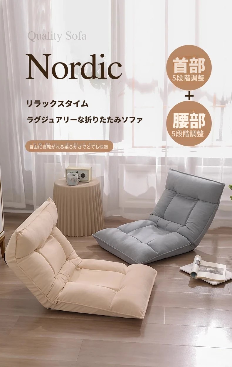唐朵ラ・リラックスソファ - 寝室や窓辺にピッタリ!折りたたみ可能な和風一人用ソファ。快適な背もたれで、座るだけでなく横になることもできる、あなたの癒しの空間を演出します!