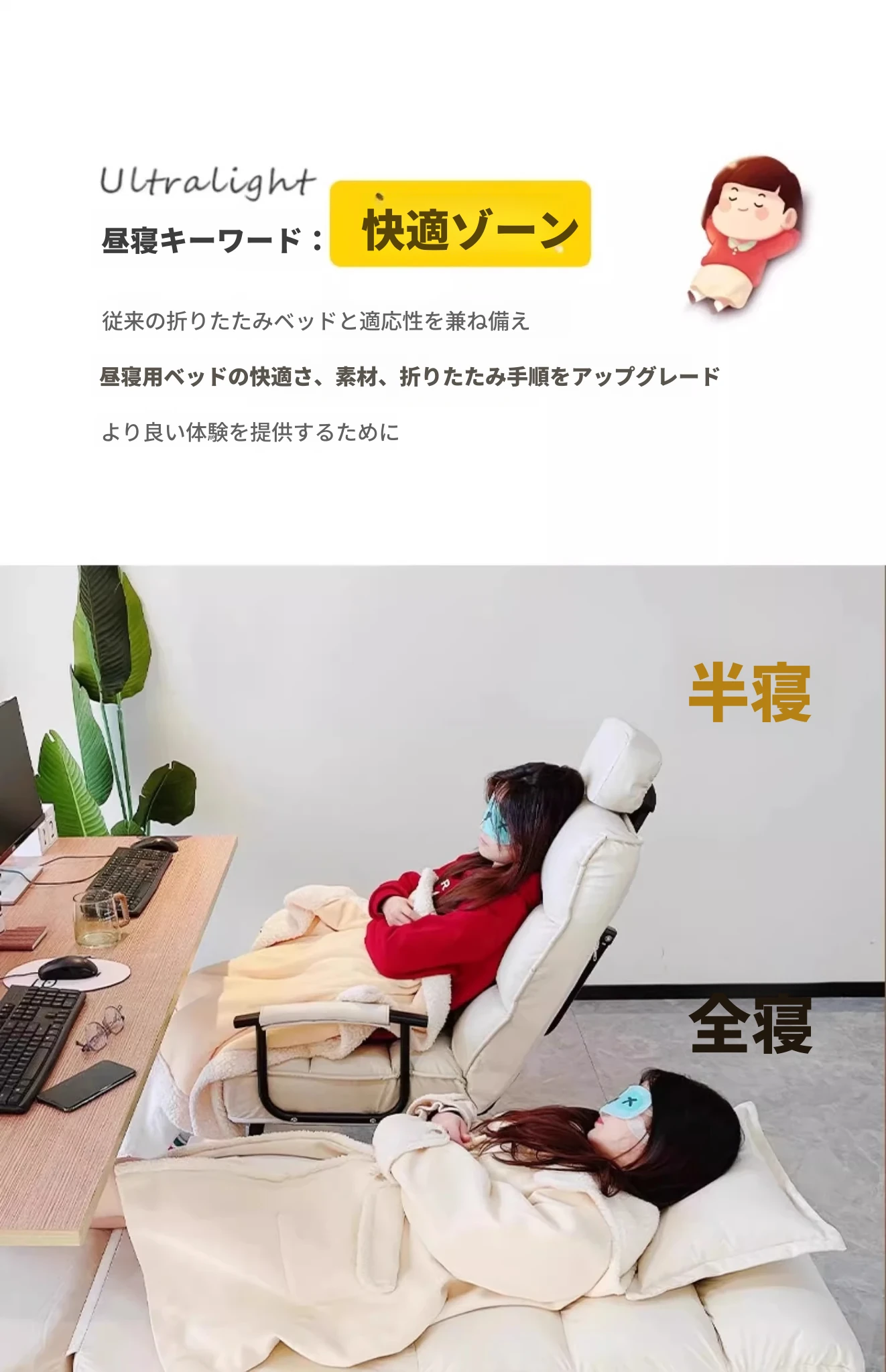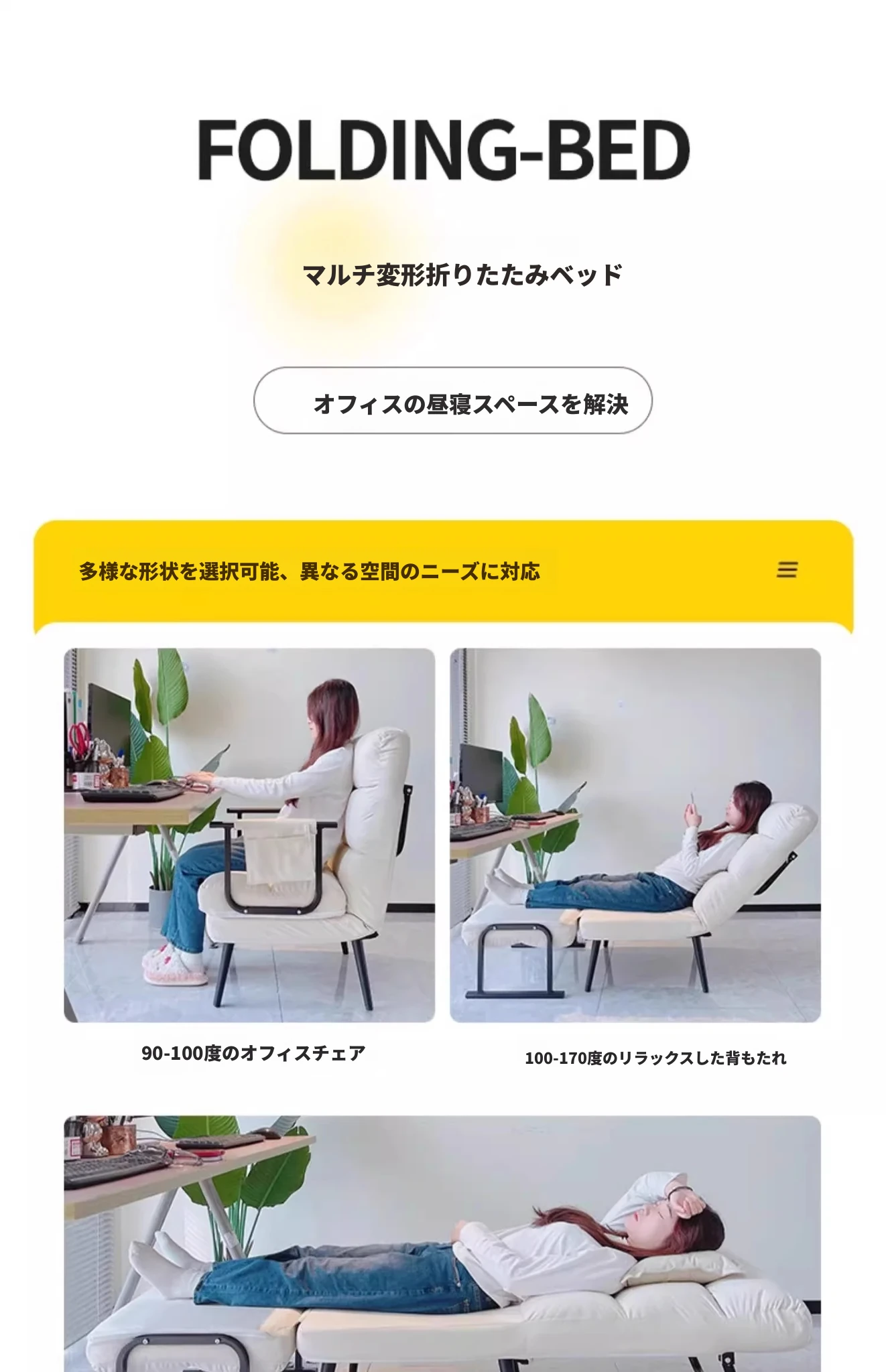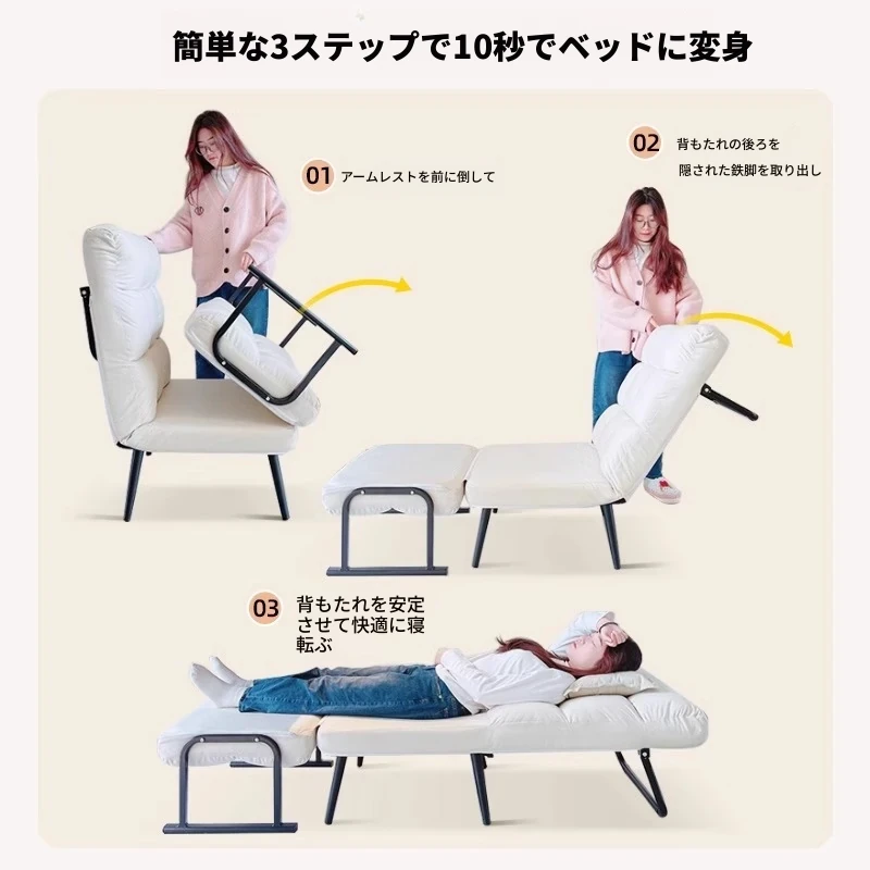 タンドラのリクライニングソファー|折りたたみ式・オフィスでの昼寝や休憩に最適な新型2wayソファベッド|快適なリラックス体験をあなたに!