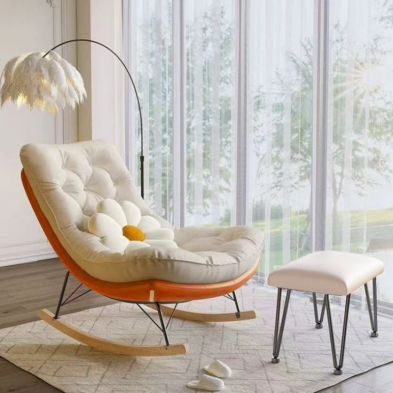 アイマスオレンジハニカムロッキングチェア(単椅子+フットレスト+白い花のクッション) アイマスオレンジハニカムロッキングチェア(単椅子+フットレスト+白い花のクッション)