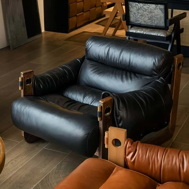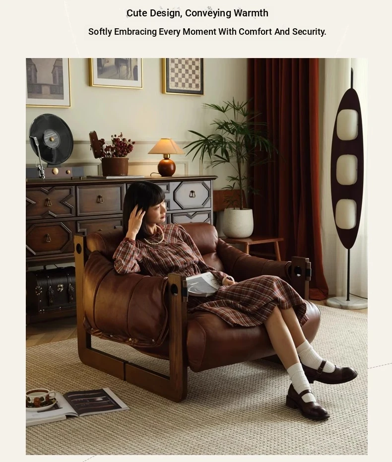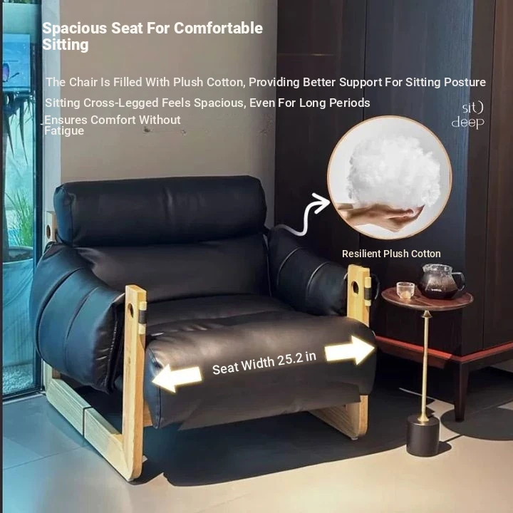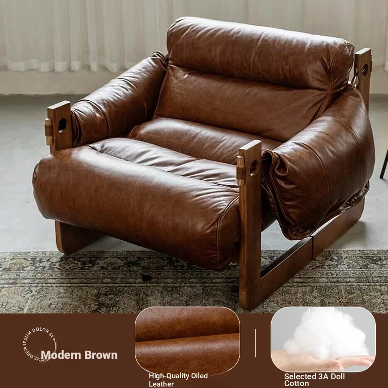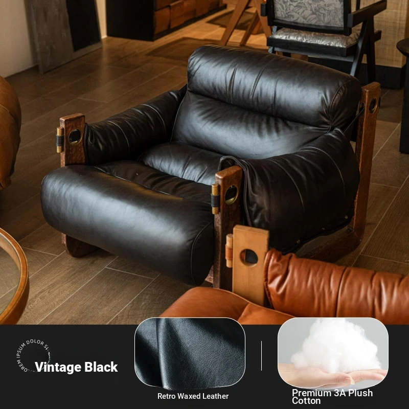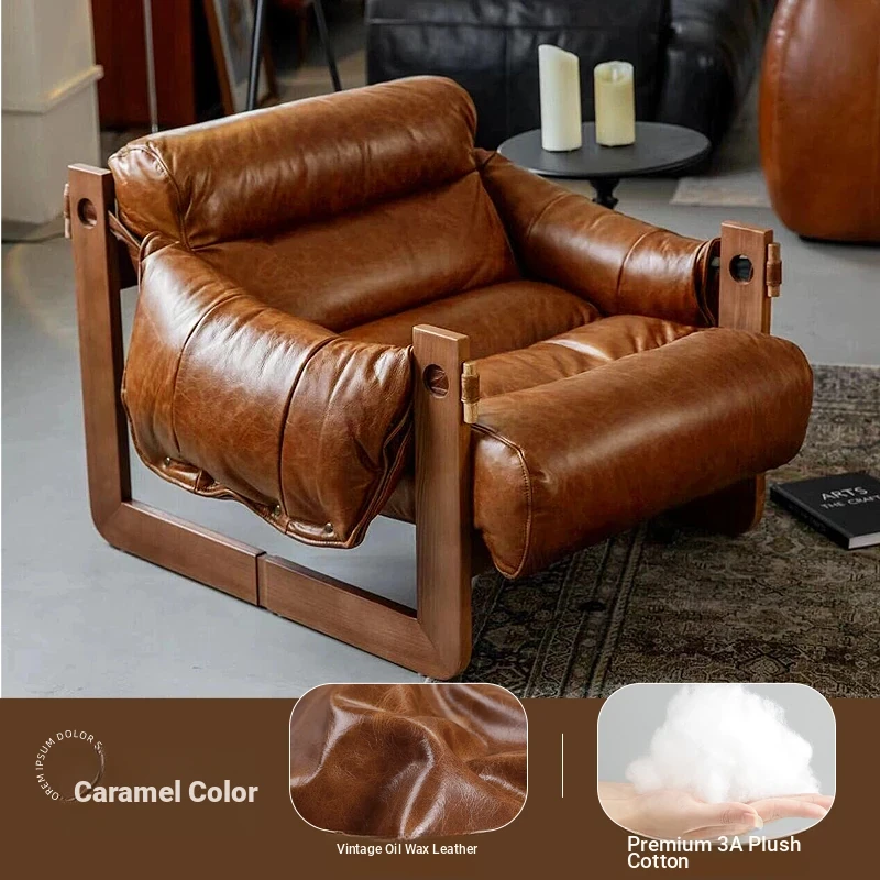 Tangdora Single Sofa Chair - Vintage Jersey Island Style Wax Leather Lounge Chair with Solid Wood Frame, Perfect for Relaxation and Leisure