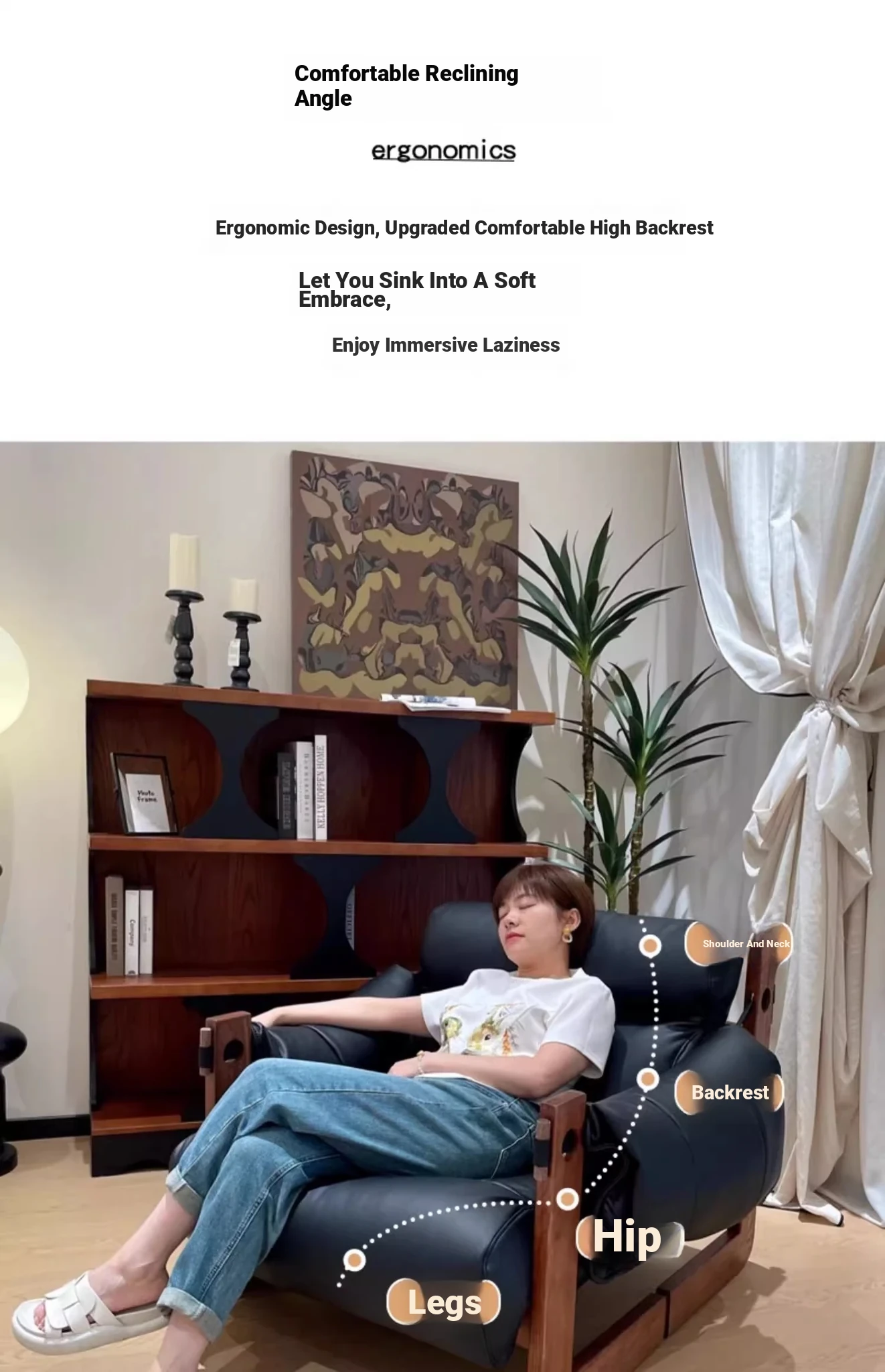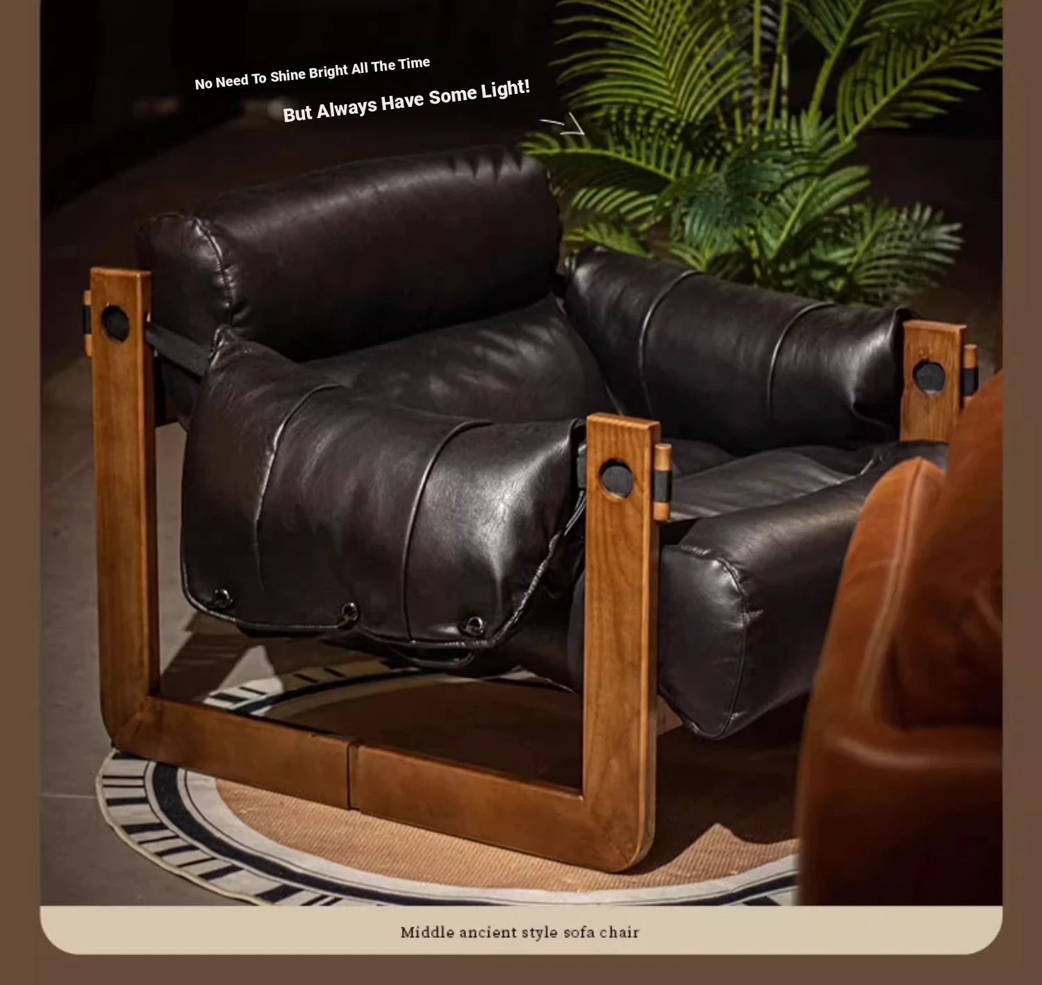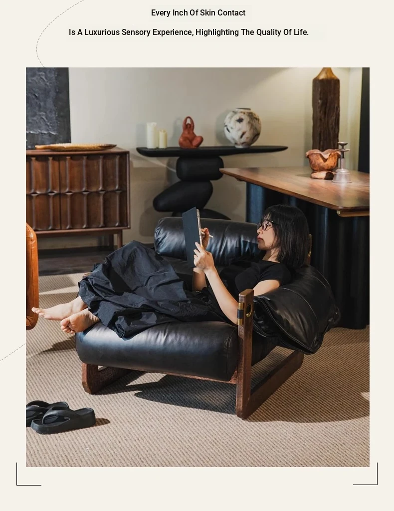 Tangdora Single Sofa Chair - Vintage Jersey Island Style Wax Leather Lounge Chair with Solid Wood Frame, Perfect for Relaxation and Leisure