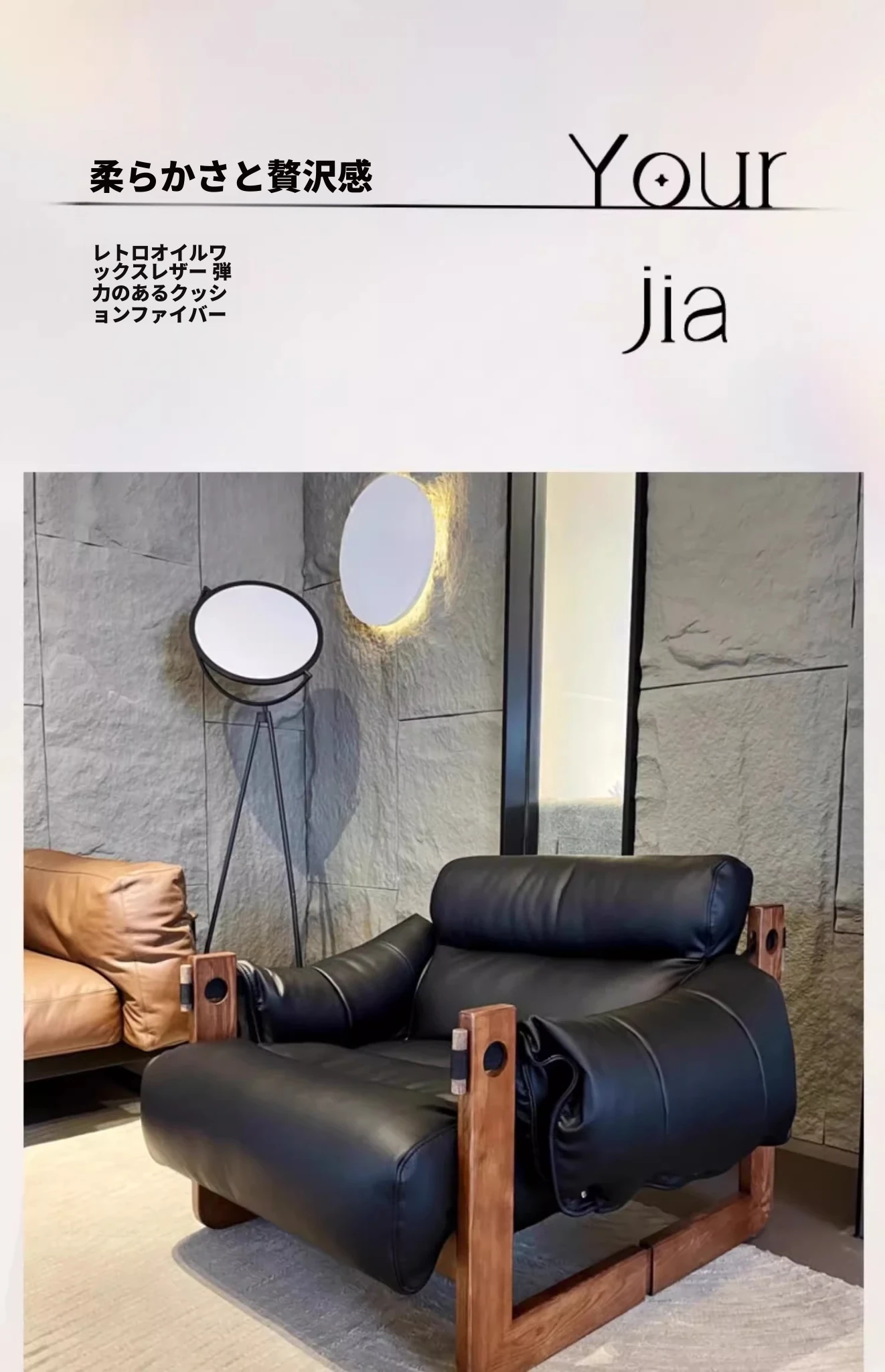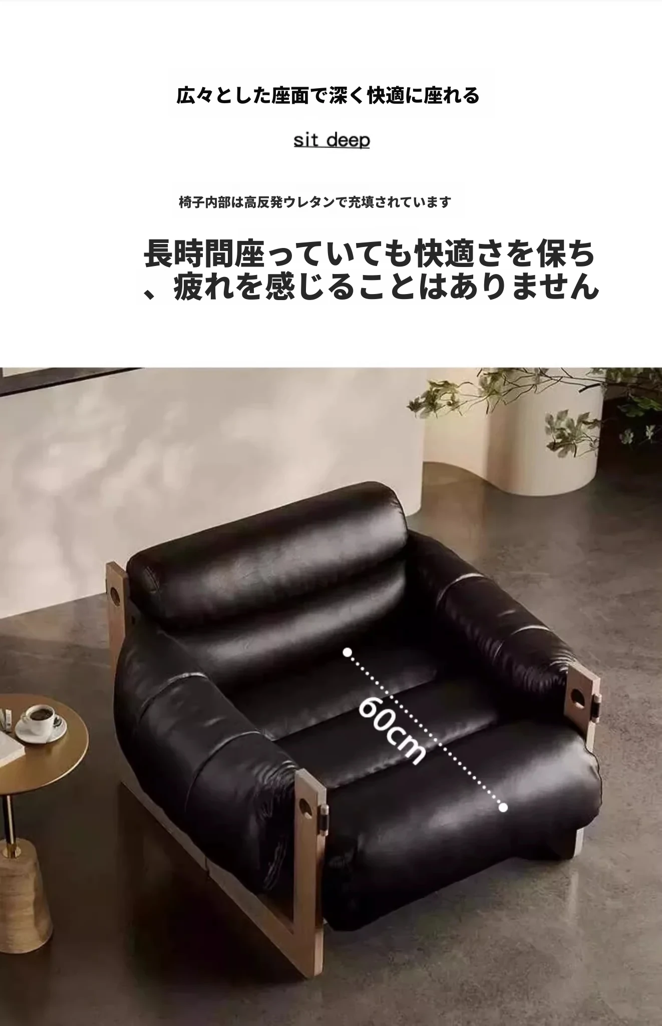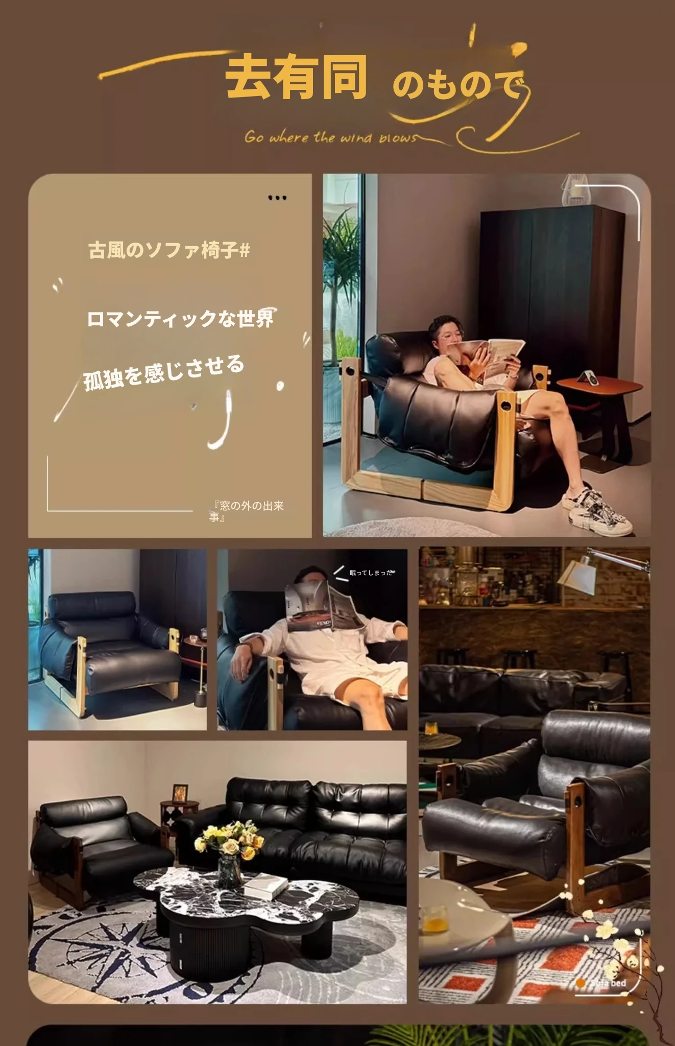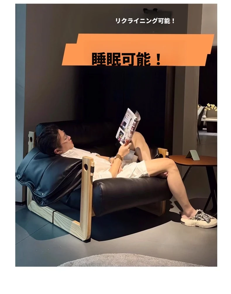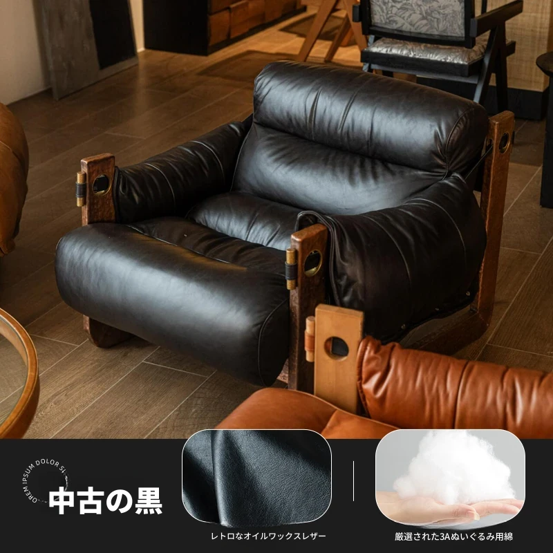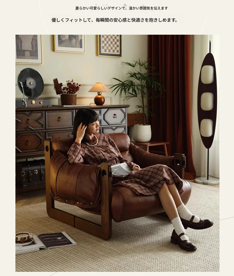 タンドラ単人ソファー椅子 ゼファー島アンティーク風オイルワックスレザーソファー 木製リクライニングチェア リラックスできるくつろぎの一脚!