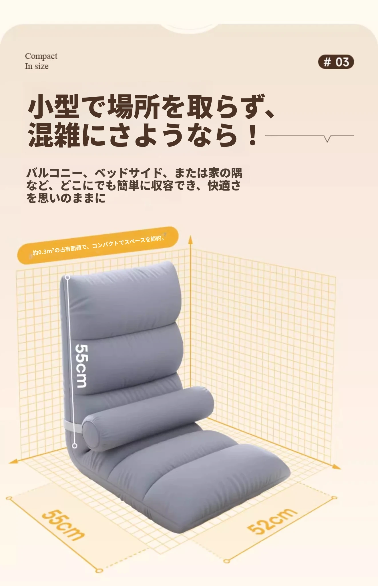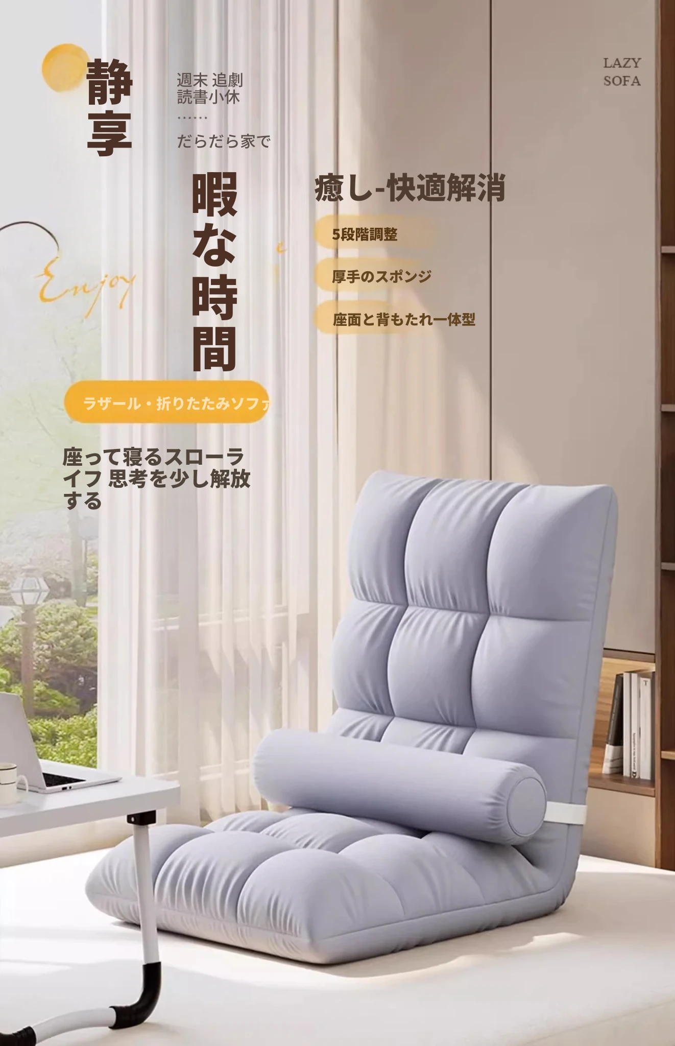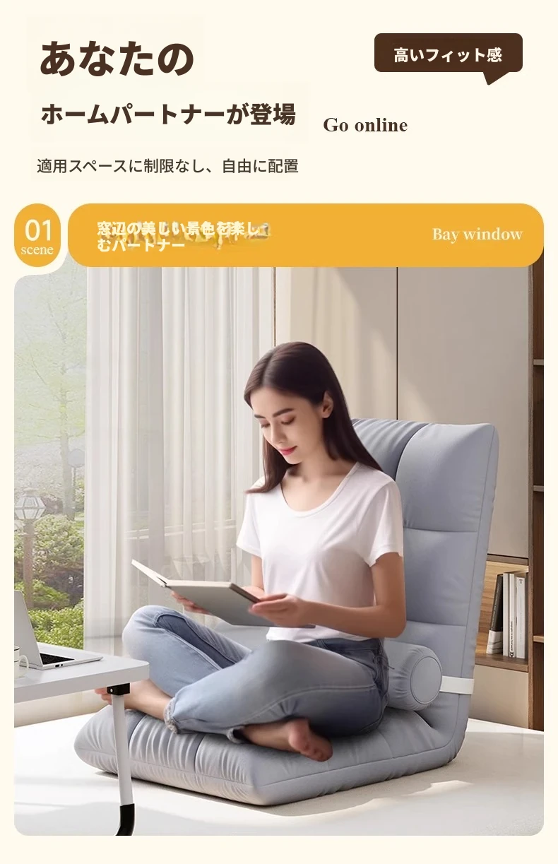 唐朵ラのリラックスソファ|一人用ベッドルームの背もたれ付き座椅子|畳や窓辺にぴったり!コンパクトで折りたたみ可能なデザインで、寮生活や限られたスペースに最適です。快適なひとときをお楽しみください!