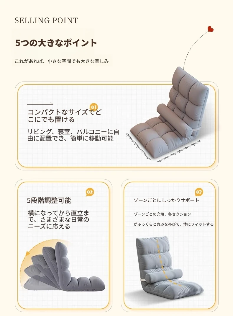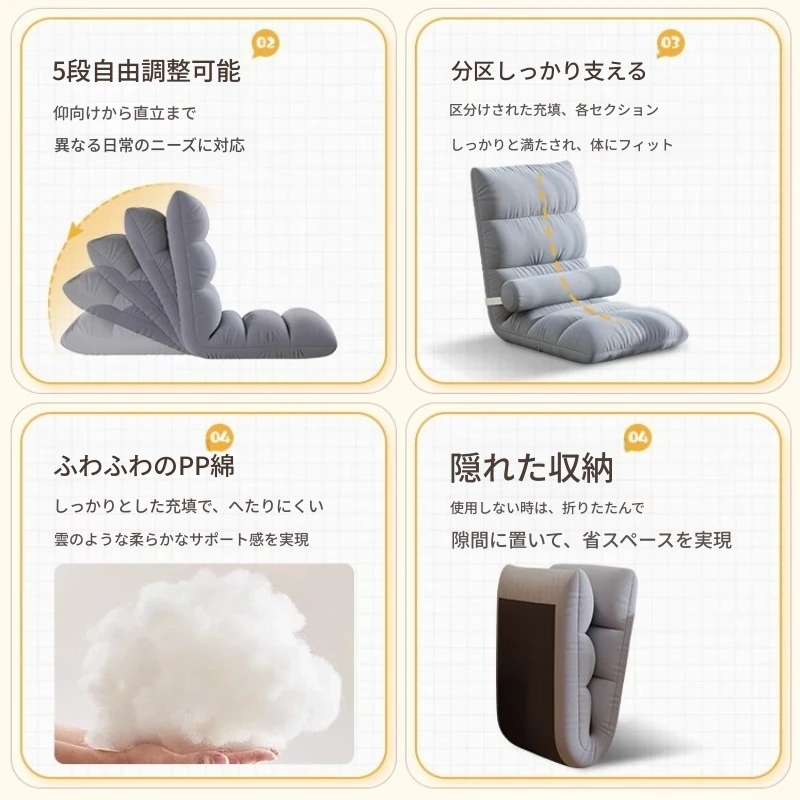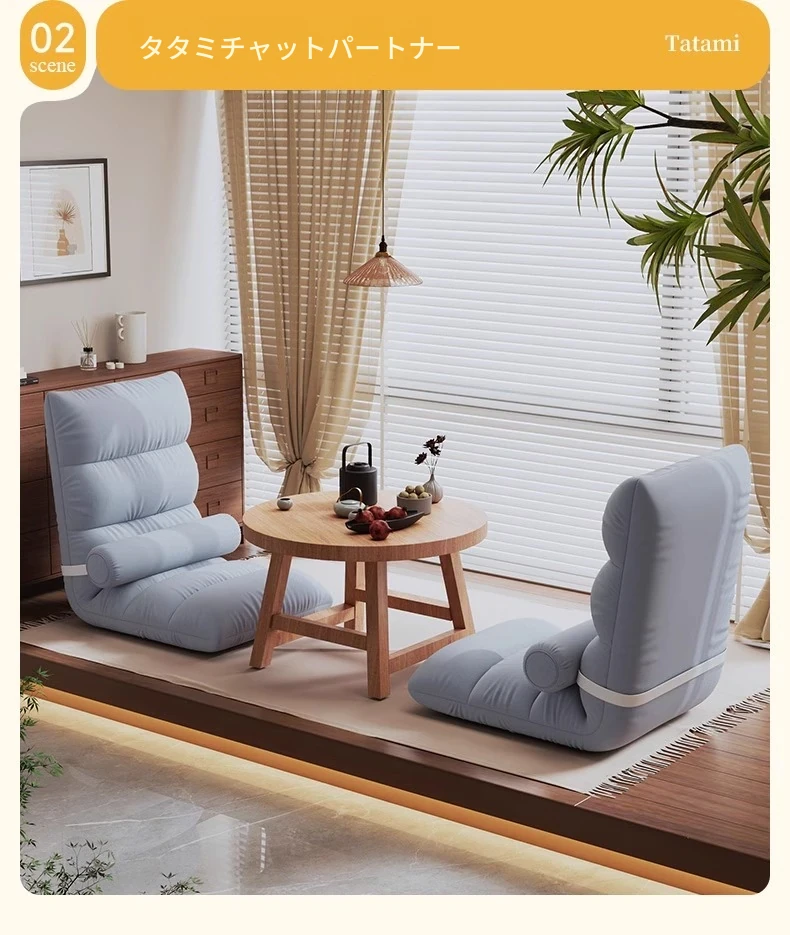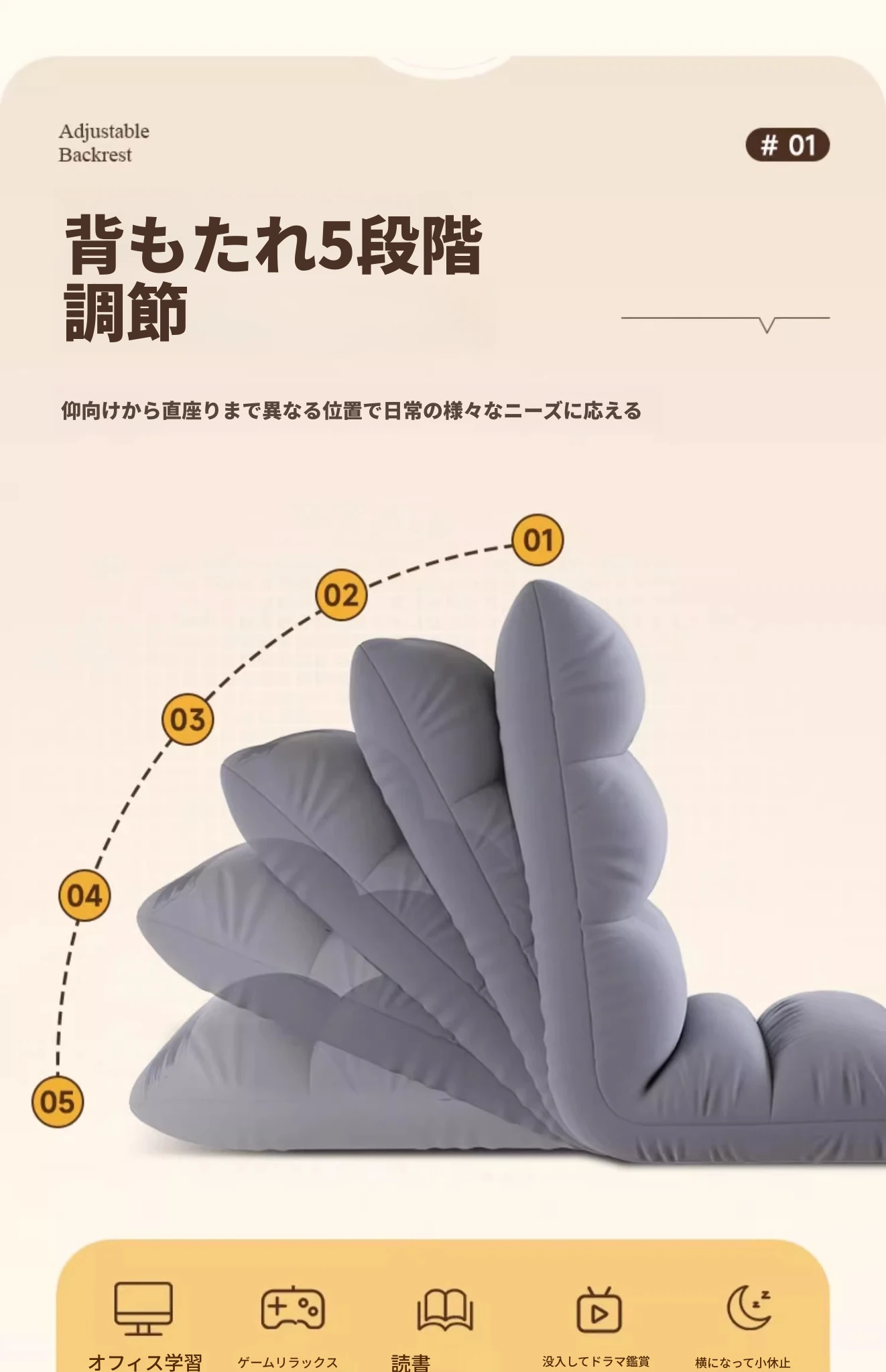 唐朵ラのリラックスソファ|一人用ベッドルームの背もたれ付き座椅子|畳や窓辺にぴったり!コンパクトで折りたたみ可能なデザインで、寮生活や限られたスペースに最適です。快適なひとときをお楽しみください!