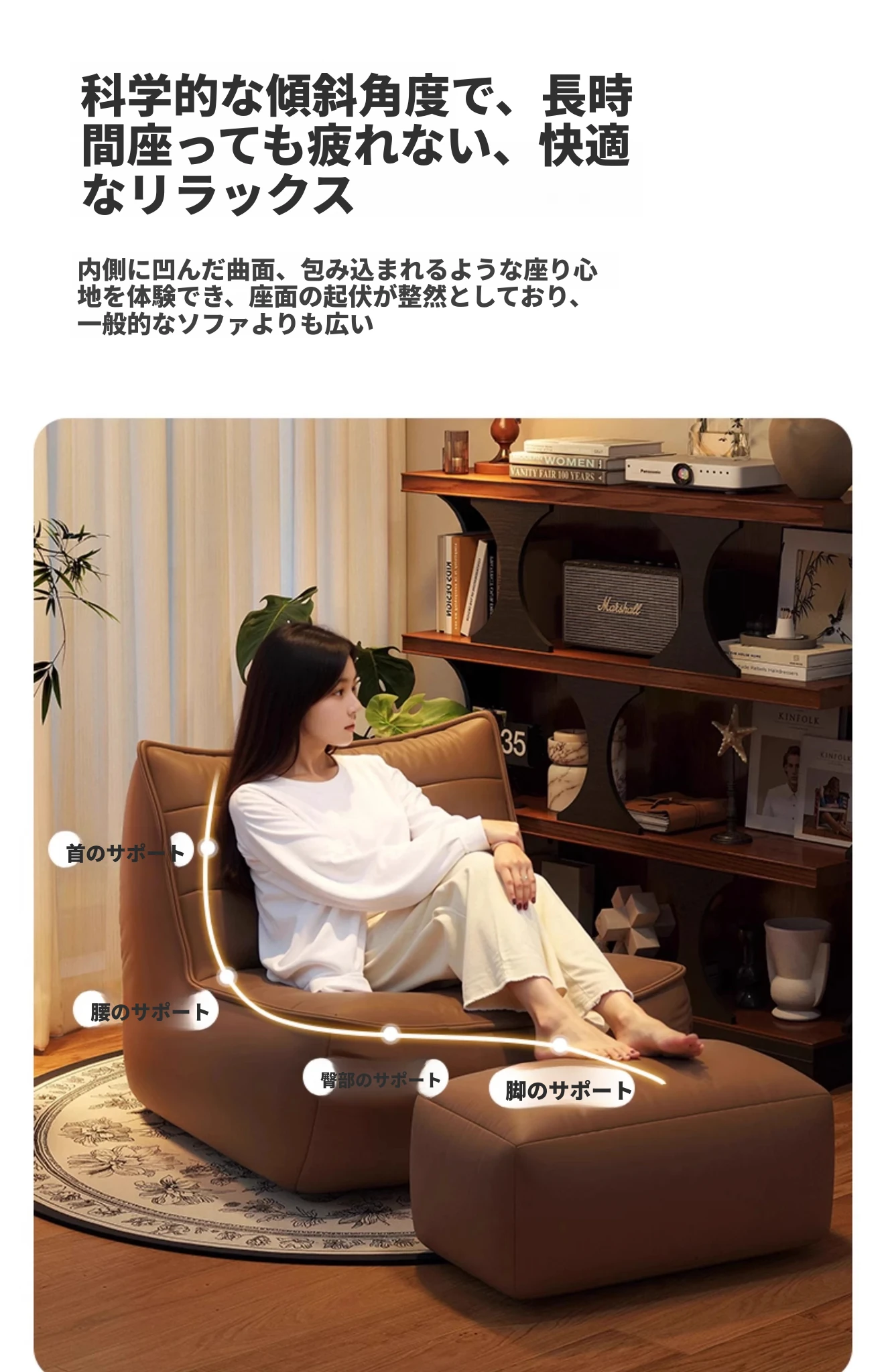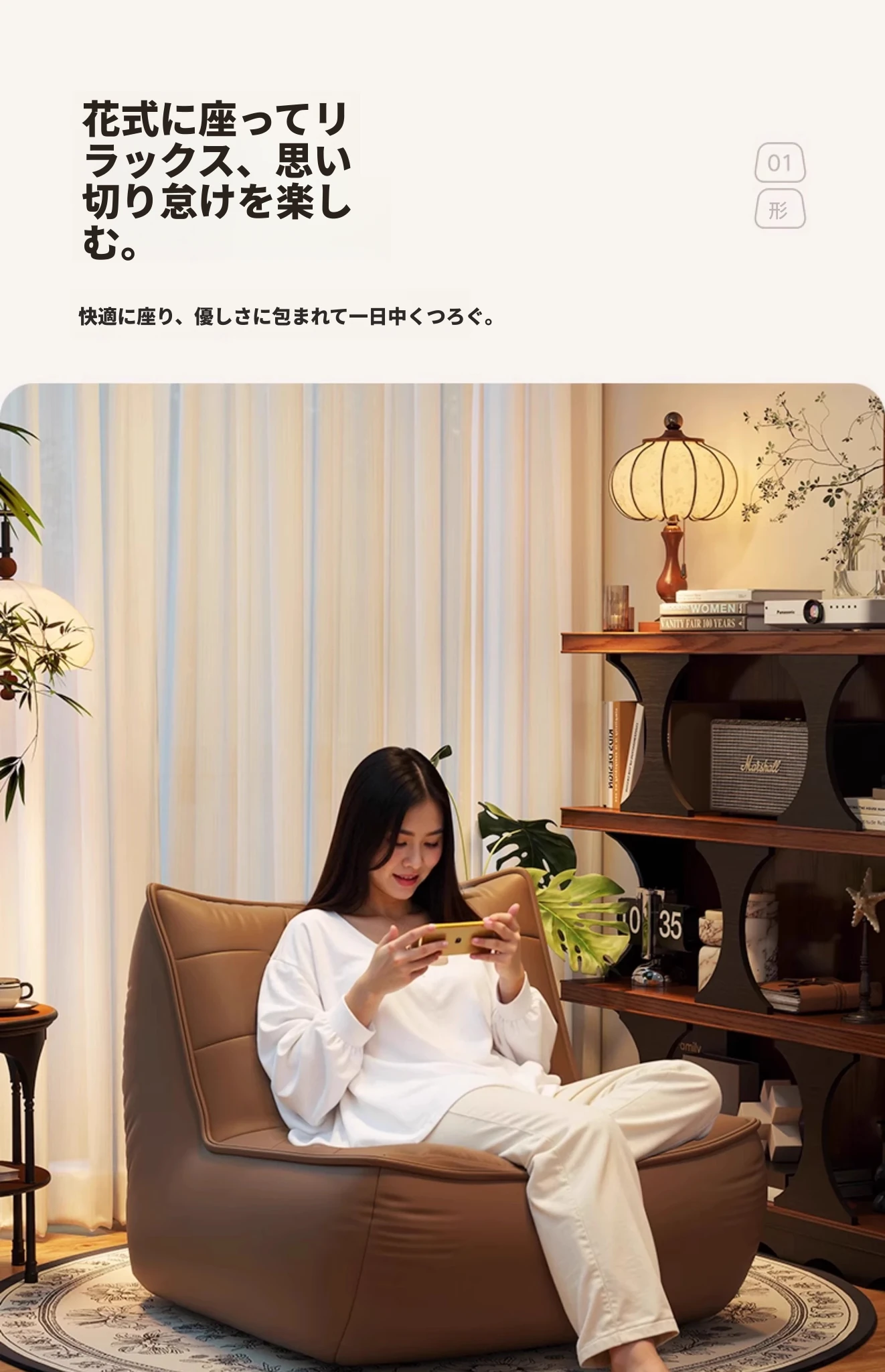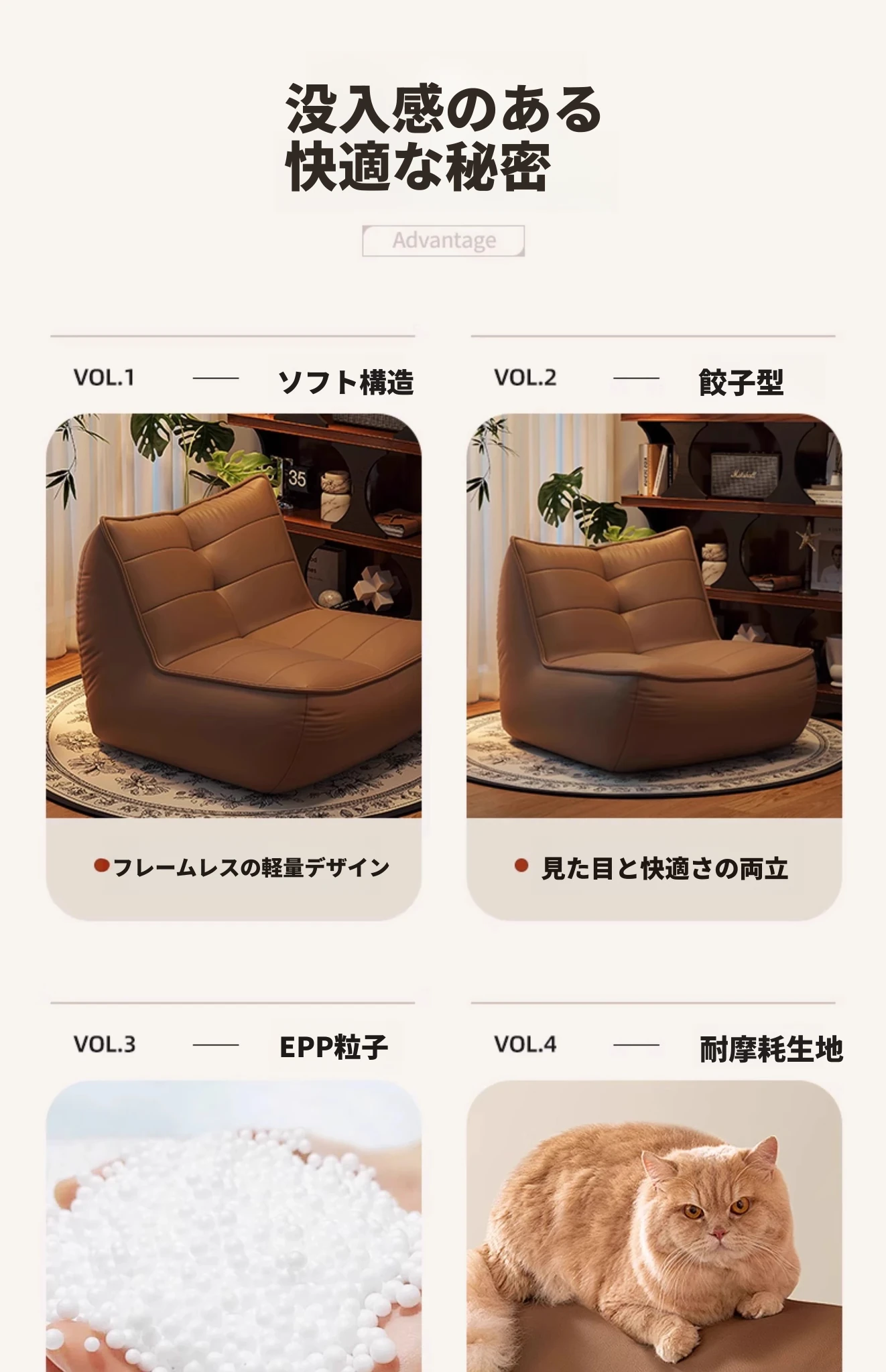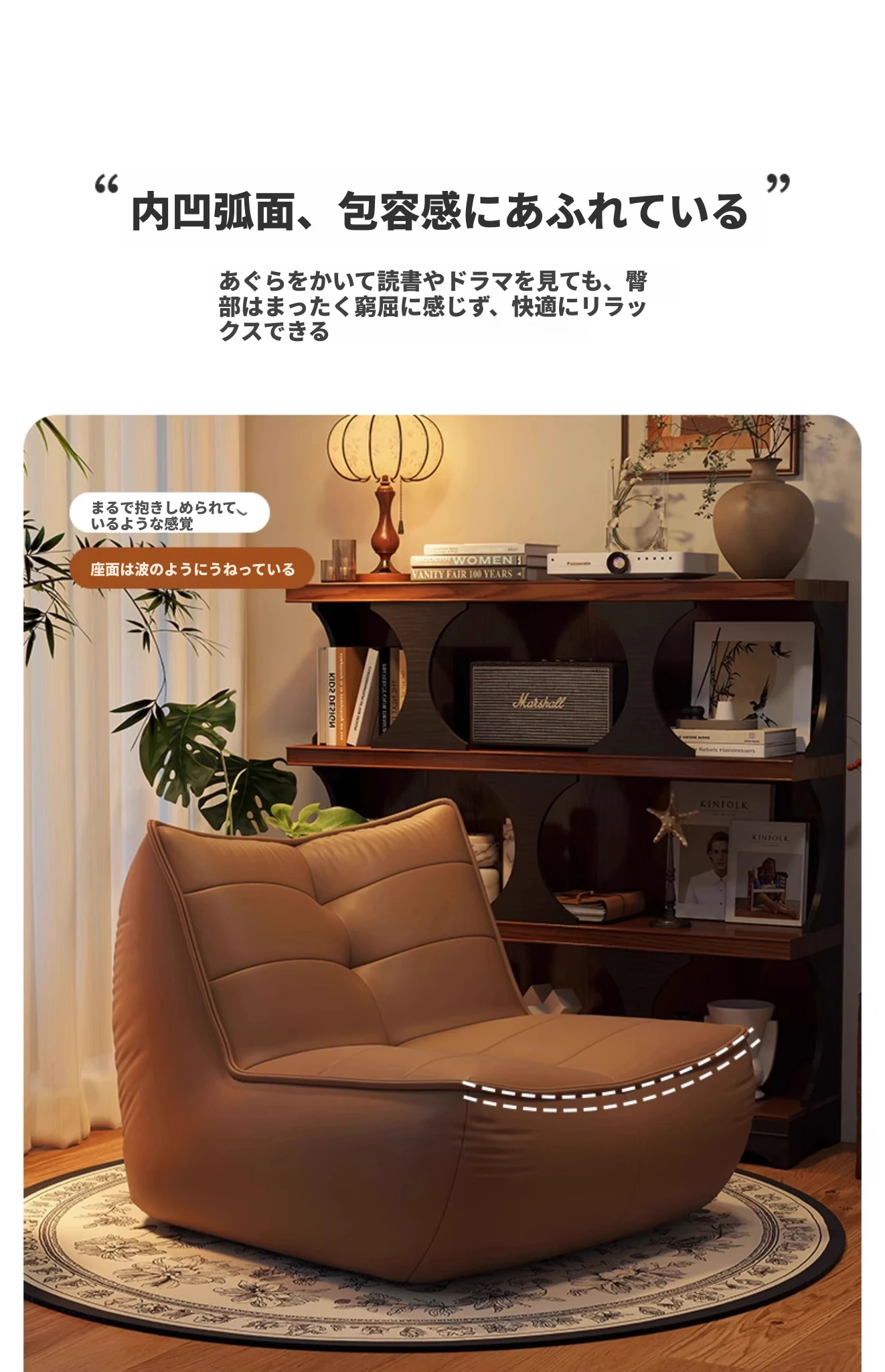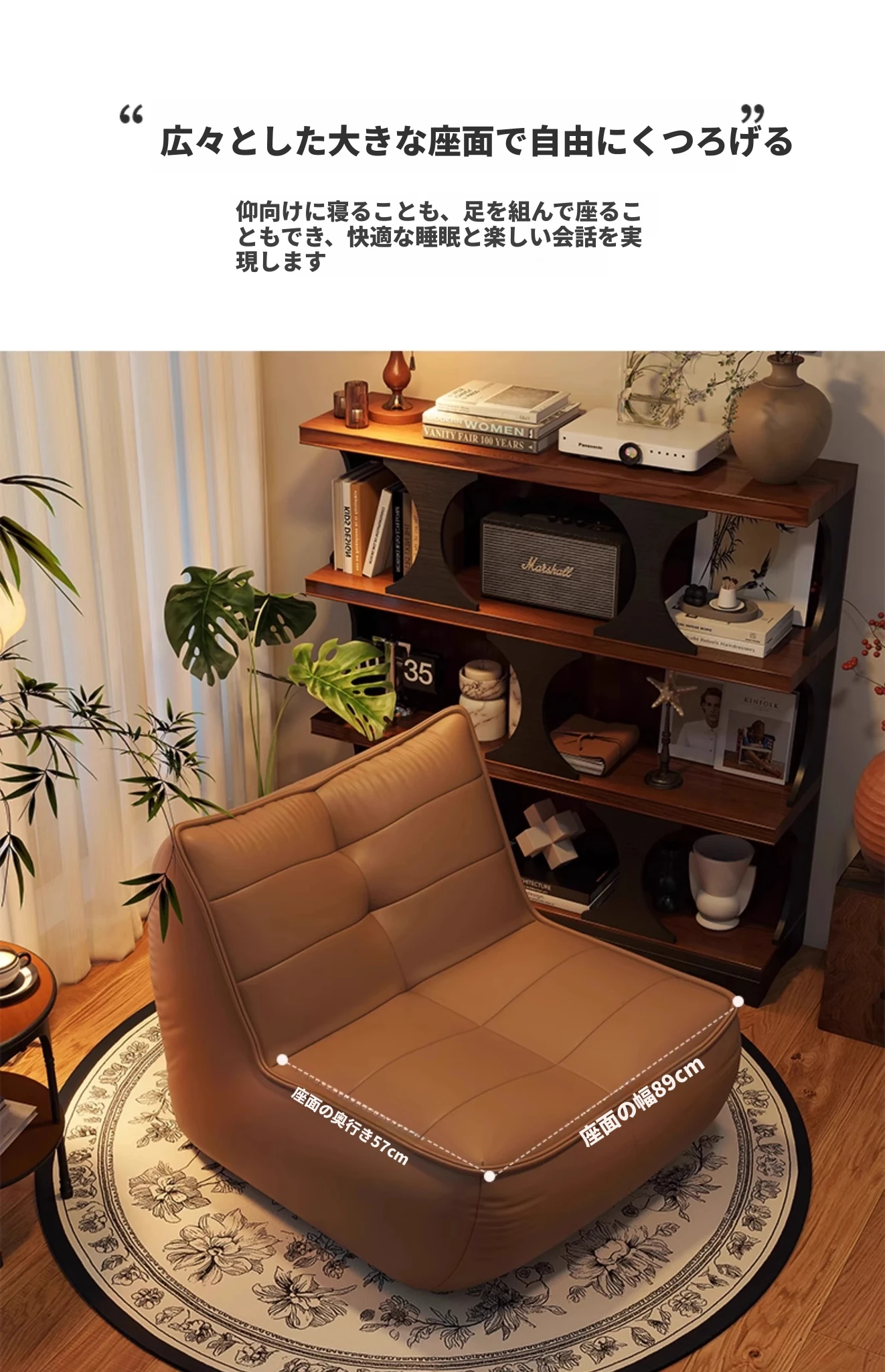 タンドラのリラックスソファ - 寝転んでも快適、寝室やリビングにぴったりのビンテージスタイルのビーズソファ。小スペースでも大活躍!おしゃれで機能的な癒しのひとときを。