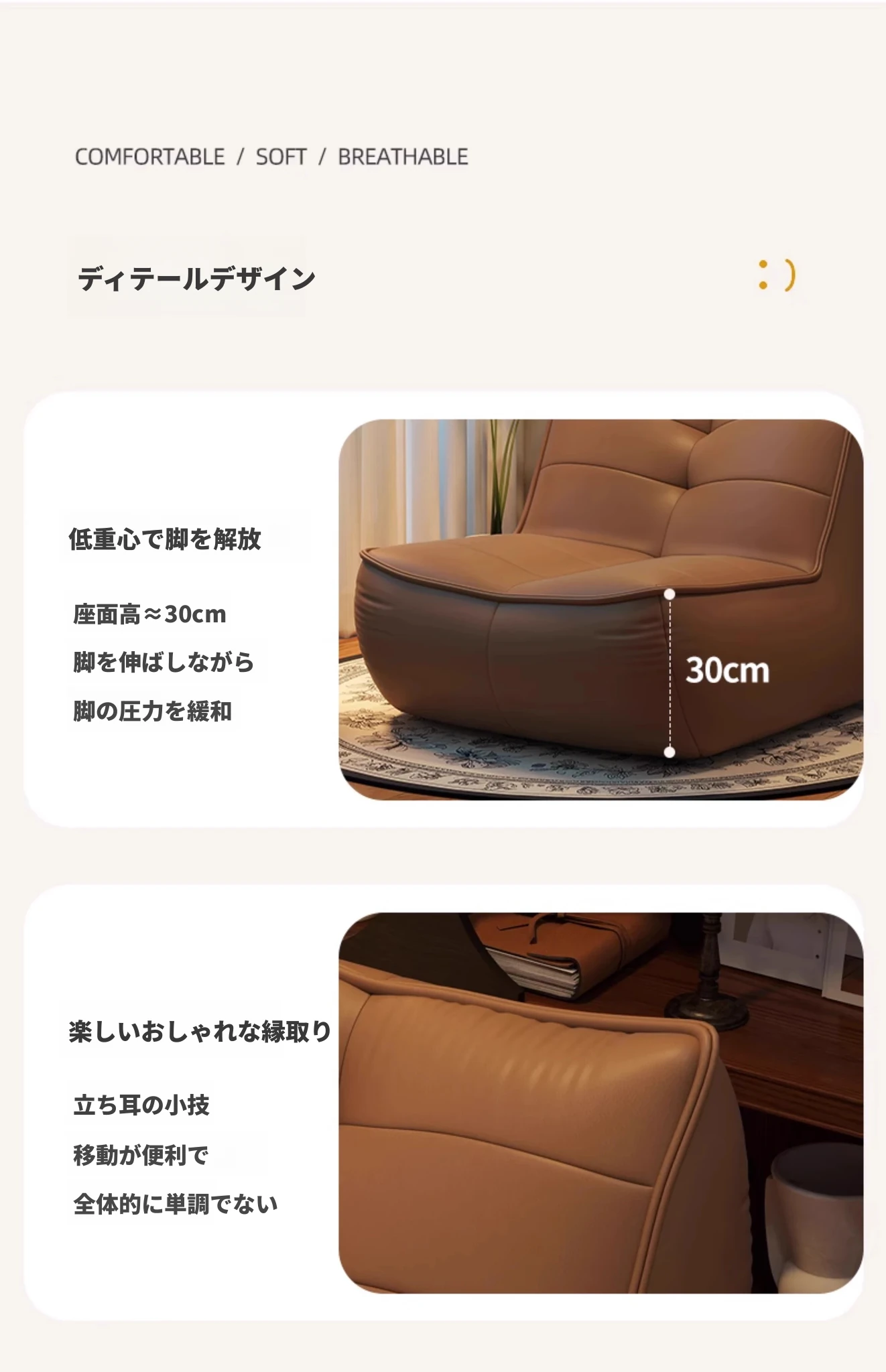 アイボリー【耐磨き猫爪皮】+フットレスト アイボリー【耐磨き猫爪皮】+フットレスト