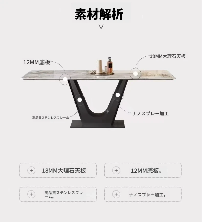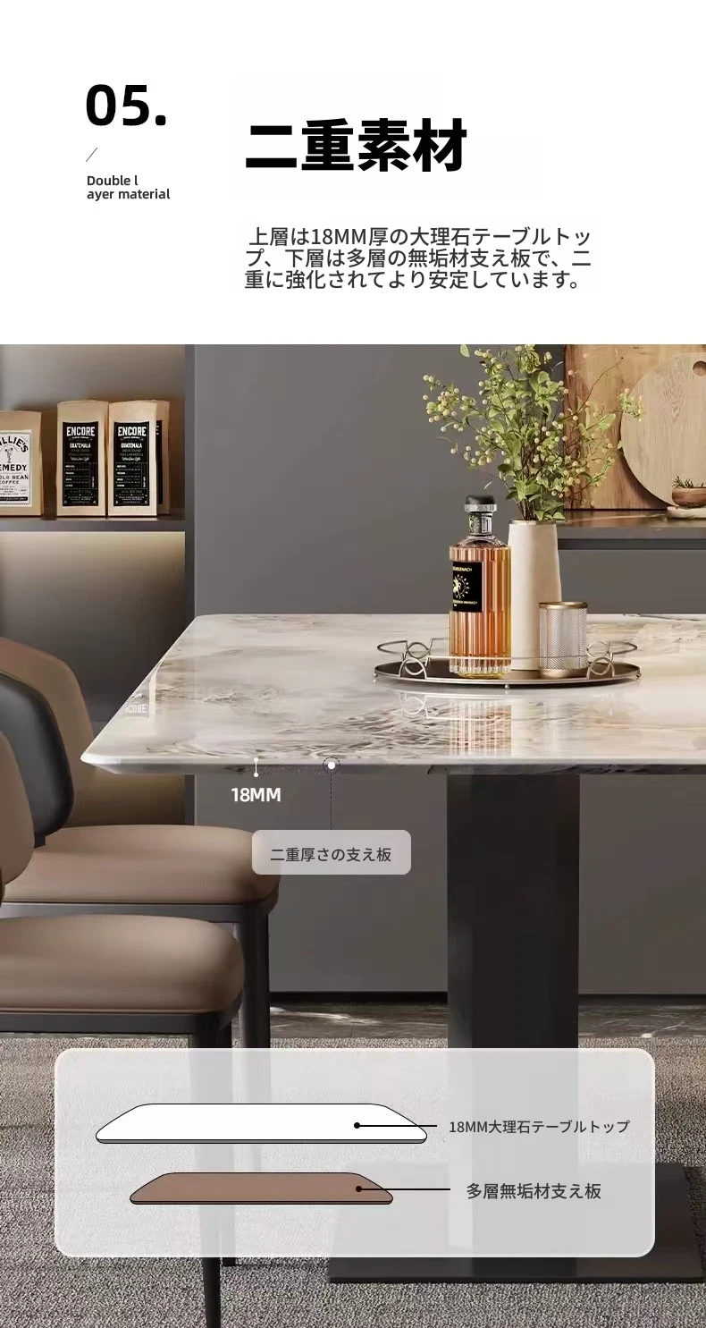 1.8m天然大理石ダイニングテーブル+ダイニングチェア*4 1.8m天然大理石ダイニングテーブル+ダイニングチェア*4