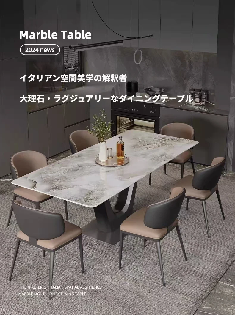 1.4m天然大理石ダイニングテーブル+ダイニングチェア*6 1.4m天然大理石ダイニングテーブル+ダイニングチェア*6