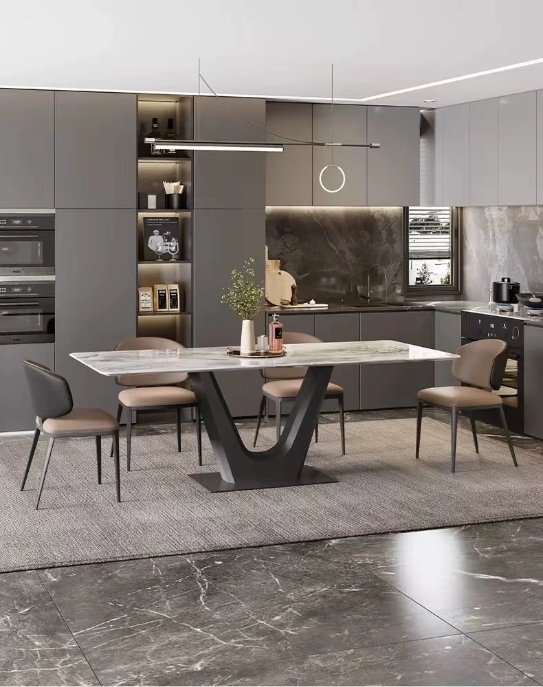 1.6m天然大理石ダイニングテーブル+ダイニングチェア*6 1.6m天然大理石ダイニングテーブル+ダイニングチェア*6