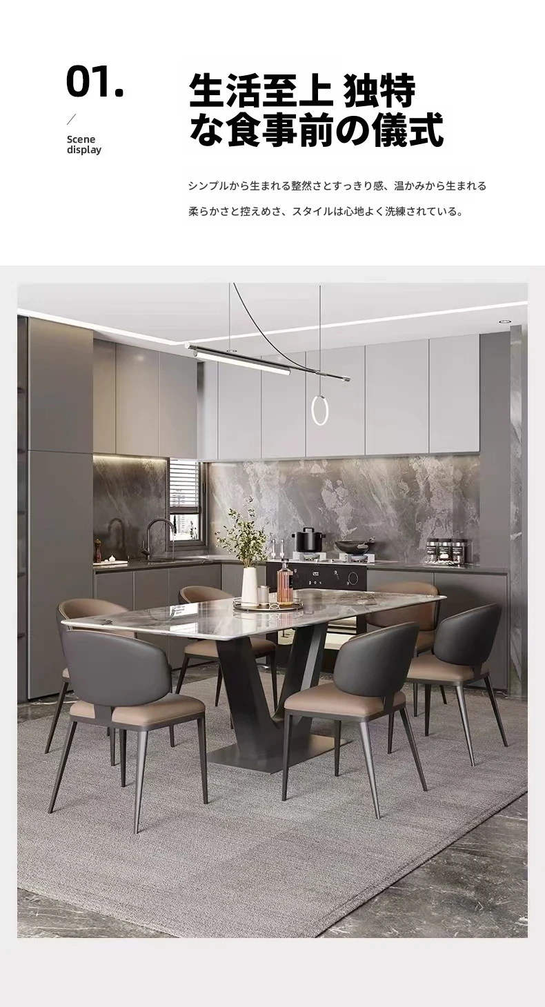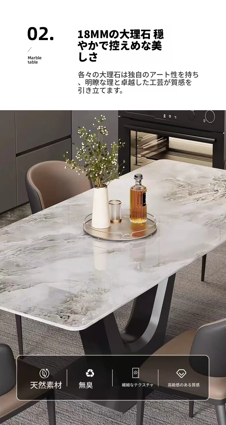 1.8m天然大理石ダイニングテーブル+ダイニングチェア*6 1.8m天然大理石ダイニングテーブル+ダイニングチェア*6